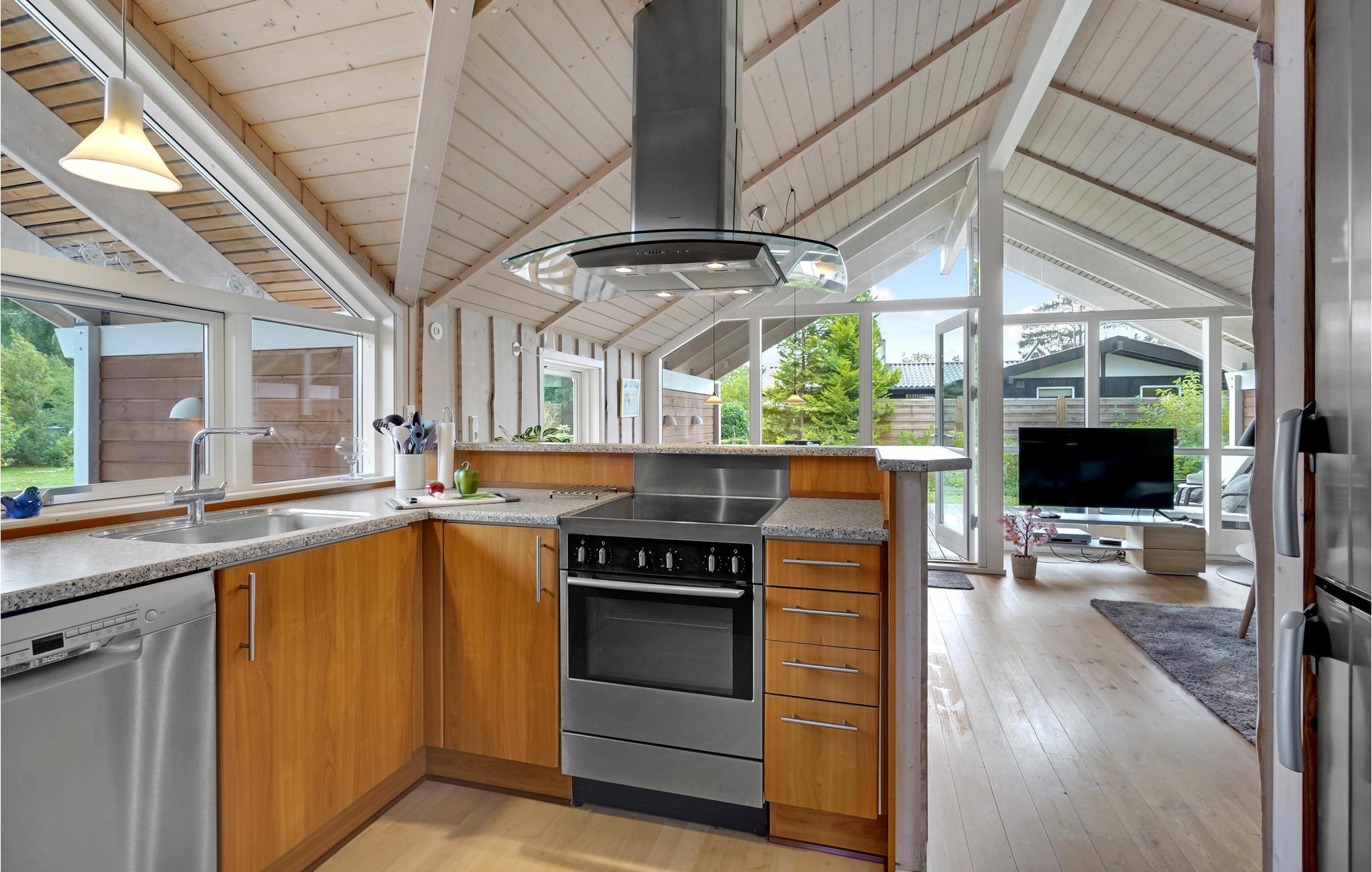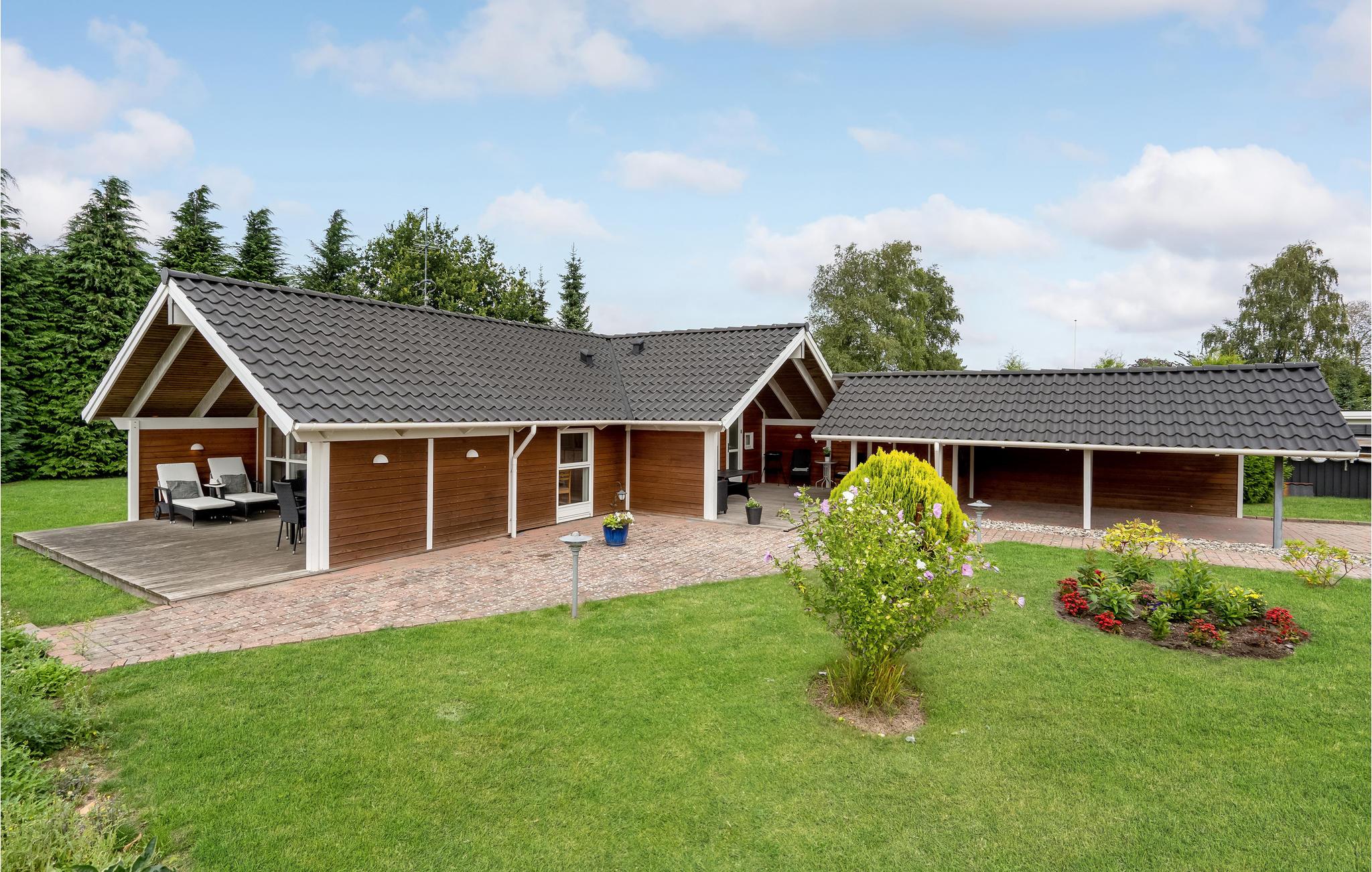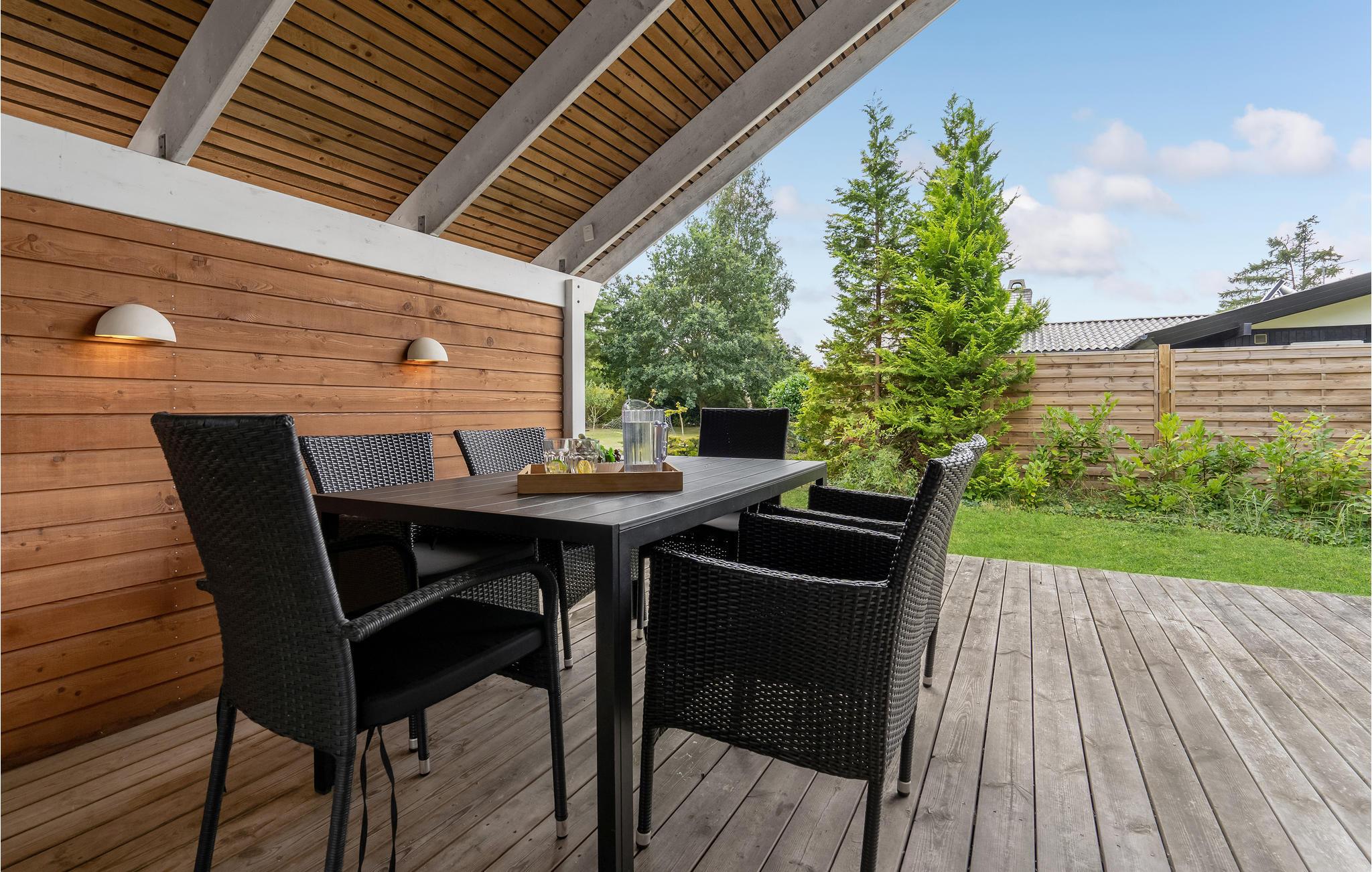 Dieses schöne Ferienhaus liegt auf einem schönen Grundstück nahe dem Zentrum Marielysts. Die Lage ist äußerst attraktiv, nah an der Stadt und dennoch in einem ruhigen Gebiet. Sowohl innen als auch außen ist das Haus geschmackvoll und von hoher Qualität. Die Möbel sind hell und geschmackvoll mit modernen, gediegenen Möbeln, die farblich auf das übrige Interieur abgestimmt sind. Vom Carport haben Sie direkten Zugang zur überdachten Terrasse mit Eingang zum Haus. Bei diesem Qualitätshaus wurde an alles gedacht.
