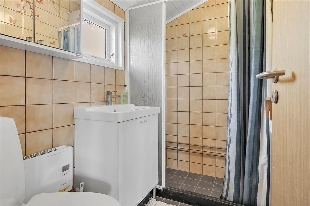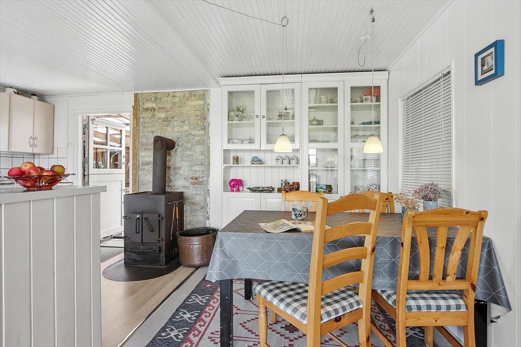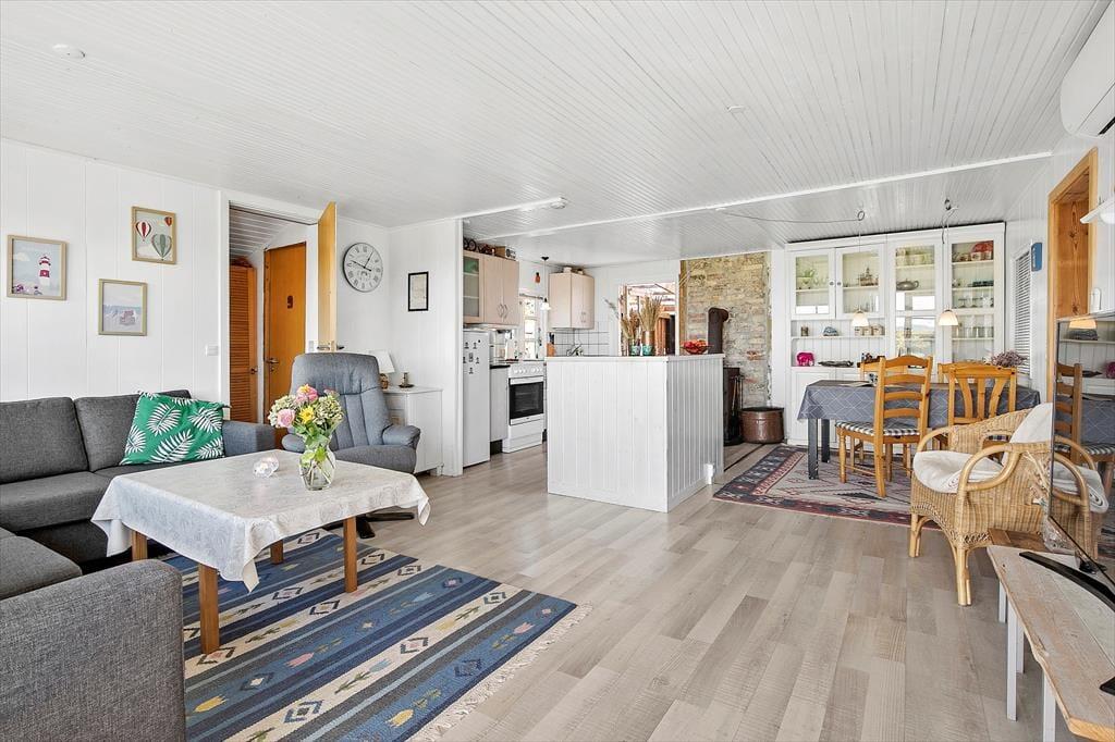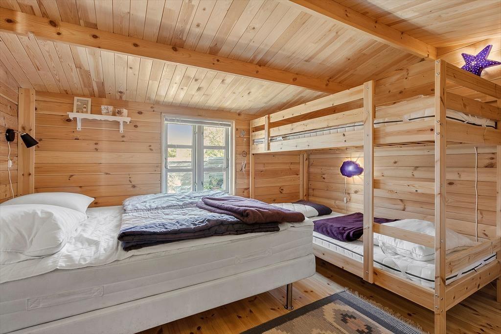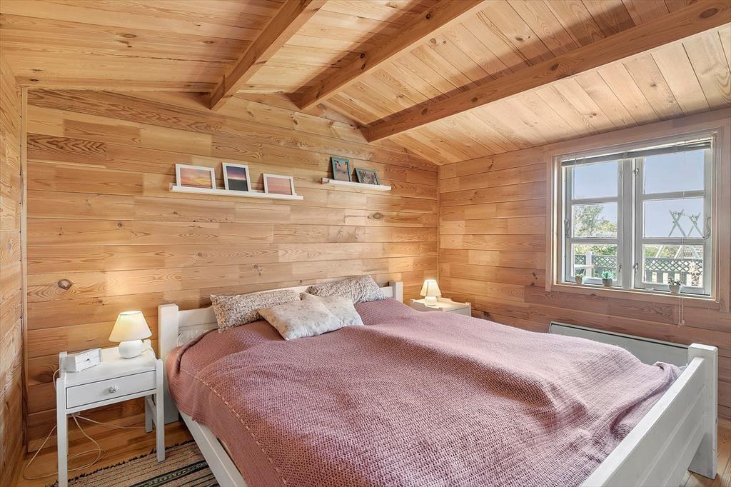 Das Ferienhaus empfängt Sie mit einem offen kombinierten Küchen- und Wohnbereich. Zur Küchenausstattung zählen ein Cerankochfeld, eine Mikrowelle und ein Kühlschrank. Vom hellen Wohnbereich genießen Sie einen herrlichen Ausblick über das Wasser. Im Wohnraum erwarten Sie ein Kamin, ein guter Essbereich, ein Sofa und Lehnstühle sowie der Fernseher mit Parabolempfang (deutsche Sender). Hinzu gesellt sich ein Badezimmer mit Duschnische. Die Schlafplätze verteilen sich auf insgesamt drei Schlafräume, von denen einer mit einem Doppelbett ausgestattet ist. Im zweiten Schlafraum treffen Sie auf ein doppeltes Schlafsofa und im dritten auf ein Dobbeltbett und ein Etagenbett. An kühleren Tagen oder Abenden sorgen eine Wärmepumpe, der Kamin und Elektroheizungen für angenehme Wärme.