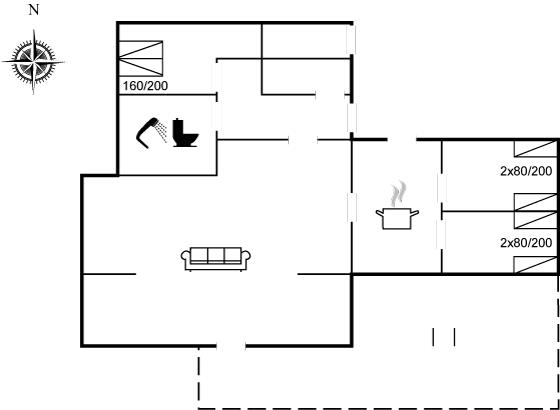 The holiday home is situated on a 981 m² garden site. Situated 100 m from the sea. Nearest shop is 5000 m away. A terrace belong to the holiday home. Furthermore the house has a covered terrace. Barbecue at your disposal. Carport is at your disposal. Parking place by the holiday home.