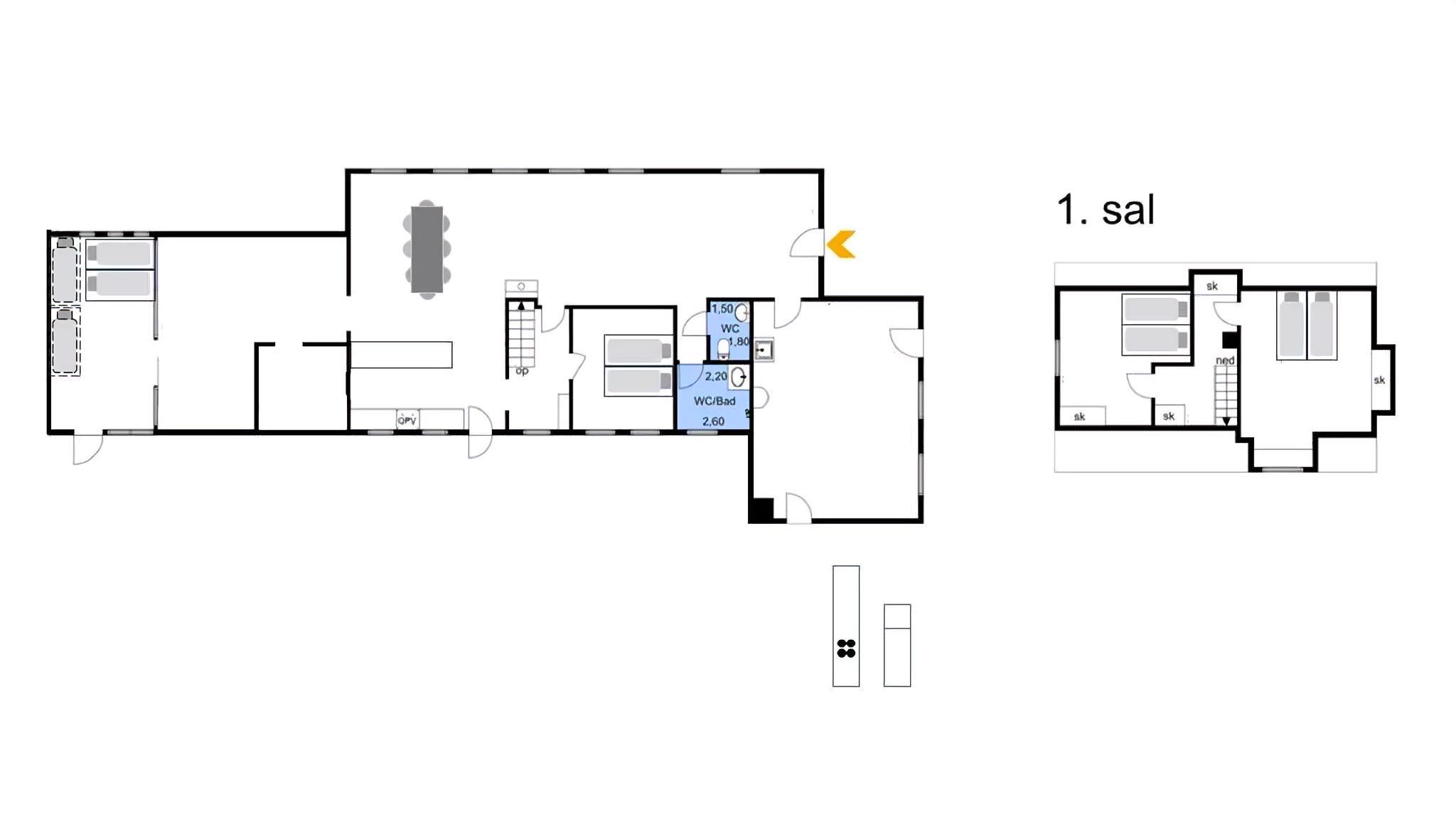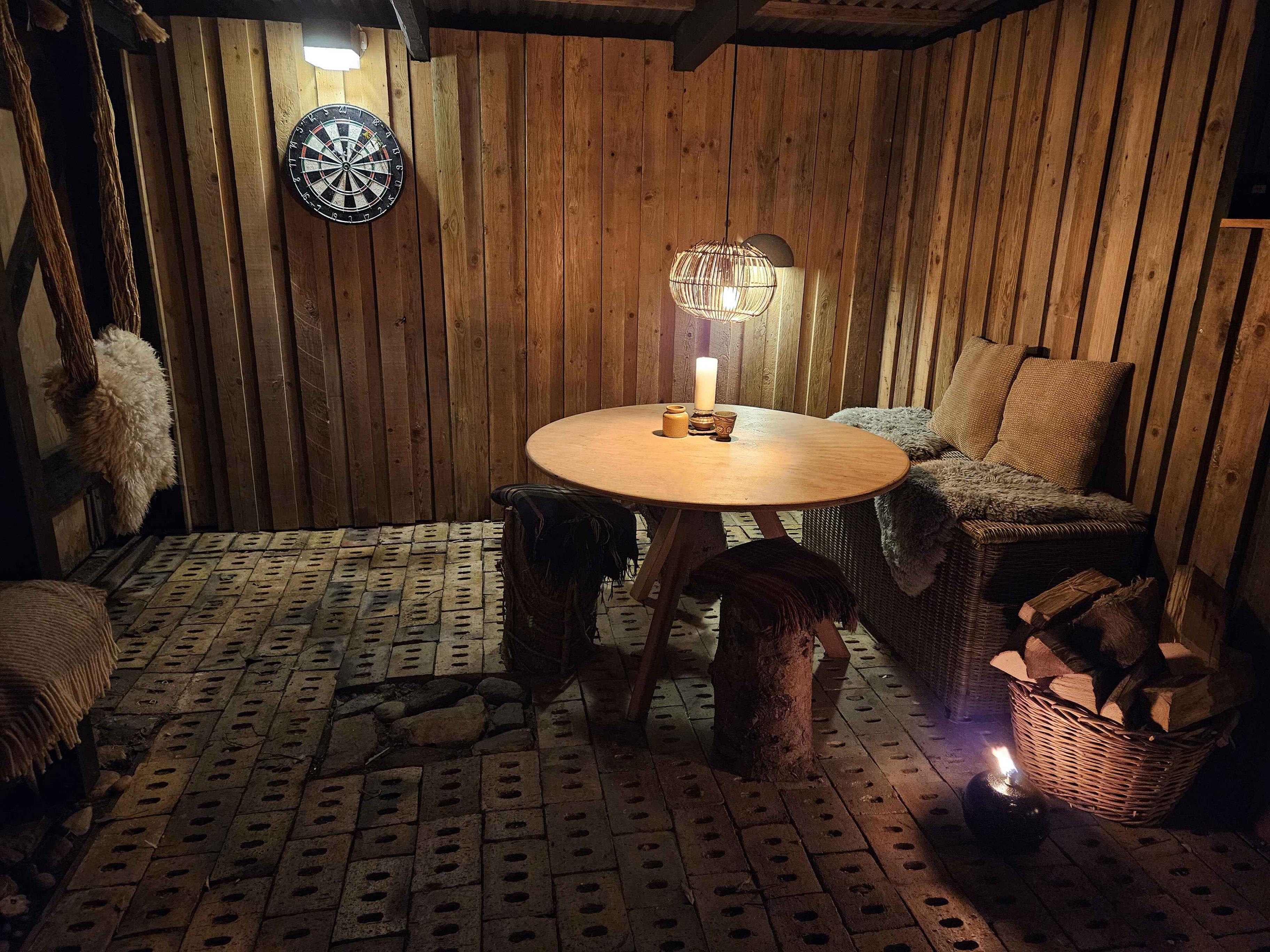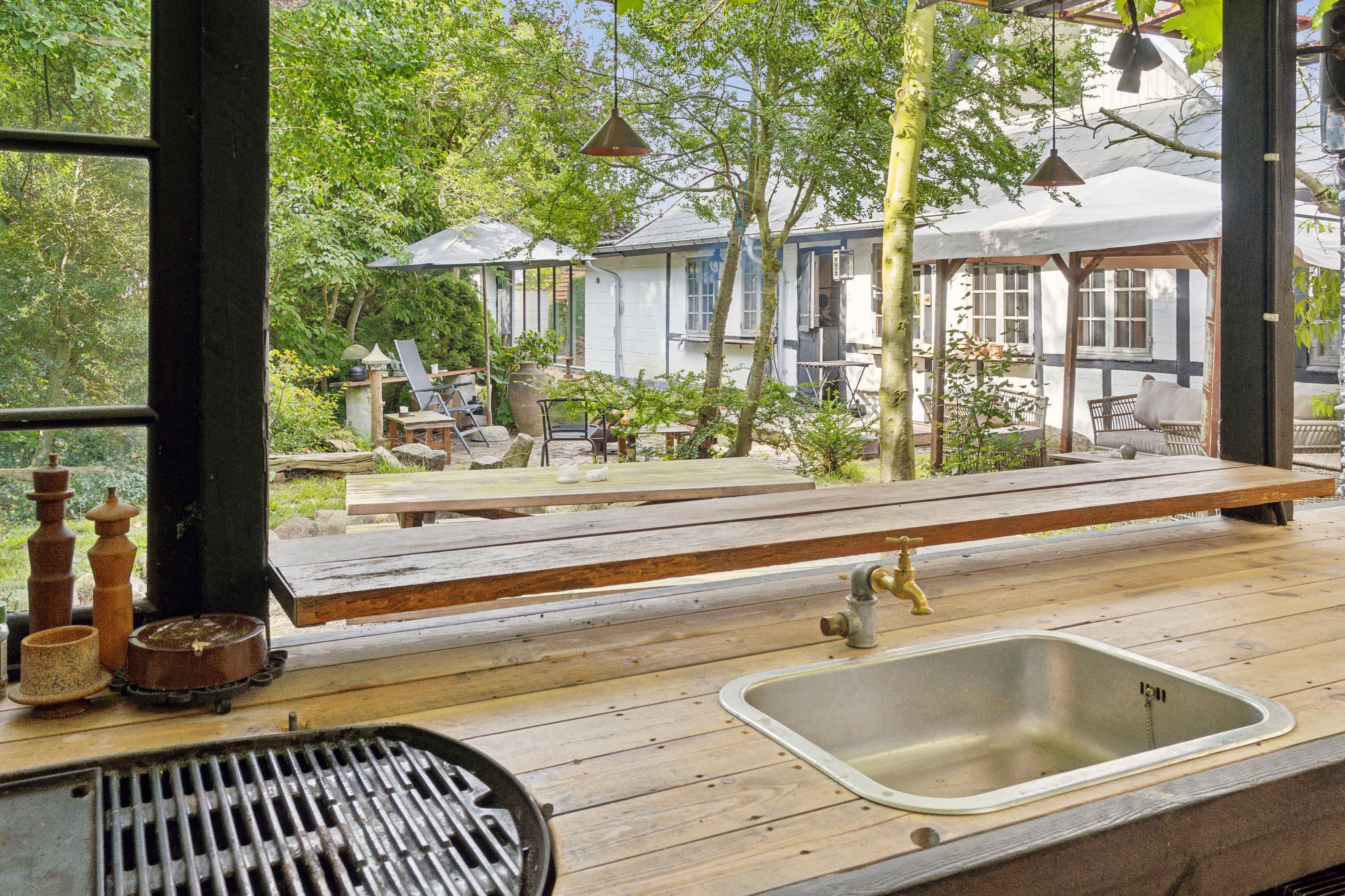 In the country house, you and your family can have fun as you please! There is plenty of space for fun activities, creative expression and lots of relaxation. Build a bonfire in the garden (firewood is available on site, and the garden is fenced in for pets) or let loose in the creativity room, which contains everything from various board games to playing cards and dice. There is also fitness equipment, karaoke facilities and painting/drawing supplies. You can also prepare your dinner in the outdoor kitchen on a warm summer evening or take a walk in the exciting garden. The country house in Nakskov is a perfect oasis for those looking for a peaceful and spacious holiday home. With its 200 m2, the house offers comfortable accommodation for up to 8 people, and 2 extra mattresses in the outer living room can also be used as sleeping places. The house is decorated with a warm and inviting atmosphere and the large windows fill the rooms with natural light. The bedrooms are spacious and comfortably furnished, each with its own unique style, and there is ample storage space. The large beds ensure a good night's sleep after a day full of activities and excursions. The kitchen inside is fully equipped with modern appliances and all the necessary kitchenware. The dining room is perfect for cozy dinners with family and friends, while the adjacent living room offers soft sofas and a place to relax and enjoy each other's company. Outside you will find the large, exciting garden where children can go on adventures in the gazebo in the 'forest', and adults can find an undisturbed place to enjoy a cup of coffee. There is also a lovely terrace, perfect for barbecue dinners. There are grills for grilling over a fire, and there is also a barbecue in the outdoor kitchen under cover. The location in Nakskov provides easy access to the area's scenic surroundings and attractions, please see https://www.visitlolland-falster.dk Whether you want to explore the local beaches, go hiking in the countryside or visit charming villages nearby, this holiday home is the ideal starting point for your holiday adventure.