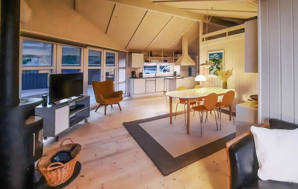 Näher am Meer könnten Sie kaum wohnen als in diesem geschmackvoll eingerichteten Ferienhaus in den Dünen von Napstjert. Machen Sie es sich auf der bequemen Sofagarnitur gemütlich und genießen Sie den herrlichen Blick auf die Naturlandschaft, die direkt an Ihr Grundstück grenzt. Freuen Sie sich auf entspannte Abende vor dem Kamin und lauschen Sie dem Wind, während Sie im angenehm beleuchteten Ambiente mit einem guten Buch und einer Tasse Tee die Seele baumeln lassen.