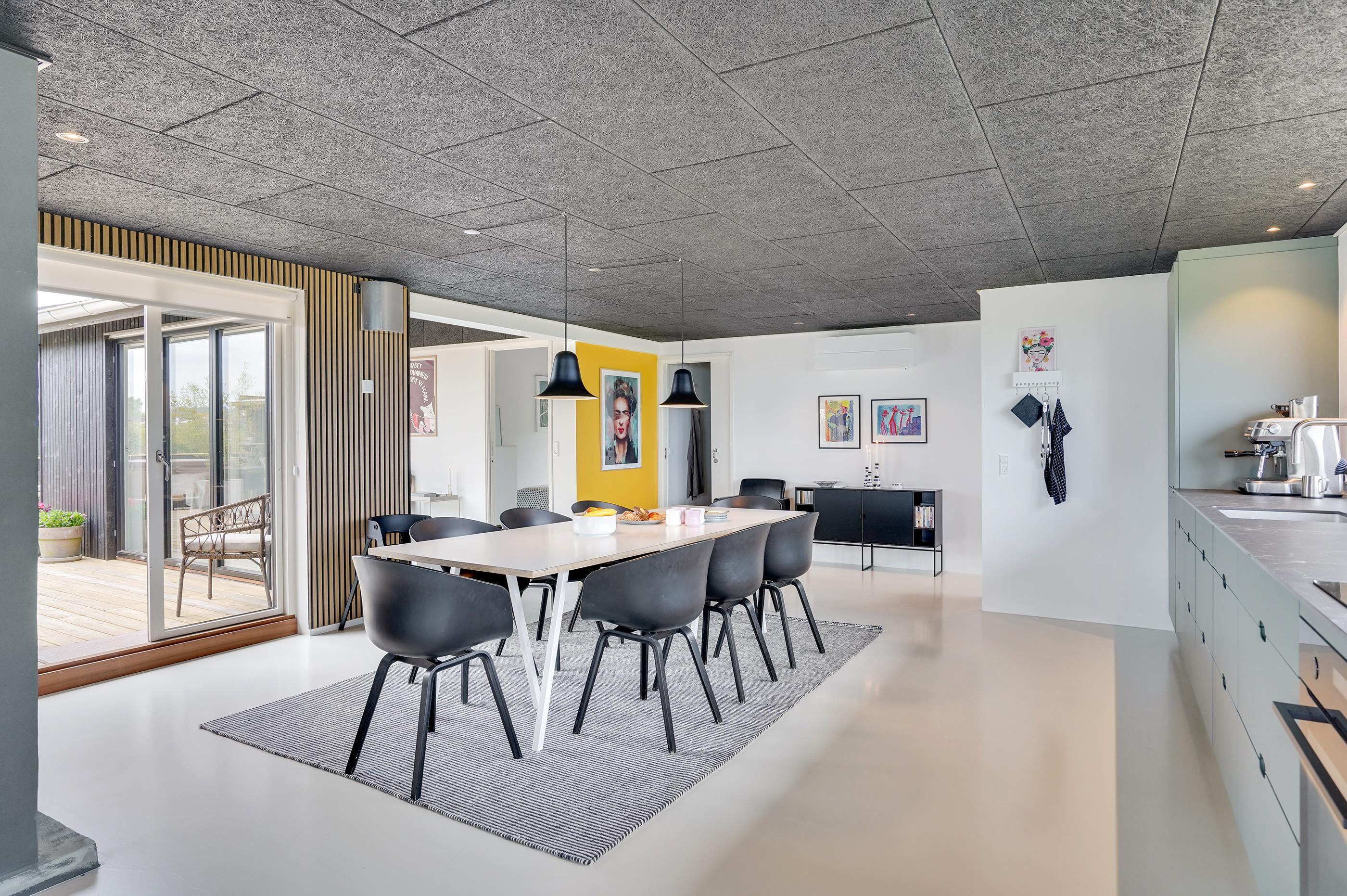 Holiday home suitable for 6 persons as well as 1 child up to 3 years. The holiday home is 145 m² and is build in 1966. In 2022 the holiday home was renovated. No pets allowed. The holiday home is equipped with energy-friendly air-to-air heat pump. There is floorheating in the living room. Floor heating in the hall. Floor heating in the kitchen-dining area. The holiday home has washing machine. Freezer capacity of 70 litres. Further more there is 1 wood-burning stove. For the youngest ones there is 1 high chair.