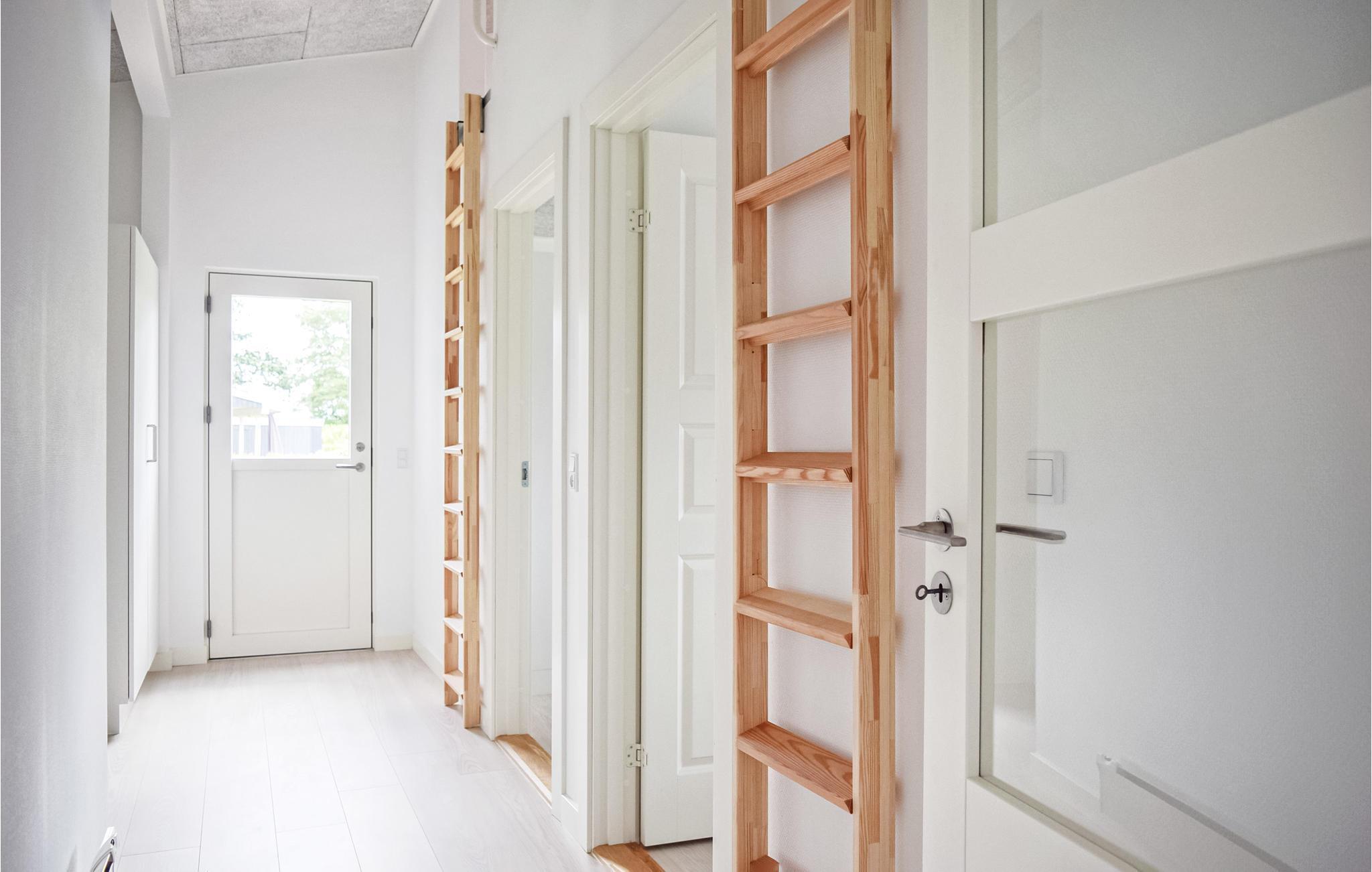 Architektonisch interessantes Ferienhaus in einer einladenden Freizeithaussiedlung. Durch die Dachkonstruktion besitzt das Wohnzimmer hohe Fenster und es ist auch zur Küche offen sowie zum Hängeboden. Der Hängeboden wird sicher manchen als bevorzugter Aufenthaltsort dienen. Auf ihm sind gute Matratzen, die auch für Erwachsene geeignet sind. Im großen Badezimmer liegen Whirlpool und Sauna. Beim Grillplatz vor der Tür liegen Fliesen. Gute Gartenmöbel auf der Terrasse werden die Grillabende im Freien verschönern. Entspannen Sie hier und genießen Sie Ihren Urlaub nicht weit vom Strand. Am Strand steht im Sommer ein Badesteg.