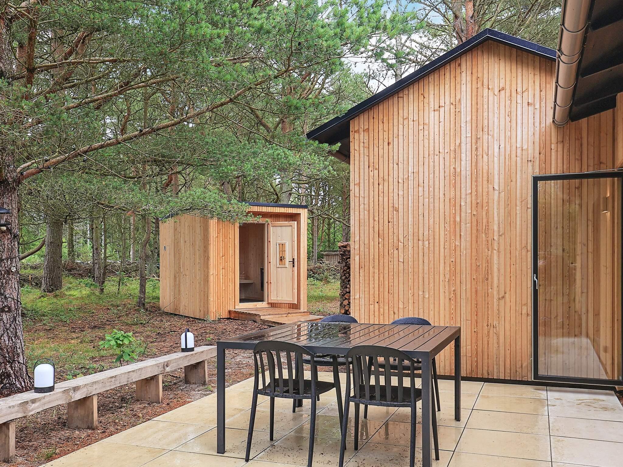 Das Ferienhaus liegt auf einem großen Naturgrundstück und bietet eine fantastische Terrasse. Hier können Sie Ihren Urlaub im Freien genießen und die Sommersonne mit Entspannung, Sonnenbaden, Grillgerichten und einem guten Glas Wein an warmen Abenden genießen. Das Haus verfügt über einen eigenen Bouleplatz und verschiedene Sommerspiele. Auf dem Grundstück gibt es einen Bereich, in dem Sie Ihren Urlaub in Hängematten genießen können.