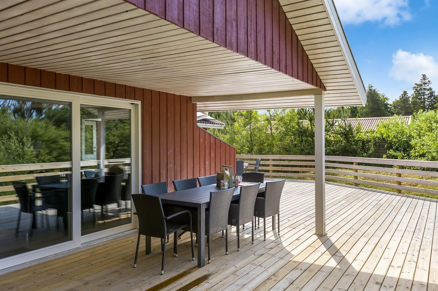 The holiday home is situated on a 2845 m² natural site. Situated 1000 m from the sea. Nearest shop is 2800 m away. You will find a golf course in a distance of 275 m. Furthermore the house has a 14 m² covered terrace. Hereof a total of 110 m² enclosed terrace. You find a tool shed. Parking place by the holiday home.