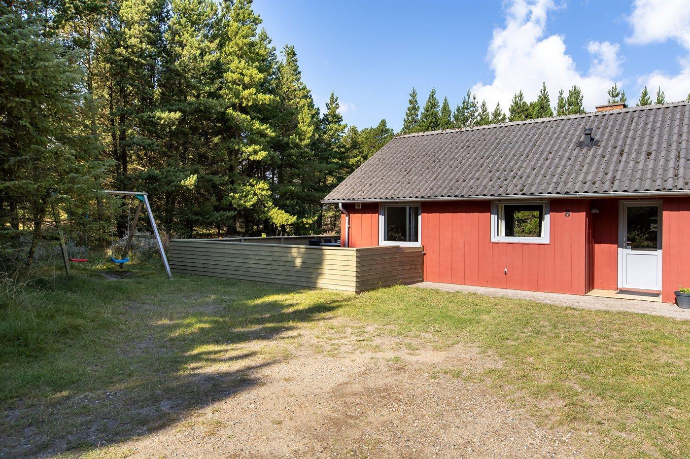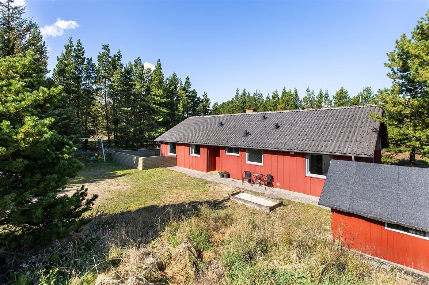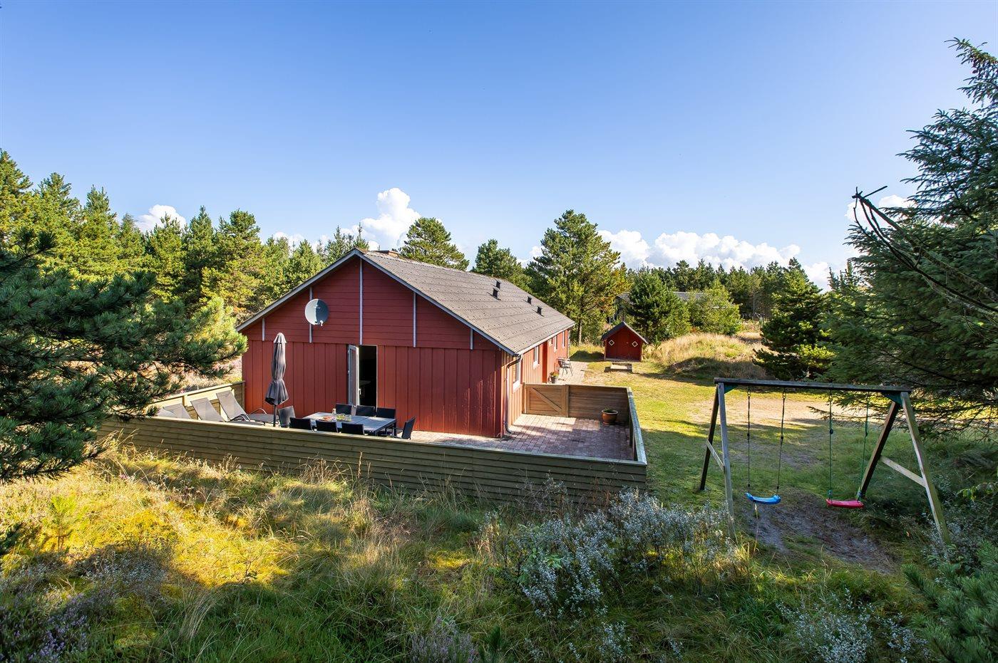 The holiday home is situated on a 2533 m² natural site. Situated 1400 m from the sea. Nearest shop is 1600 m away. You will find a golf course in a distance of 1000 m. A 36 m² terrace belong to the holiday home. Hereof a total of 36 m² enclosed terrace. You find a tool shed. Swing. Sandbox. Plug for charging electric car is available.