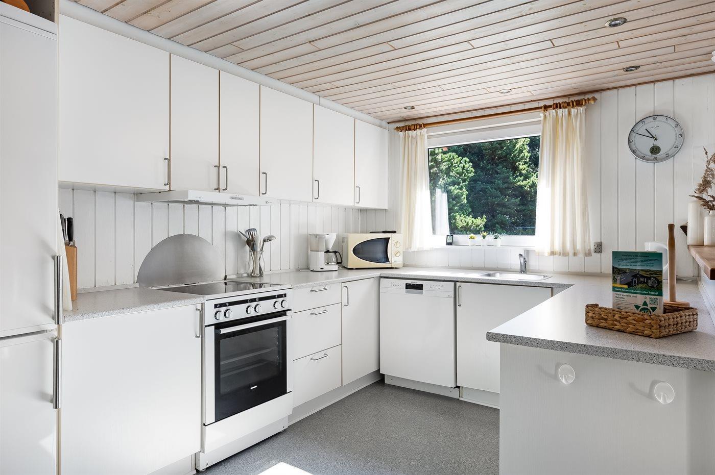 The kitchen is equipped with 1 refrigerator. There are 4 ceramic cooking plates, baking oven, microwave oven and dishwasher.