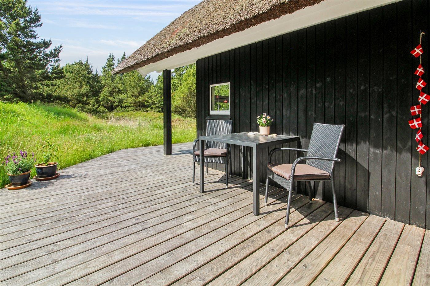 The holiday home is situated on a 2600 m² natural site. Situated 1100 m from the sea. Situated 2300 m from the Wadden Sea. Nearest shop is 2100 m away. You will find a golf course in a distance of 1800 m. A 35 m² terrace belong to the holiday home. Furthermore the house has a 10 m² covered terrace. Swing. Sandbox. Parking place by the holiday home.