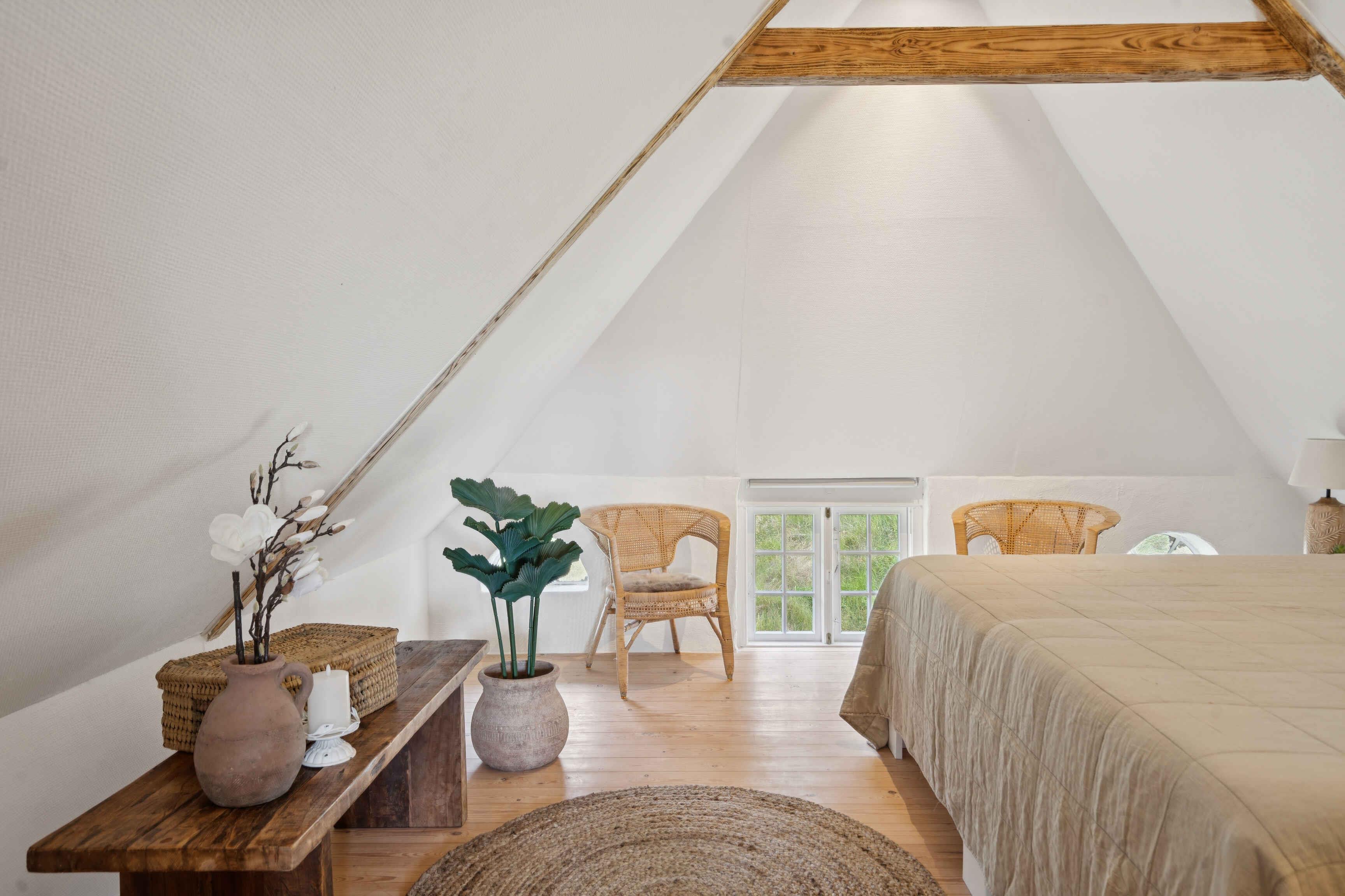 Rent a genuine, old Rømø house with thatched roof, beautifully situated on a scenic natural plot. The house features a small entrance hall with access to a compact bathroom with shower and toilet, as well as a small bunk room with two beds. From the entrance, there is access to the kitchen and living room. Enjoy panoramic views of the Wadden Sea and the Rømø causeway. On clear mornings, the sunrise over the Wadden Sea is a daily delight. The kitchen is equipped with a dishwasher, induction stove, fridge with freezer, air fryer, convection oven, and extractor hood. The living room is furnished with comfortable cigar-brown leather sofas, a coffee table, and cozy wooden armchairs with sheepskin. The dining table is a beautiful antique long table with matching bench and chairs, seating six in total. The house is heated with a heat pump on the ground floor and electric radiators in the bunk room, bathroom, and upstairs bedroom. Upstairs is a landing with two single beds and a gable window offering sea views. From the landing, you enter a bedroom with a double bed. Outside, enjoy garden furniture on the grassy natural plot. The adjoining field is ideal for ball games, kite flying, and other outdoor activities. The house, newly renovated but originally built in 1702, was once a sailor’s home. On Rømø, social status in the 1700s was indicated by the number of chimneys: one for sailors, two for mates, and three for captains. This house belongs to the neighboring captain’s farm, now known as Hattesgaard, which today hosts a charming antique café serving coffee, tea, hot chocolate, and 35–45 varieties of luxury cakes five days a week. The house, named “Mines Minde,” was named after a maid who worked at Hattesgaard for 25 years. In 1910, she bought this property—then under German rule—and worked around the island daily for 50 pfennig until her death in 1940. Today, the house is a true little Wadden Sea gem, set on a natural plot surrounded by grass, forest, and fields. It offers a stunning wide sea view and beautiful natural light through the many windows. From Tuesday to Saturday, Café Hattesgaard is open from 11:00 AM to 5:00 PM. During these hours, the area around Hattesgaard is lively, and guests should expect increased activity from visitors and vehicles in the parking area and on the nearby field. The café is closed on Sundays and Mondays. Guests renting the house are in the front row for the best coffee and cakes in Southern Jutland. To the west lies a protected, untouched nature area owned by the Hattesgaard estate. In summer, Galloway cattle roam freely. These animals help maintain the area and are an important part of its ecological care. They are calm and harmless. Visitors are welcome to explore the area, which includes bunkers and trenches. Wildlife is abundant, including deer and birds of prey. However, on hunting days (which are clearly signposted), visitors should not enter the area. Lakolk Beach is about 4 km away. It is Northern Europe's largest public beach, and you can drive your car directly onto the sand. In addition to the nature surrounding the house, Rømø offers varied landscapes, beaches, restaurants, cafés, and good shopping opportunities. The ceiling height in the house is 1.87 meters, lower under the wooden beams, and 2 meters in the conservatory. Note: Not for commercial rental.