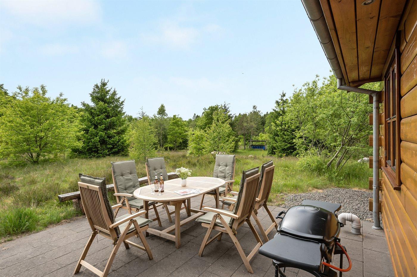 The holiday home is situated on a 1500 m² natural site. Situated 4500 m from lake. Nearest shop is 4500 m away. A 40 m² terrace belong to the holiday home. Shelter. Barbecue at your disposal. Parking place by the holiday home.