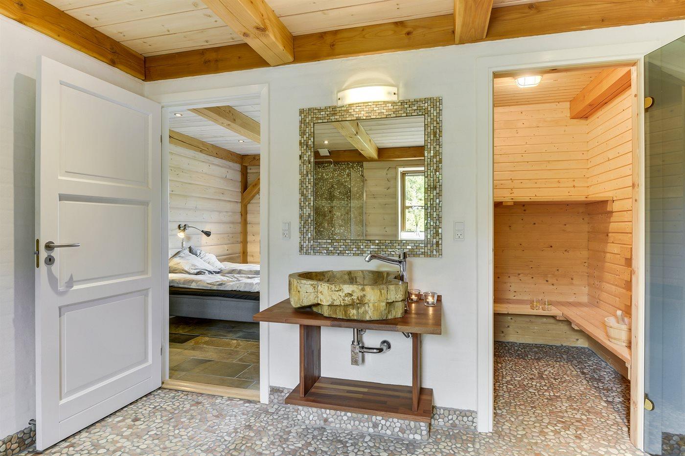 There is a small lake on the site - therefore small children should be kept under supervision. About 100 m from the holiday home there is an machine house, where the owner comes by daily. For the sake of the wildlife in the area, dogs must be kept on a leash - both in the forest and on the property of the house. Youth groups (15-25 years of age) not allowed. Smoking is prohibited. By violation of this prohibition a fee of min. EUR 420 will be charged.