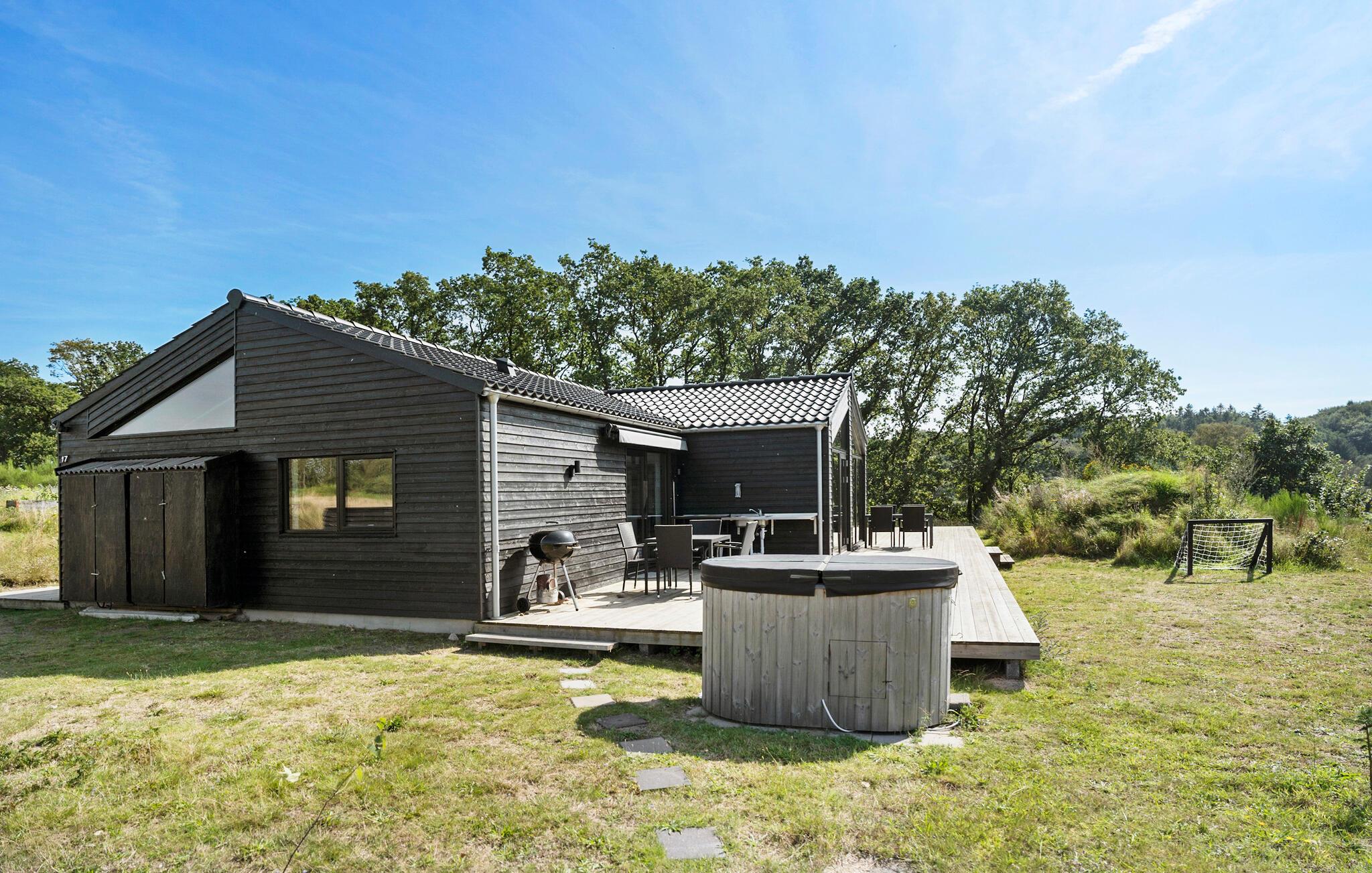 Das Haus liegt auf einem hoch gelegenen Naturgrundstück mit Blick auf wunderschöne See- und Waldlandschaft. Draußen erwarten Sie auch zwei große Außenterrassen mit u. a. Outdoor-Küche, Grill und Wildnisbad.