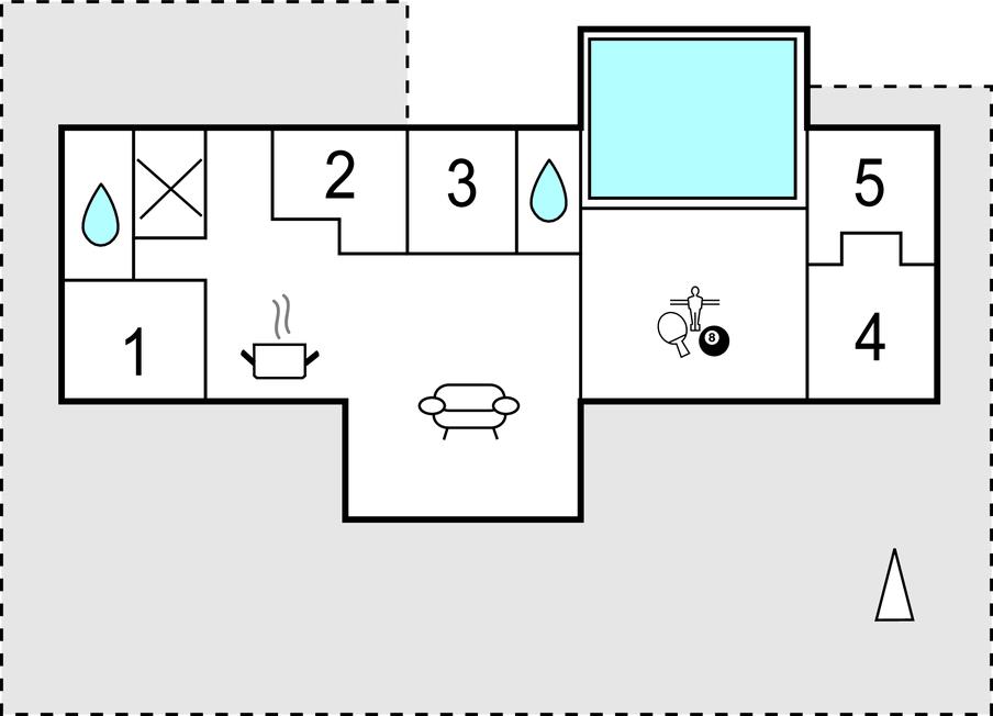 Ihnen stehen hier 5 Schlafzimmer mit Betten für 13 Personen und ein Loft mit der Möglichkeit für zusätzliche Schlafenplätze zur Verfügung. Außerdem zwei Badezimmer. Für Unterhaltung ist mit einem Aktivitätsraum mit Tischtennis und Airhockey gesorgt. Nicht zu vergessen ist das Highlight des Hauses, der private Innenpool.