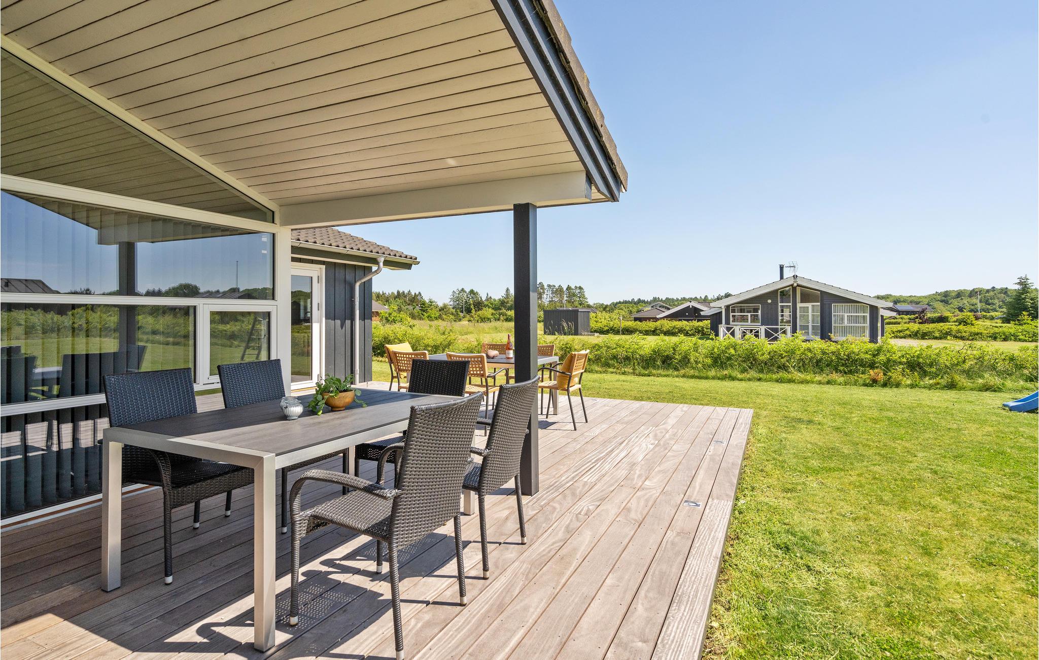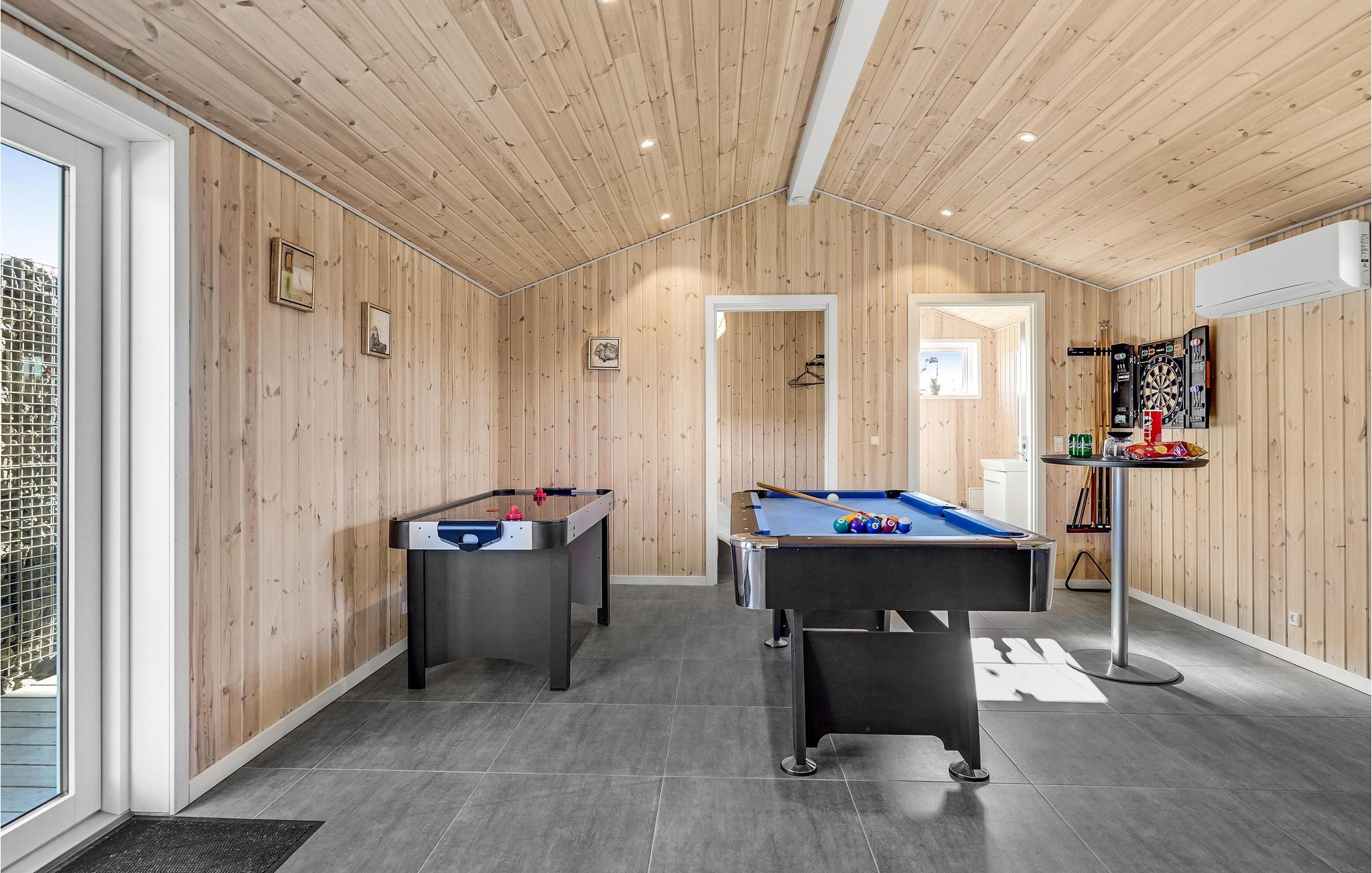 Wenn Sie sich ein sehr bequemes Anglerdomizil wünschen, haben Sie es mit diesem Haus gefunden. Im Inneren erwartet Sie skandinavisches Design mit klaren Linien und viel Behaglichkeit. Das Haus bietet 5 Schlafzimmer, 4 befinden sich im Ferienhaus und 1 im Anbau, wo es auch einen großen Aktivitätsraum mit Billard, einer Arcade-Maschine mit vielen tollen Videospielen und einem zusätzlichem Fernseher sowie ein WC mit Waschbecken gibt. Auch zum Entspannen eignet sich das Haus sehr gut. In einem Bad liegt die Sauna. Im Freien gibt es eine hölzerne Badetonne und eine Außendusche. Zu fischreichen Angelplätzen haben Sie nur ein paar Schritte und Ihren Fang können Sie bequem am Filetierplatz im Freien reinigen, außerdem gibt es einen Ofen zm Räuchern der Fische. Das Haus liegt in der Nähe von interessanten Freizeitangeboten, wie z. B. Legoland. Herning ist auch eine beliebte Messenstadt. Im See Rørbæk Sø können Sie in einem Teil angeln, dort können Sie dann auch die Angellizenz erwerben. Der Gebrauch eines Ruderbootes ist auf Perioden begrenzt.
