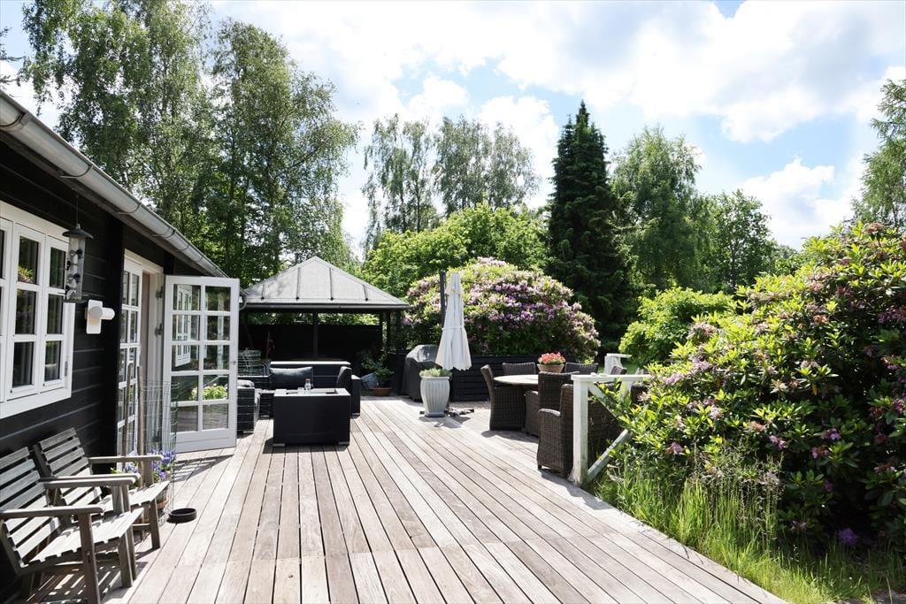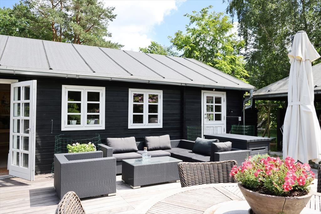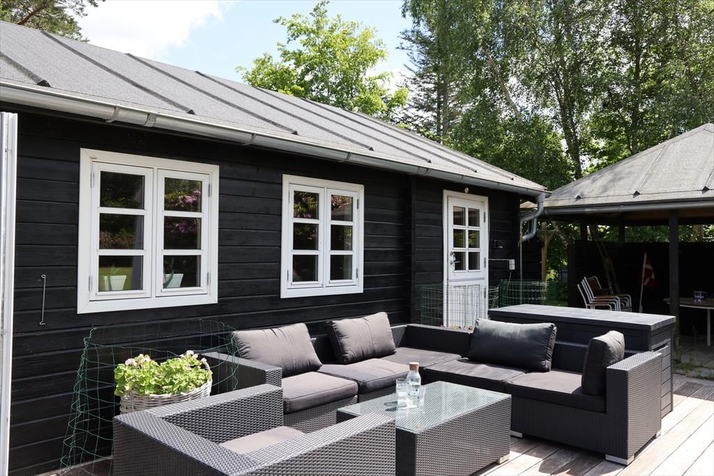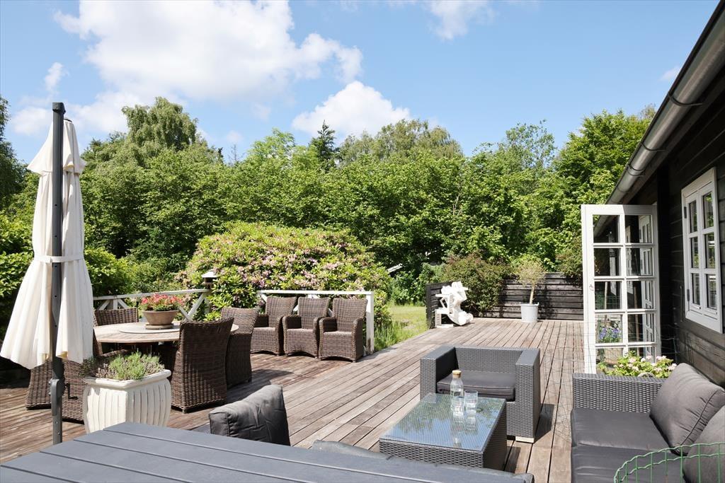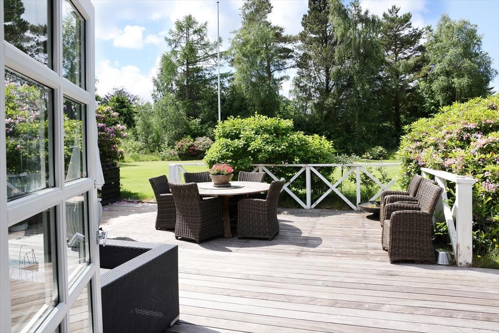 Wenn du mit deiner Familie gern viel Zeit im Freien verbringst, dann darfst du dich bei diesem stimmungsvollen Ferienhaus auf viele Möglichkeiten freuen. Zwei Terrassen schmiegen sich an das Haus. Während du auf der Ostterrasse mit Morgensonne verwöhnt wirst, kannst du es dir auf der Terrasse an der Westseite nachmittags in der Sonne gemütlich machen. Die teilweise Überdachung der Westterrasse spendet bei Bedarf kühlen Schatten und eignet sich hervorragend als stimmungsvoller Rückzugsort für die späten Abendstunden. Dank der Größe der Terrassenareale kannst du es dir mit allen Mitreisenden rund um den Gartentisch gemütlich machen, ausgedehnte Sonnenbäder auf den Gartenliegen genießen oder auch etwas abseits in Ruhe ein spannendes Buch lesen. Gesellige Abendstunden verlebt ihr gemeinsam an der Feuerstelle, an der ihr beispielsweise Stockbrote und Marshmallows rösten könnt. Das große Grundstück bietet sehr schöne Möglichkeiten, mit der gesamten Familie aktiv zu werden und verschiedenste Gartenspiele zu spielen. Für ein wenig Abwechslung vom Leben am Haus sorgen schöne Ausflüge mit einem prall gefüllten Picknickkorb. Ringsum erwarten euch viele schöne Stellen zum Picknicken, die ihr zu Fuß, per Fahrrad oder auch per Pkw erreicht.