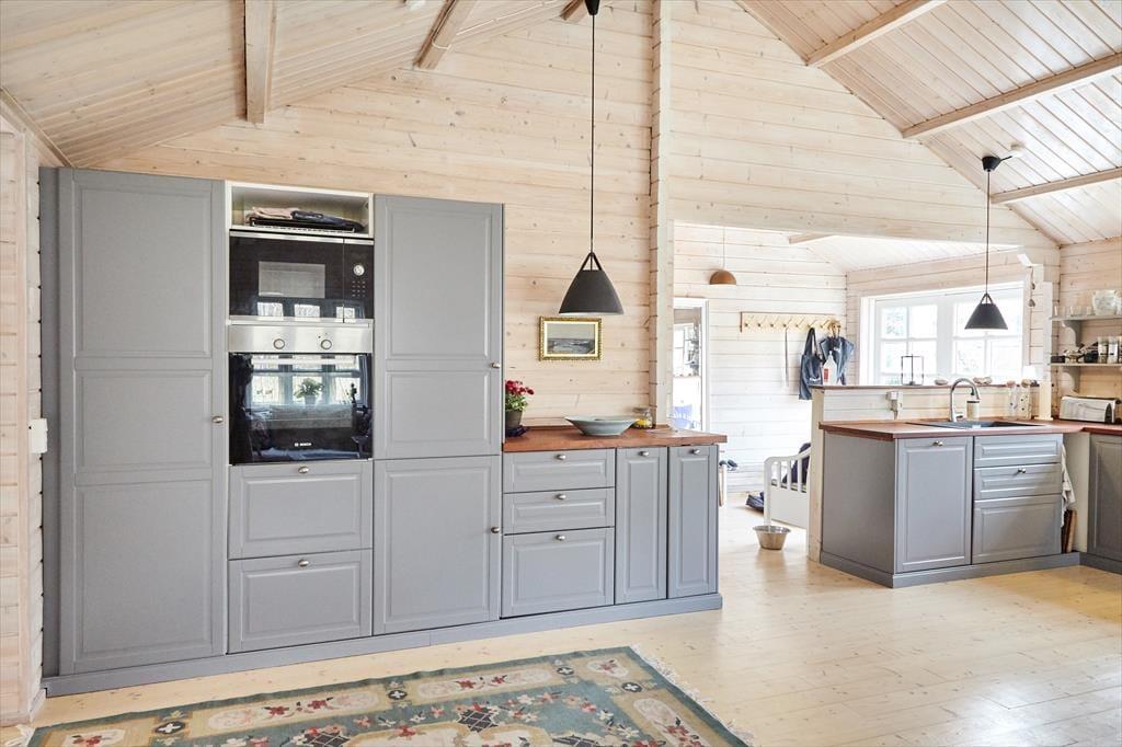 Wenn du einen nordisch geprägten Einrichtungsstil mit echtem, überaus gemütlichen Ferienhauscharme liebst, der durch moderne Elemente wunderbar abgerundet wird, dann hast du soeben dein Traumferienhaus gefunden. Die hohen Decken verleihen den Räumen ein helles, angenehm luftiges Ambiente. Aufgrund der wohldurchdachten Raumaufteilung beherbergt das Mietobjekt problemlos zwei befreundete Familien. In der modernen, schönen Küche wird die Zubereitung der Mahlzeiten zum puren Vergnügen. Während du in der Küche tätig bist, genießt du dennoch zu jeder Zeit die Nähe und Gesellschaft deiner Lieben, die es sich im Wohnraum gemütlich gemacht haben. An kühlen Tagen sorgt der knisternde Kaminofen für ein Maximum an Gemütlichkeit und Atmosphäre. Stell dir nur vor, wie du an einem windigen Herbsttag nach einem Strandspaziergang in dein Ferienhaus zurückkehrst und es dir im Kreise deiner Lieben mit einem warmen Becher Kakao vor dem Kaminofen gemütlich machst!