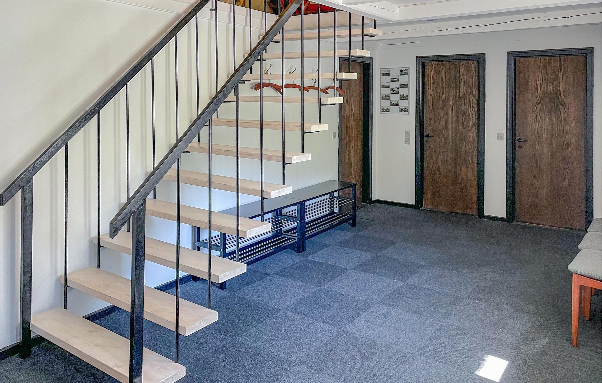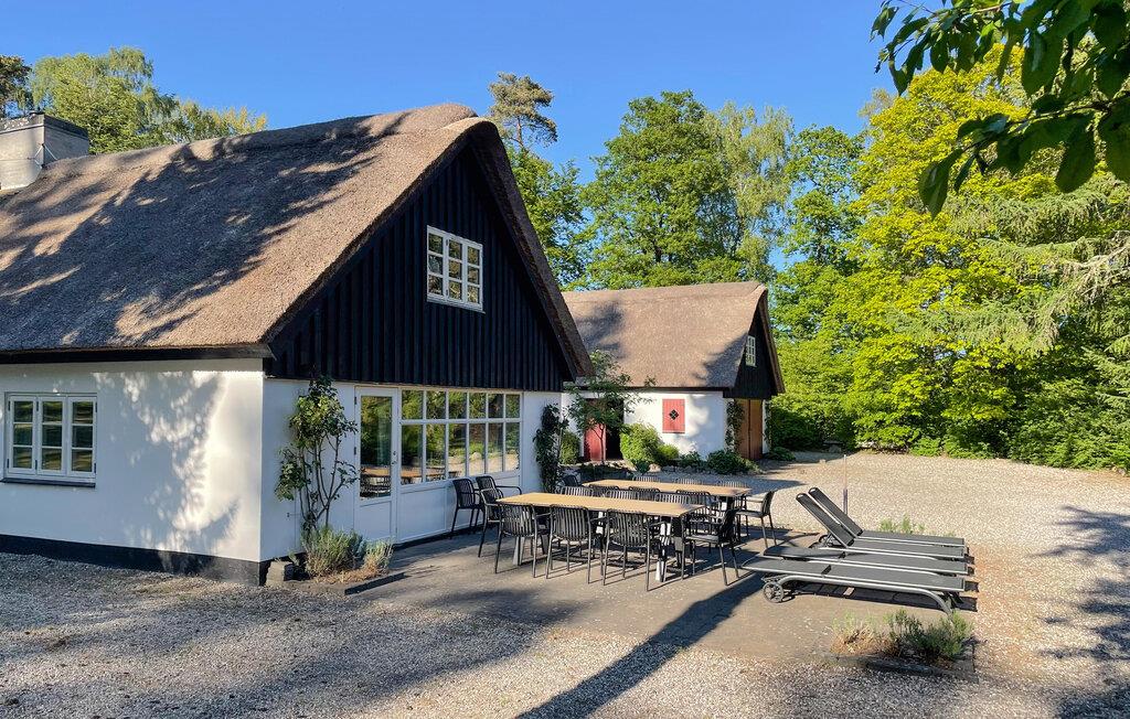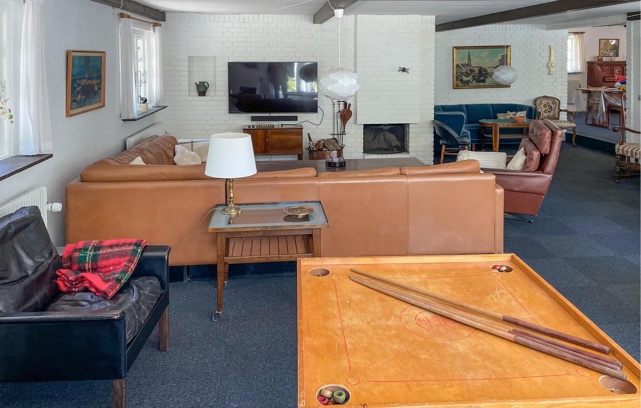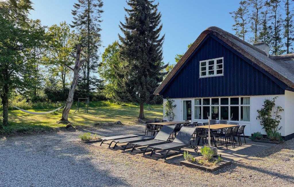 Dieses dreiflügelige Landhaus begrüßt Sie inmitten der landschaftlichen Idylle von Djursland und bietet reichlich Platz, um mit einer Gruppe oder der Großfamilie eine entspannte Auszeit zu genießen. Schwingen Sie in der farbenfrohen Küche den Kochlöffel und zelebrieren Sie gesellige Mahlzeiten an der langen Esstafel. Spielen Sie Tischtennis im Aktivitätsraum, lauschen Sie dem Knistern des Kaminfeuers bei einem Brettspiel im gemütlichen Wohnzimmer oder streamen Sie Ihre Lieblingsserie.