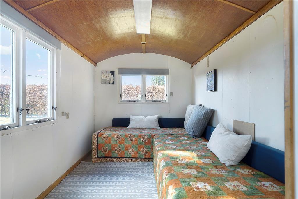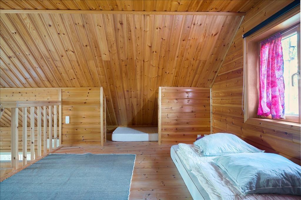 Über eine gute, solide Treppe gelangen Sie in den 1. Stock, wo Sie auf einen Schlafboden mit zwei losen Matratzen für zwei Personen treffen. Der ansprechende Zirkuswagen, der auf dem Grundstück platziert ist, bietet Ihnen zwei weitere Schlafplätze. Beachten Sie aber bitte, dass dieses Haus dennoch NUR an maximal 4 Personen vermietet wird.