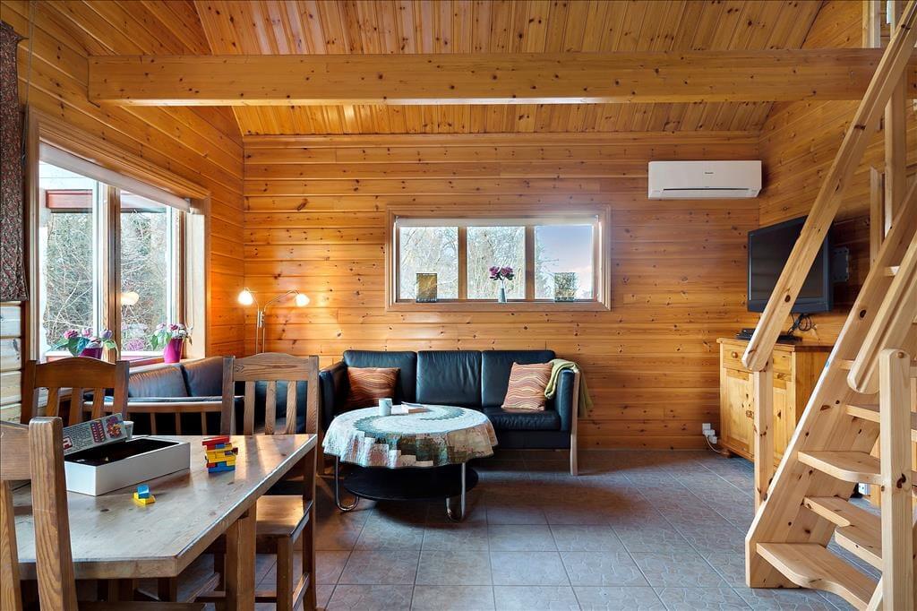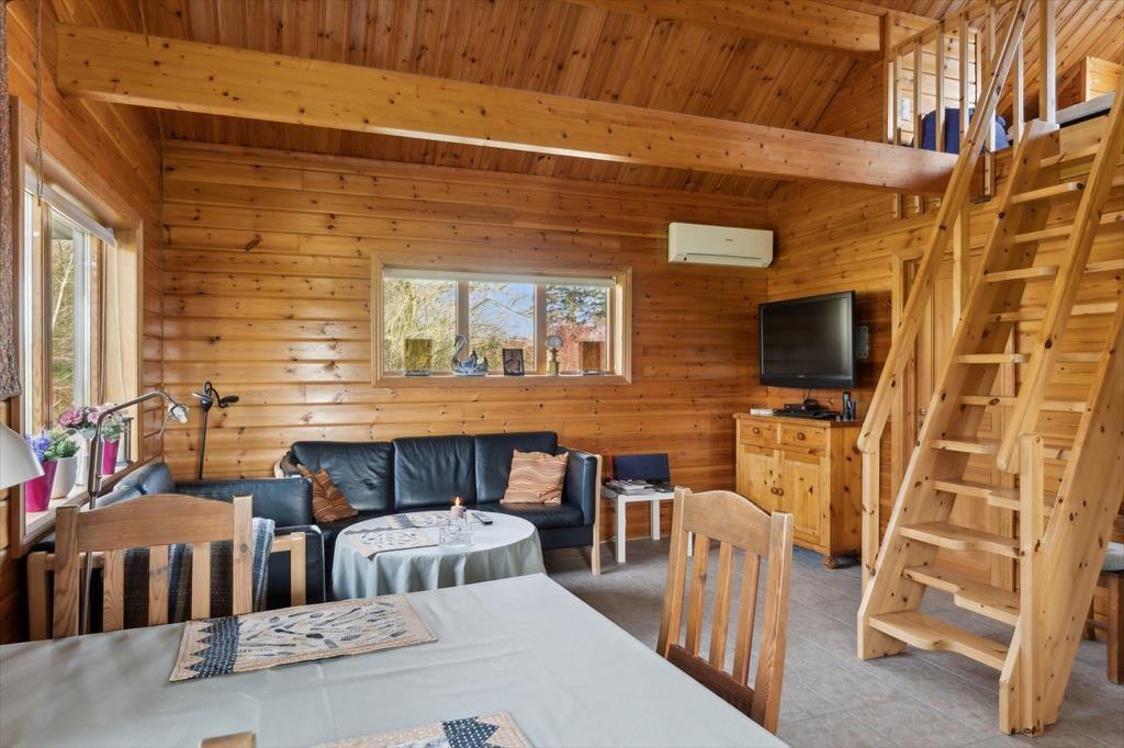 Hinzu gesellt sich der Wohnraum, der einen Essplatz und eine Sofaecke samt Fernseher beinhaltet. Für angenehme Raumtemperaturen sorgt eine Wärmepumpe mit zusätzlicher Kühlfunktion.