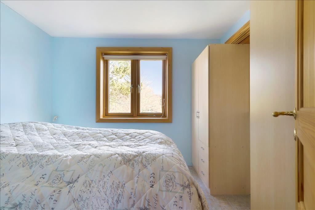 Im Erdgeschoss befindet sich ein Schlafzimmer mit einem Doppelbett und einem Schrank.
