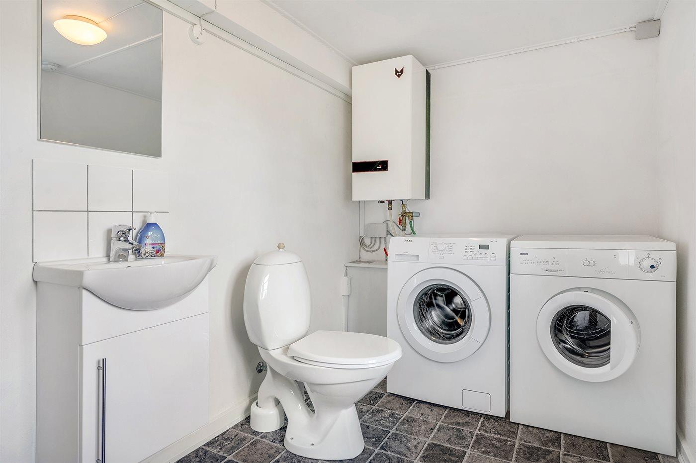 There is 1 bathroom with shower cabinet and 2 toilets, hereof 1 guest bathroom. There is floor heating in 1 bathroom.