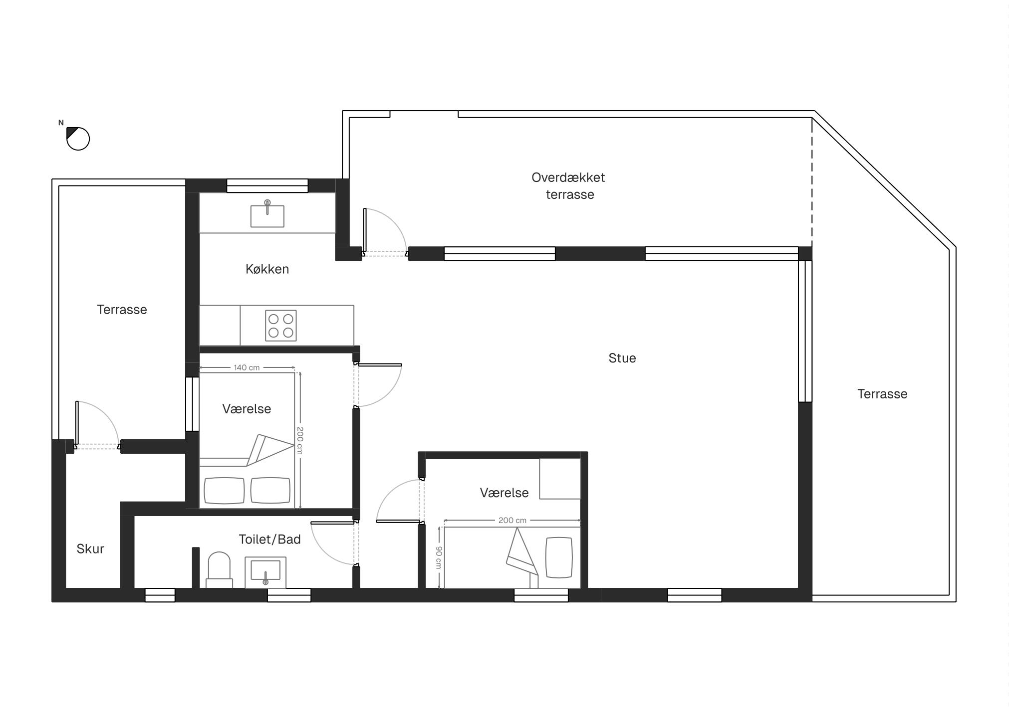 A well-functioning house of 53 m², where the space is optimally utilized. There is also a 25 m² covered terrace in front of the house, where you can enjoy cozy days and evenings by the small fireplace or grill.