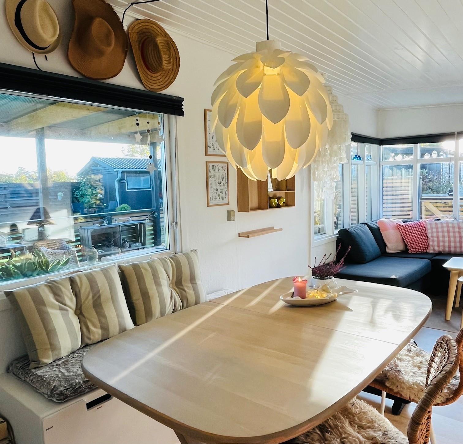 The house is centrally located in the charming coastal town of Sæby, which is well worth exploring. It's a picturesque market town offering good shopping opportunities and local attractions. In summer, the harbour is full of sailboats, and you can buy ice cream and fresh fish. The maritime atmosphere, with its cafés and small shops, is full of life.