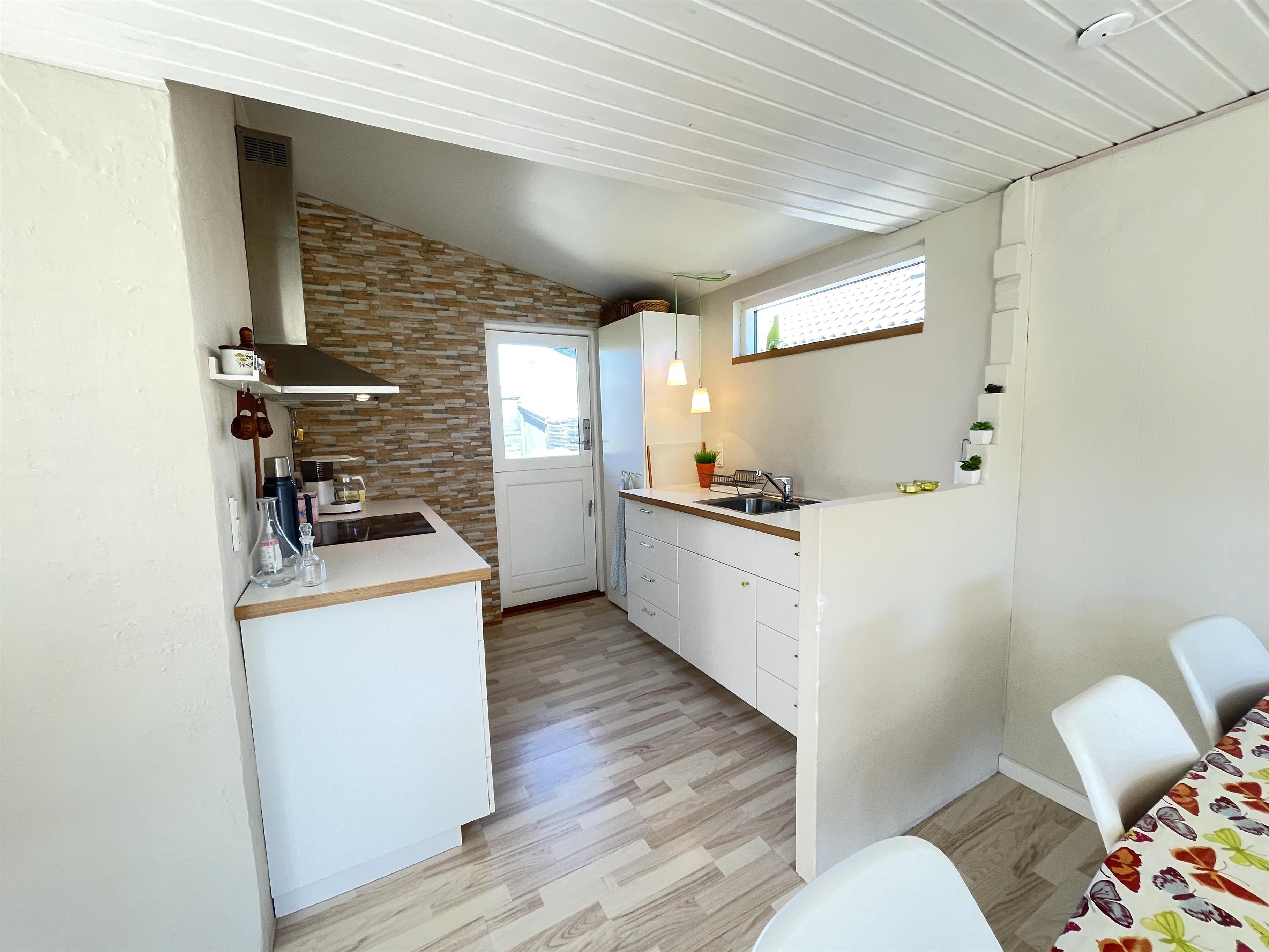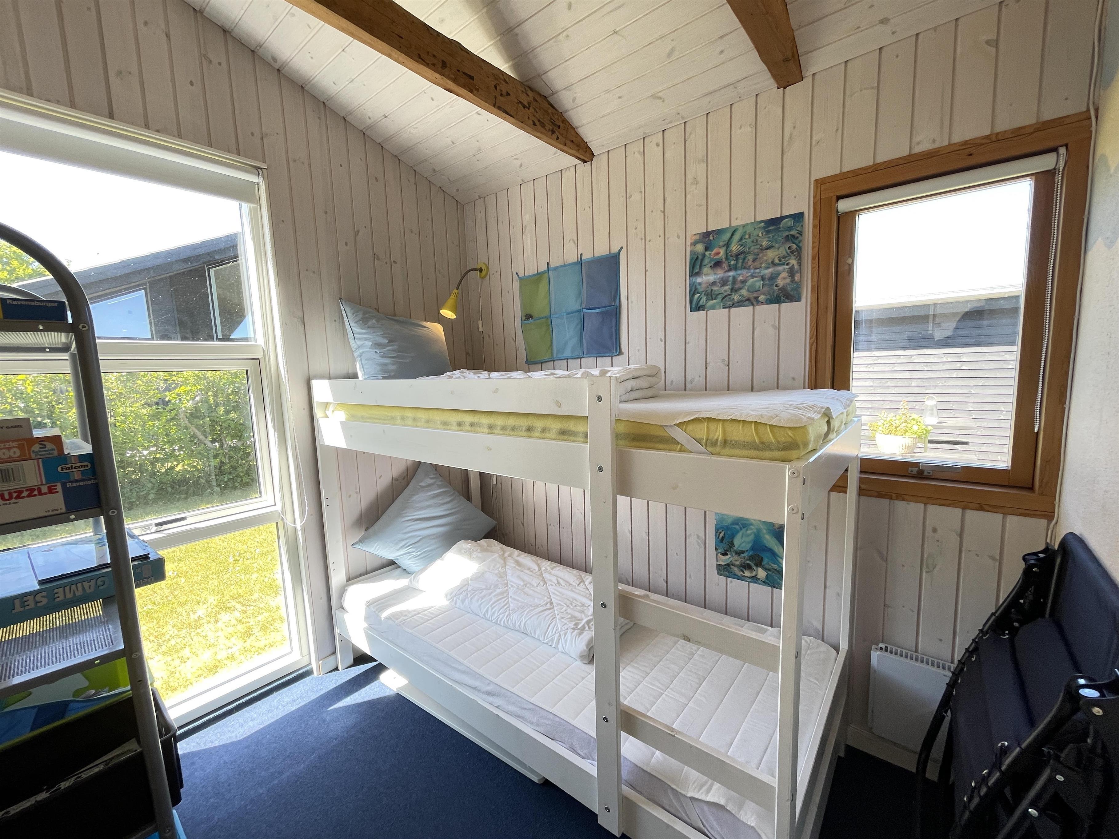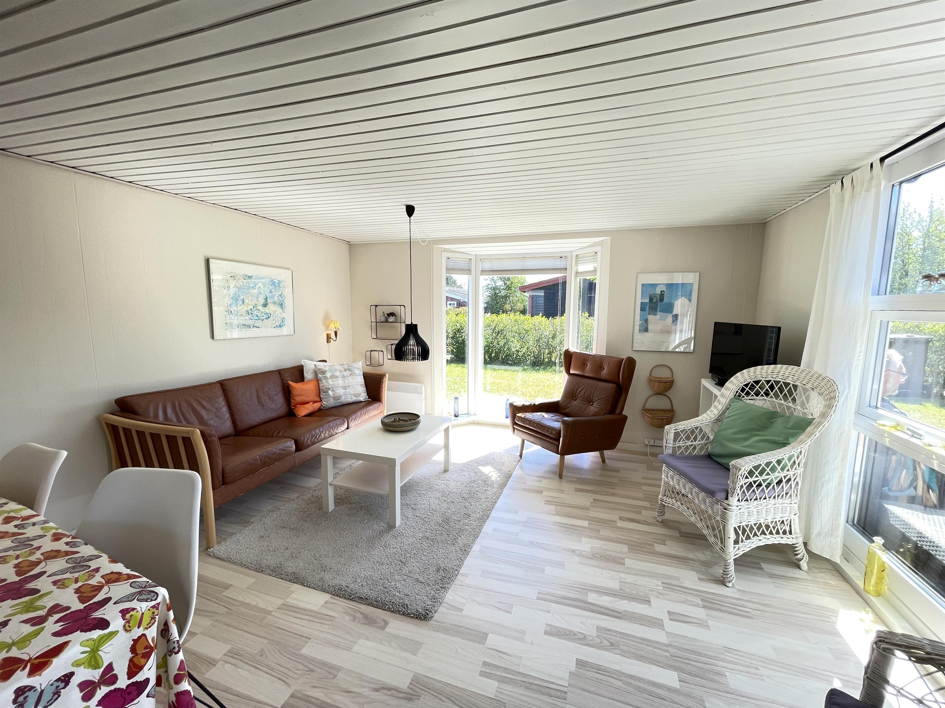 The house is small but very functional, with three bedrooms and a kitchen/living area with a terrace door and a small bay window that offers a view of the garden. The house has a beautifully modernized bathroom and a generally lovely interior with fine details. There is a small cozy enclosed terrace where you can enjoy the sun or meals during your holiday. There are also swings and a sandbox for many hours of play for the children.