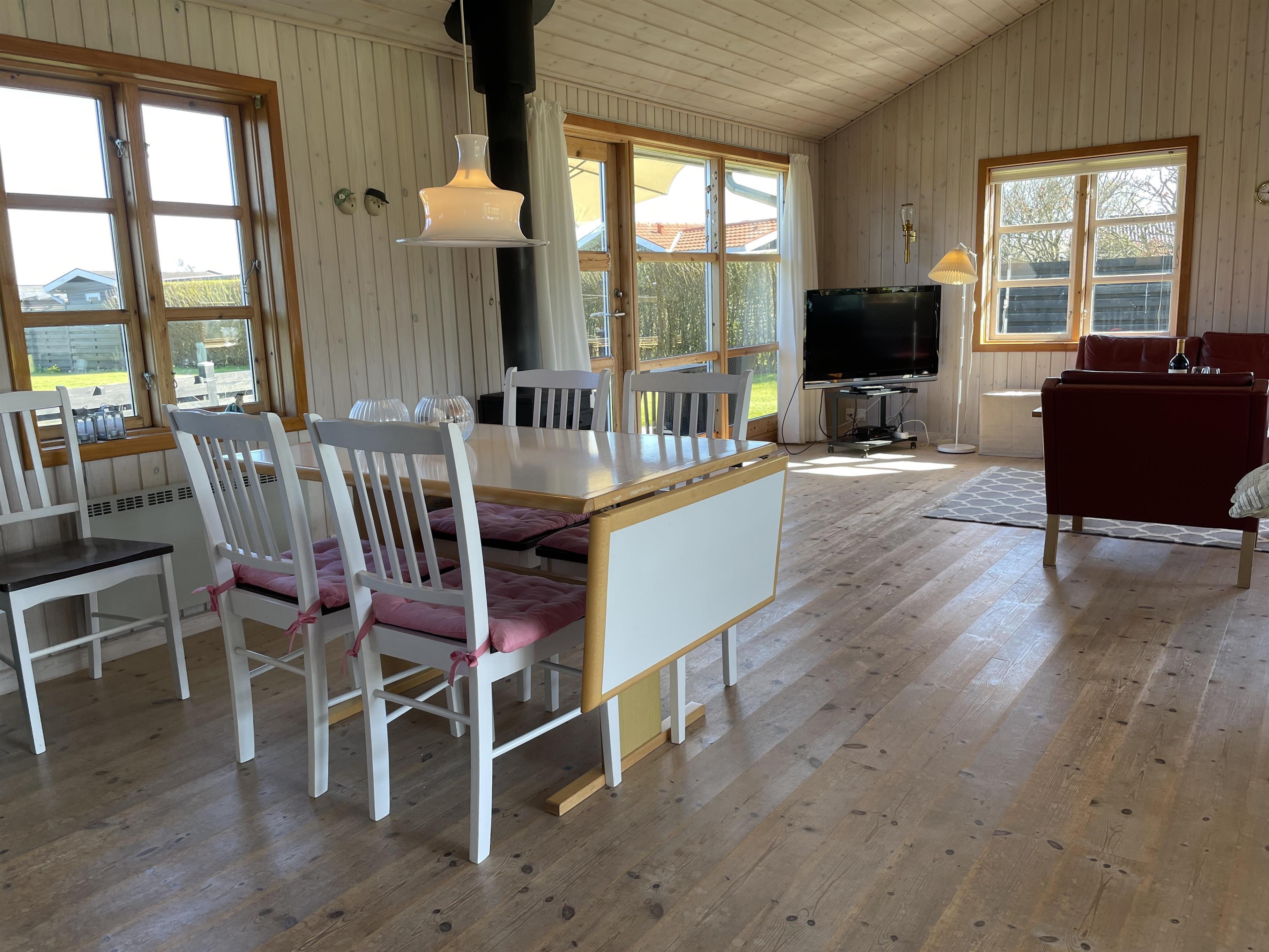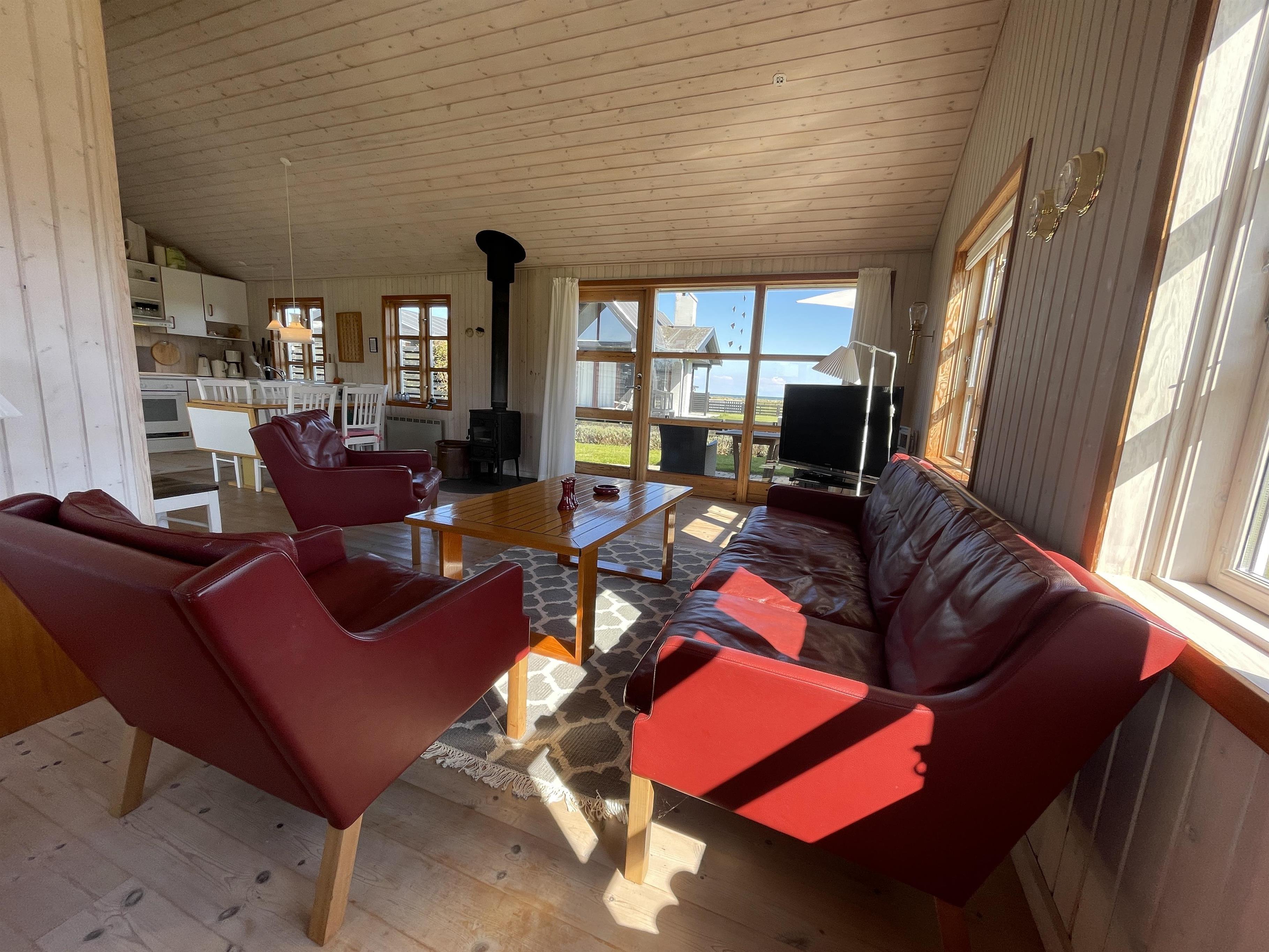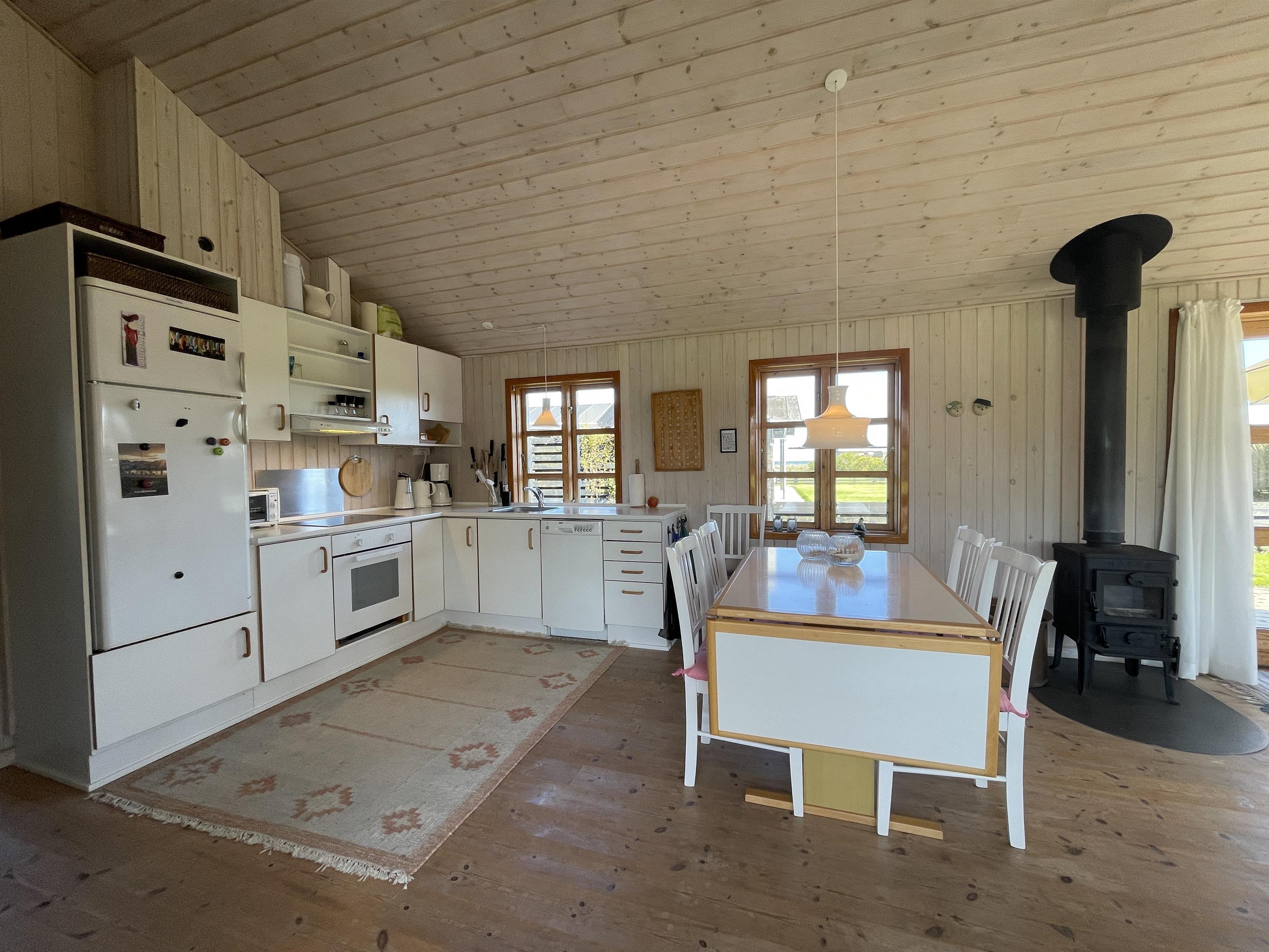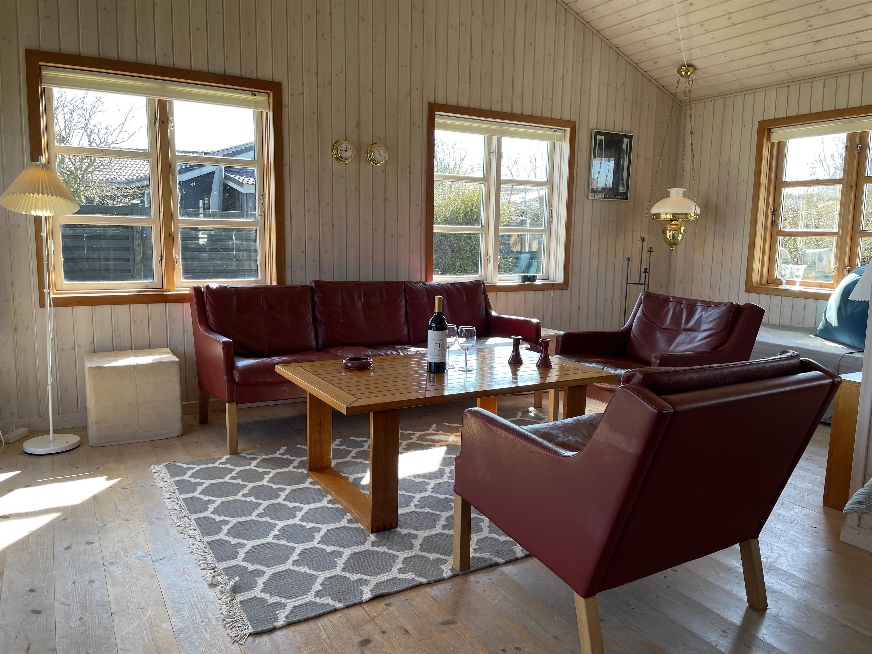 Inside the house, there is room for 6 people, spread over three cozy bedrooms and a bunk bed at the entrance. When you enter, you are greeted by a spacious kitchen-dining area, where the ceiling stretches high. Here you can prepare delicious meals for your loved ones while the wood stove spreads warmth and cosiness after a refreshing walk along the beach on a cool autumn day. A large seating area with a charming 3-seater sofa, two soft armchairs, and a TV invites relaxation and enjoyment.