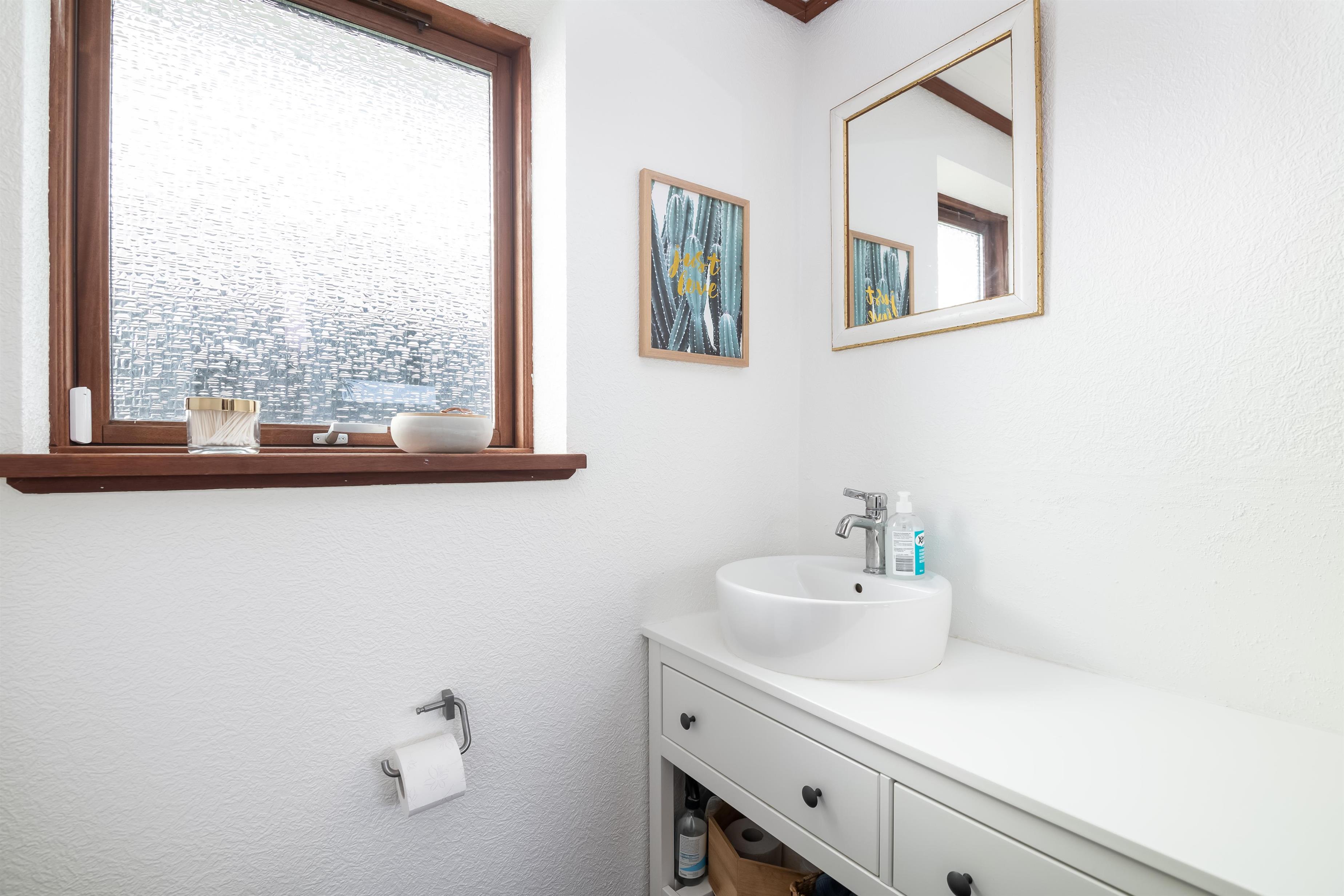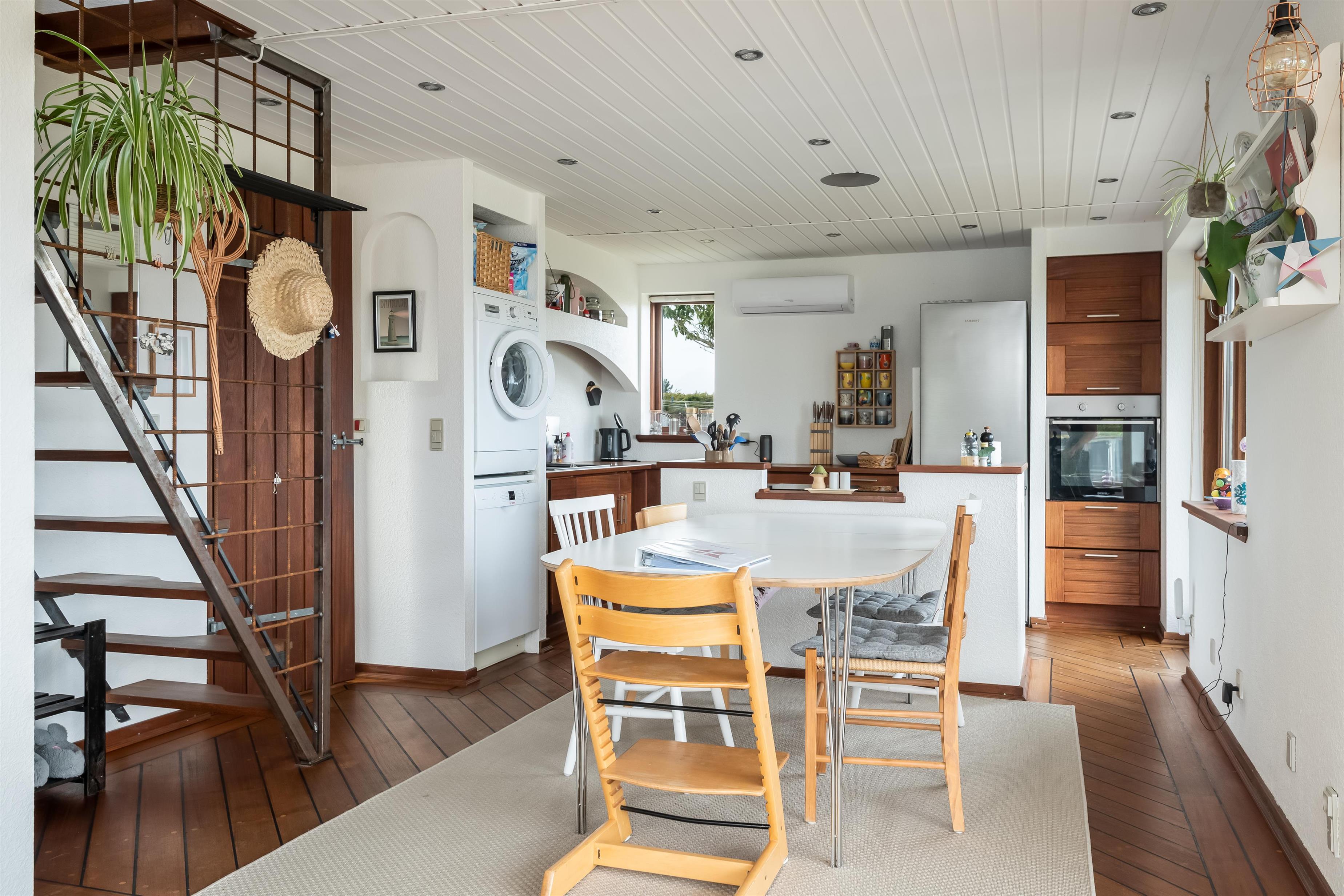 The house underwent a major renovation in 2002 and has been well maintained ever since – something that is clearly visible and felt. The kitchen is equipped with a dishwasher, fridge/freezer, coffee machine, various kitchen utensils, generous counter space, and a kitchen island with an induction hob facing the living area. Cooking here won’t feel like a lonely task. The bathroom features a shower and washing machine. A tumble dryer is available in the shed.