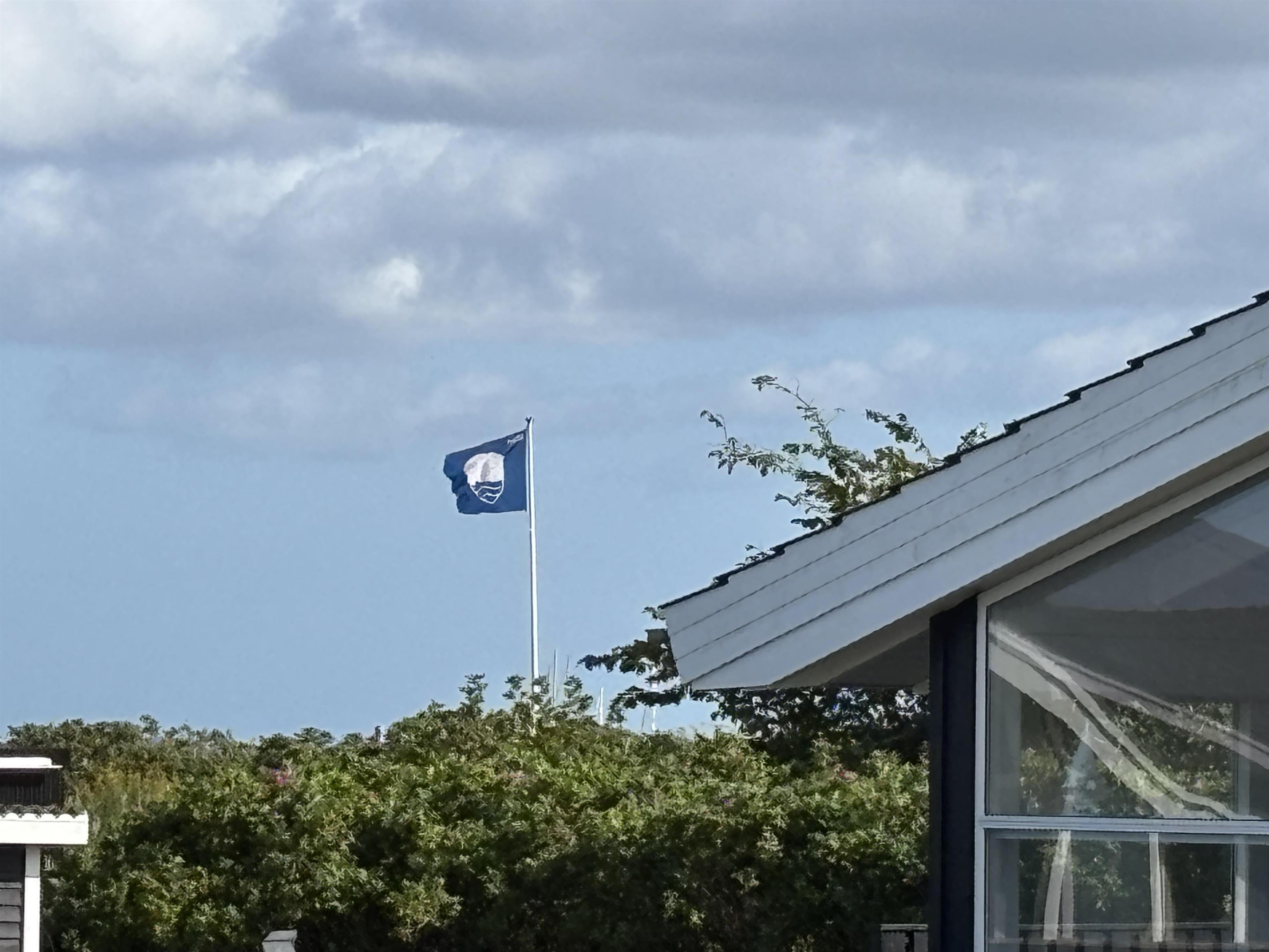 The kitchen and living room are open-plan, creating a beautiful maritime look with ship-style flooring, wooden kitchen, wooden doors, wood/metal staircase, and a carefully coordinated interior. Surrounding the entire house is a large wooden terrace with several cozy corners and access from both the living room and kitchen. The terrace is designed to allow wheelchair access from the driveway, although there are small doorsteps at the entrances. At the back of the house, there is an outdoor shower – perfect for rinsing off sand after a trip to the nearby Blue Flag beach.