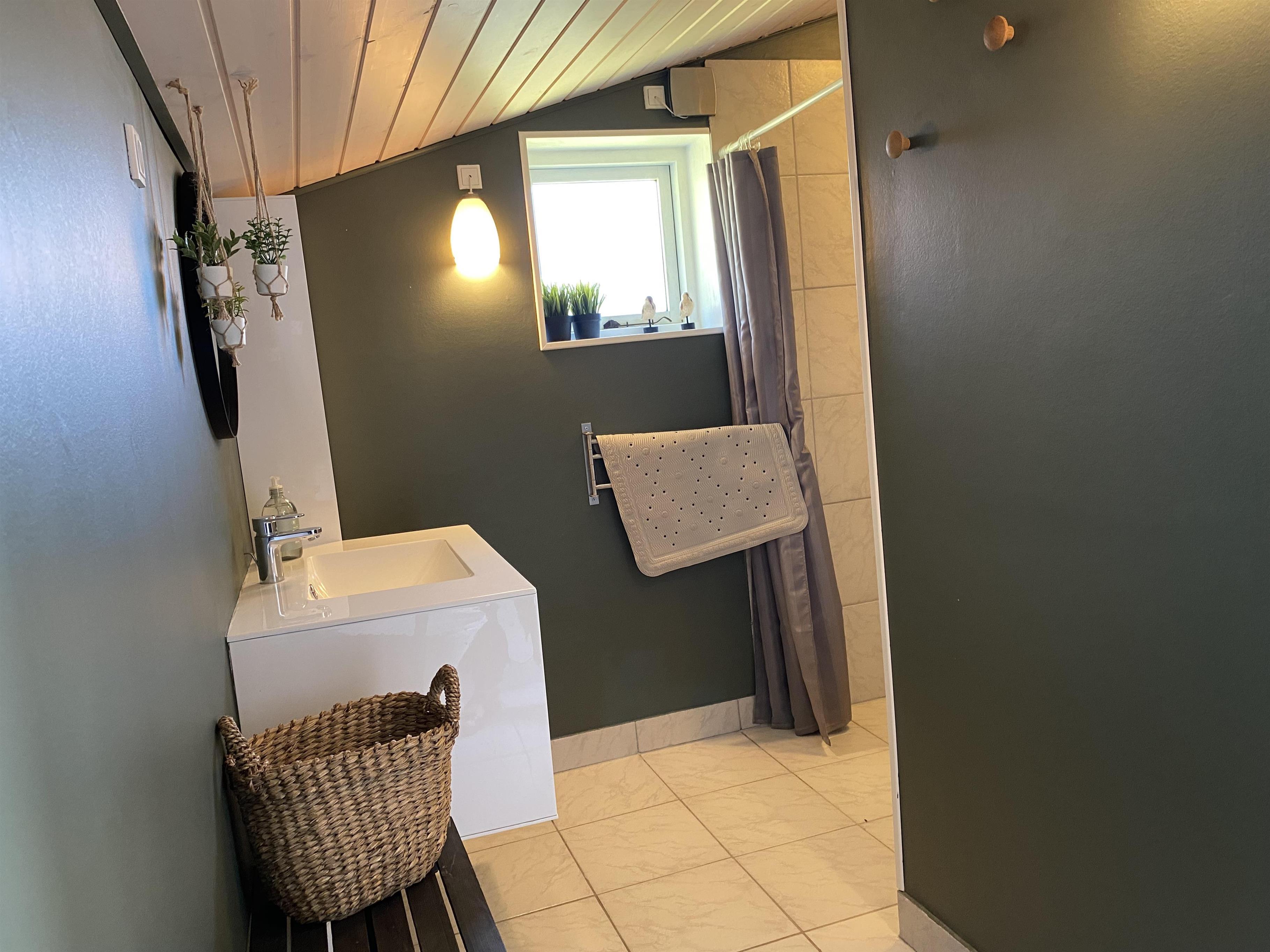 In all seasons, this super charming holiday home is a great choice, as it boasts a unique location. It is close to the beach, offering breathtaking sea views with the island of Læsø in the background and the most wonderful seawater for swimming. Additionally, Sæby, with all its attractions, is just around the corner. The holiday home features a brand-new wooden terrace and a beautiful annex, and there is also an outdoor shower to rinse off saltwater and sand after a refreshing dip.