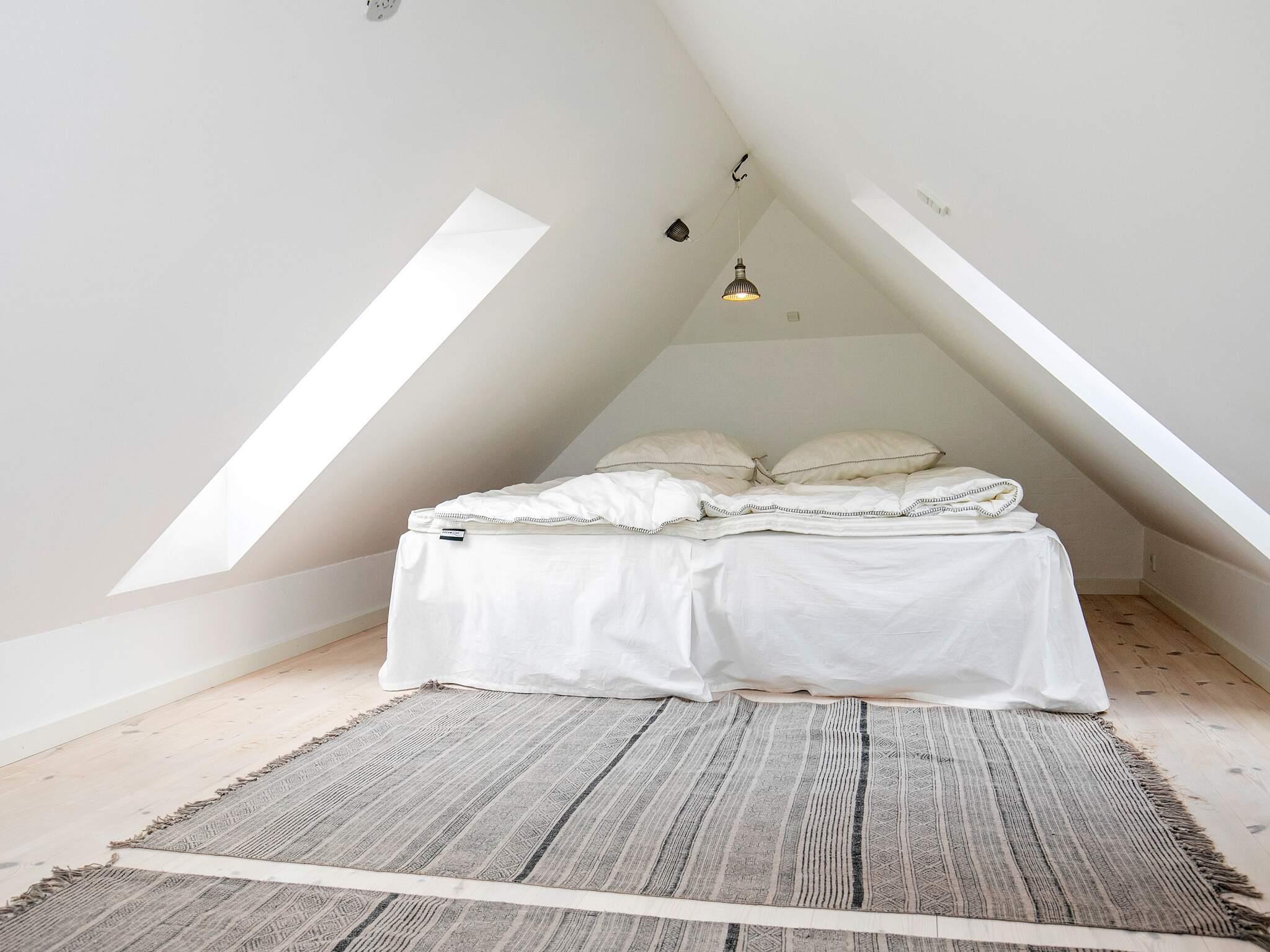 Im Ferienhaus erwartet Sie ein offener Küchen-/Wohnbereich für das Familienleben, mit teils bodentiefen Fenstern für ein lichtes und luftiges Ambiente. Geräumiges Badezimmer mit Dusche/WC und angenehmer Fußbodenheizung. Oben auf dem gemütlichen Hems unter der Dachschräge steht ein Doppelbett bereit. Außerdem doppelte Schlafcouch unten im Wohnbereich.