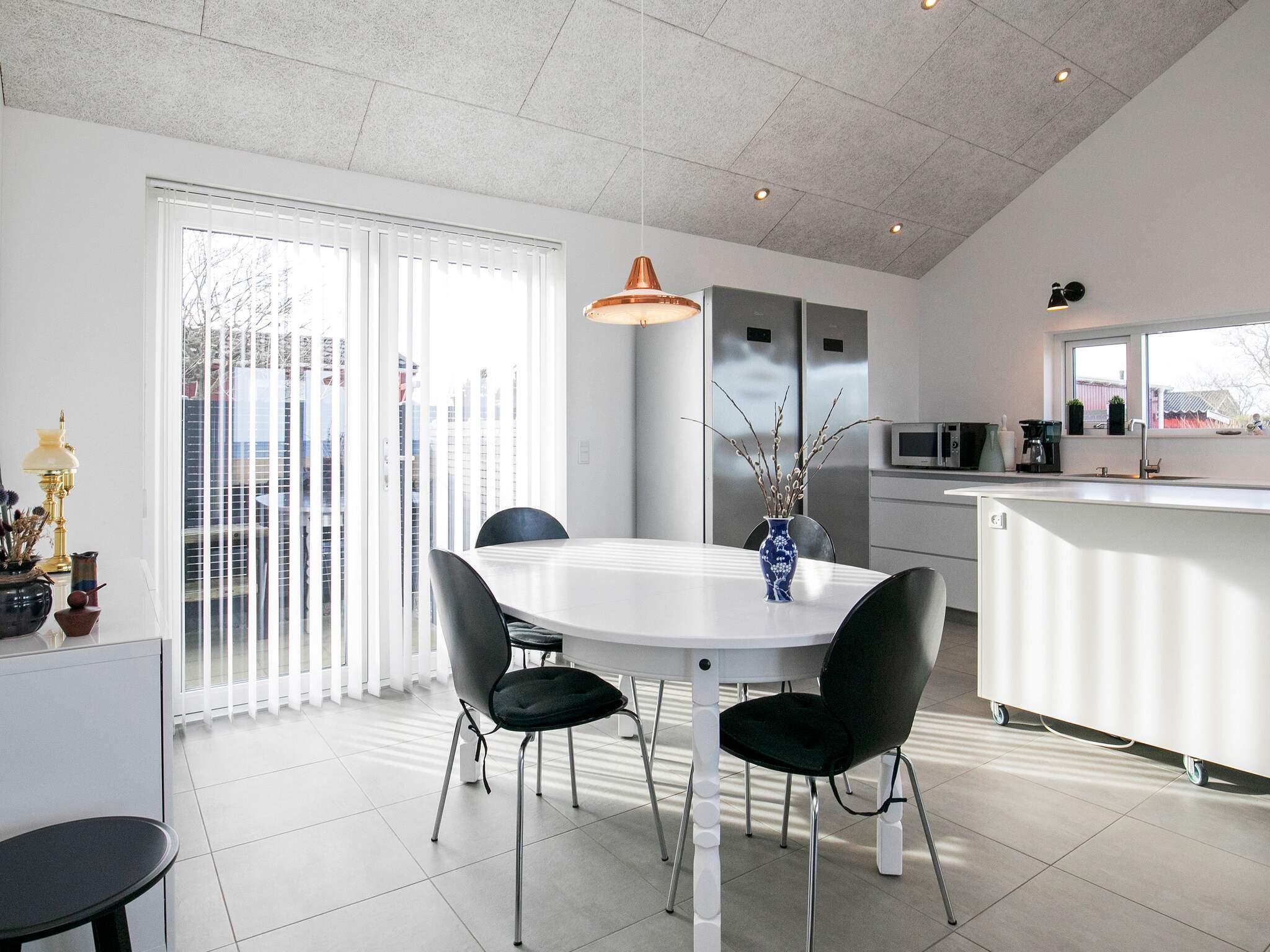 Im Inneren erwartet Sie der offene Küchen-/Wohnbereich für das Familienleben, der geschmackvoll eingerichtet und mit großen Fenstern ausgestattet ist, um möglichst viel Tageslicht und zugleich schöne Aussicht zur Küste zu bieten. Zudem gibt es zwei Schlafzimmer und einen Hems oben unter der Dachschräge mit weiteren Schlafplätzen und Meerblick.