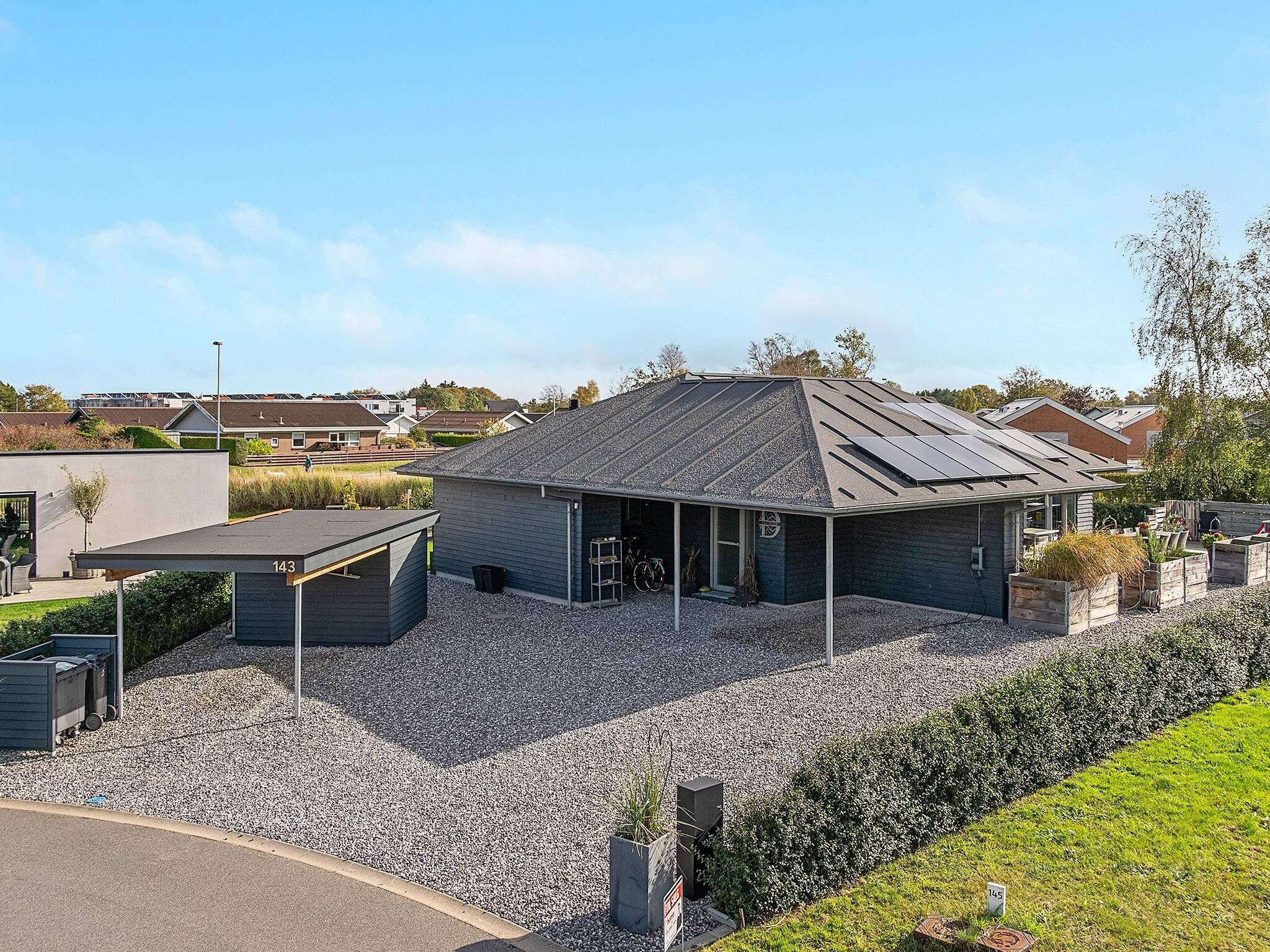 Bei Sæby finden Sie in einem Wohnviertel dieses moderne und gut eingerichtete Ferienhaus mit Terrassen und einem schönen Blick zu einem hügeligen Waldstück sowie Nähe zum Wasser und zur reizvollen Natur ringsum.