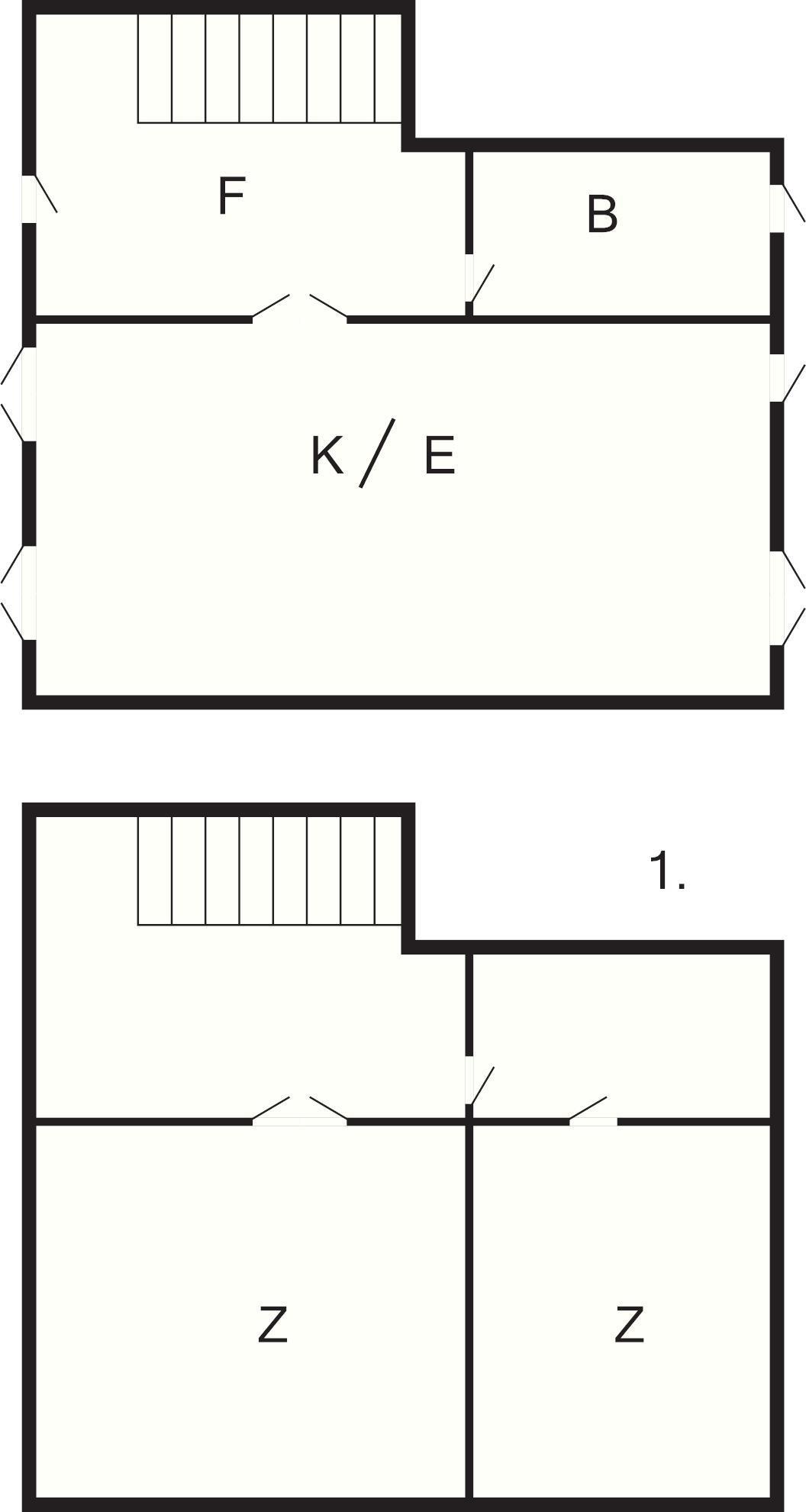 Vom Eingangsbereich führt eine Treppe hinauf zu den Schlafzimmern. Es gibt zwei Schlafzimmer mit Einzelbetten, die auf Wunsch zu einem Doppelbett zusammengeschoben werden können. Im ersten Stock befindet sich außerdem ein Schlafsofa.