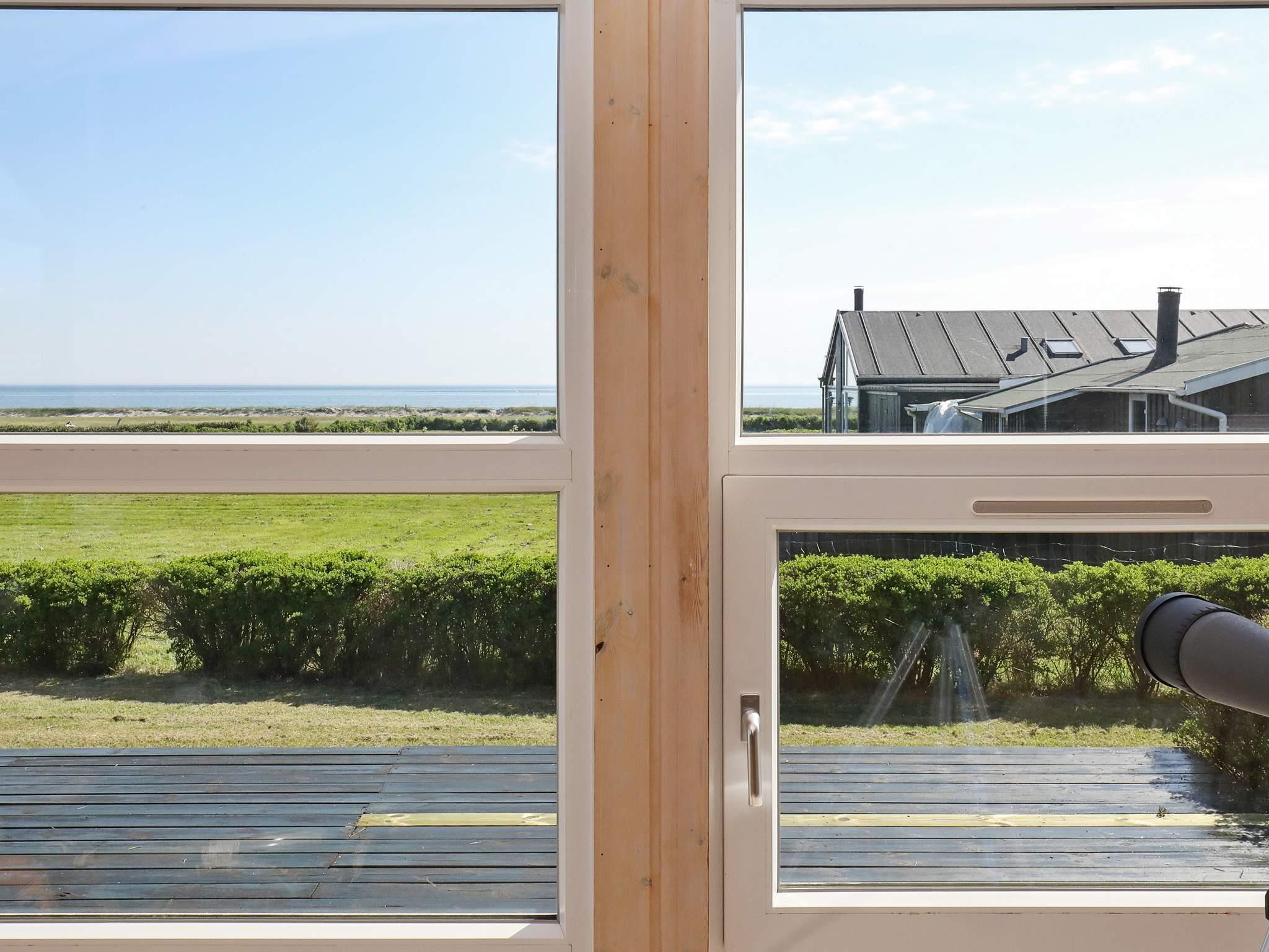 Das geräumige Ferienhaus präsentiert sich hell und wohnlich eingerichtet, mit einem offenen Küchen-/Wohnbereich mit Essecke am Fenster und Kaminofen für kühlere Abende. Eine energieeffiziente Wärmepumpe dient zudem als Wärmequelle. Große Fensterflächen und die offene Zimmerdecke tragen zum luftigen Ambiente im Raum bei. Genießen Sie hier den Sonnenaufgang und den Meerblick! Davor liegt eine offene Holzterrasse für Sonnentage und Grillabende.