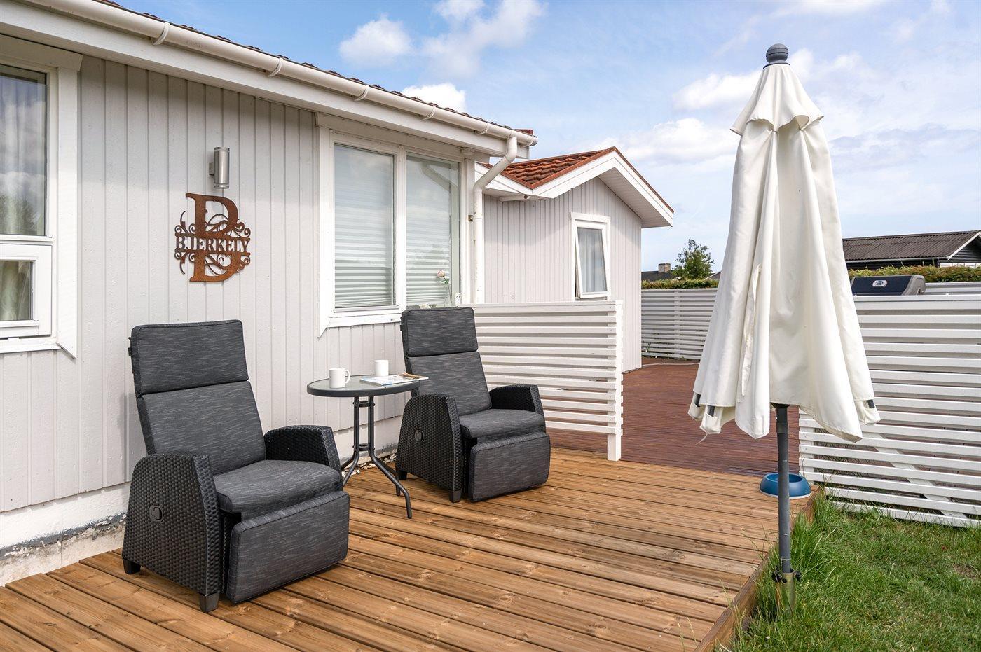 The holiday home is situated on a 500 m² natural site. Situated 250 m from the sea. Nearest shop is 2000 m away. A 75 m² terrace belong to the holiday home. Barbecue at your disposal. Parking place by the holiday home.