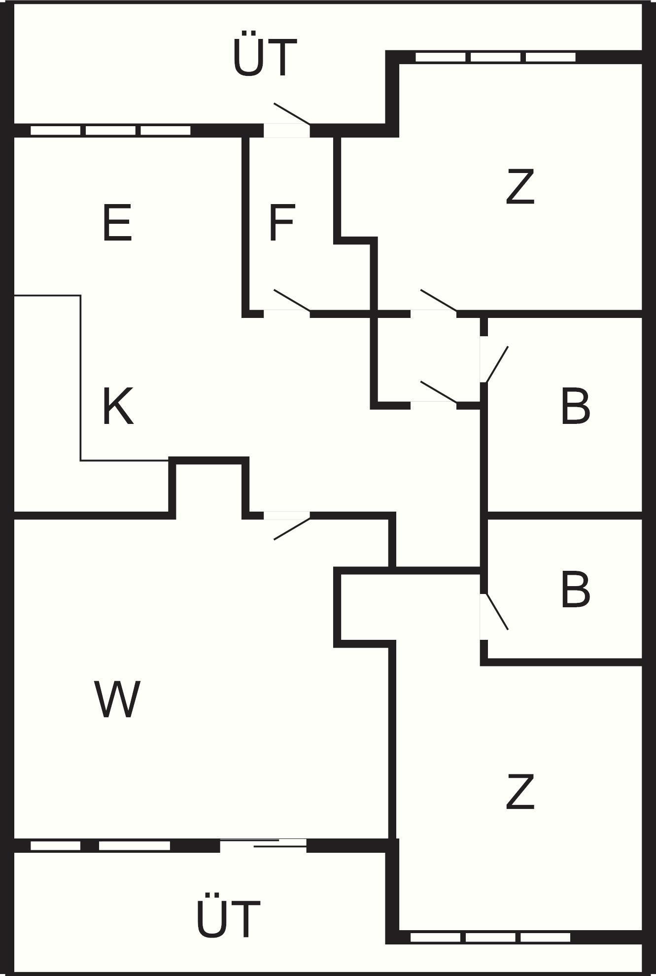 Off. Küche: E-Herd, Kühl-Gefrier-Kombi, Abzugsh., Kaffeem., Spülm.