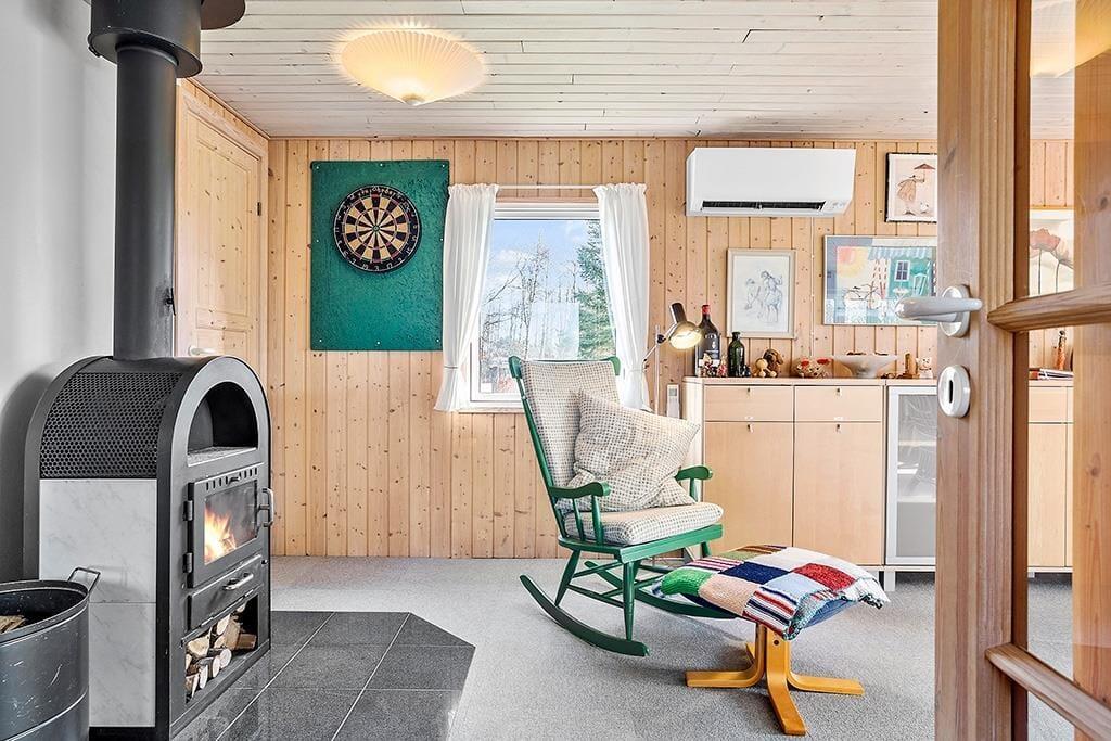 Im Inneren des 52 m² großen, gepflegten Ferienhauses, das Platz für vier Personen bietet, herrscht eine warme und gemütliche Atmosphäre. Nachts kann man sich in den beiden Schlafzimmern des Hauses ausbreiten, es sei denn, man nutzt auch das Schlafsofa im Wohnzimmer. Kochen, Essen, Brettspiele und andere gemütliche Aktivitäten können im Wohnzimmer stattfinden, in das eine Küche integriert ist. Das Wohnzimmer ist der ideale Ort, um gemeinsame Zeit zu verbringen oder sich mit einem interessanten Buch oder einer Zeitung zu entspannen. Wenn Sie Filme sehen möchten, ist ein Fernseher mit Chromecast vorhanden. Und mit dem Kaminofen und einer Wärmepumpe können Sie sich auf angenehme Temperaturen im Haus freuen.
