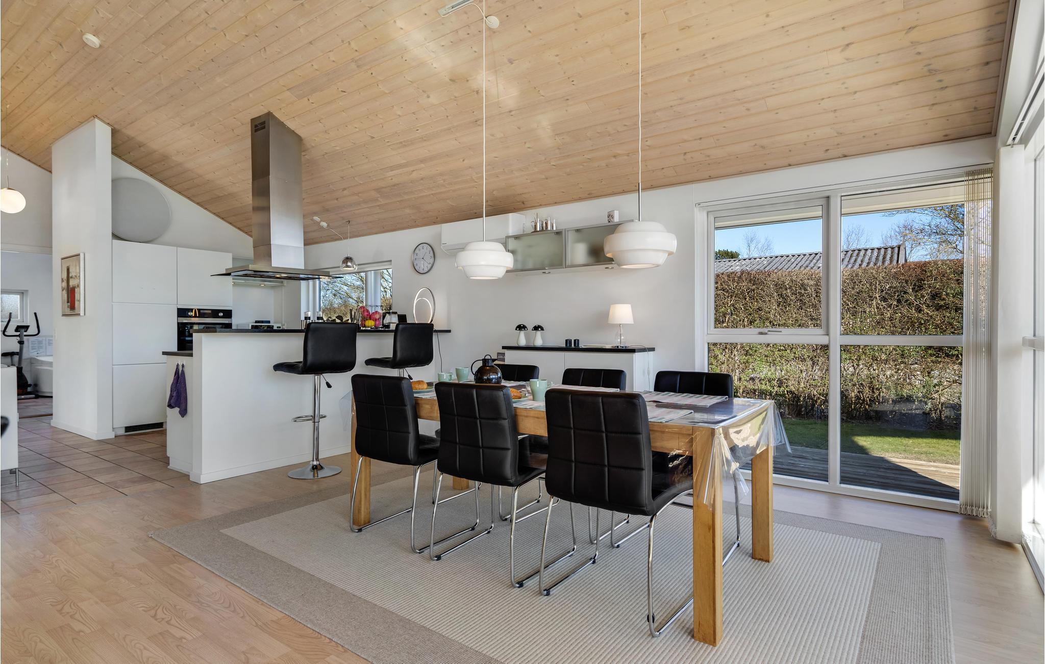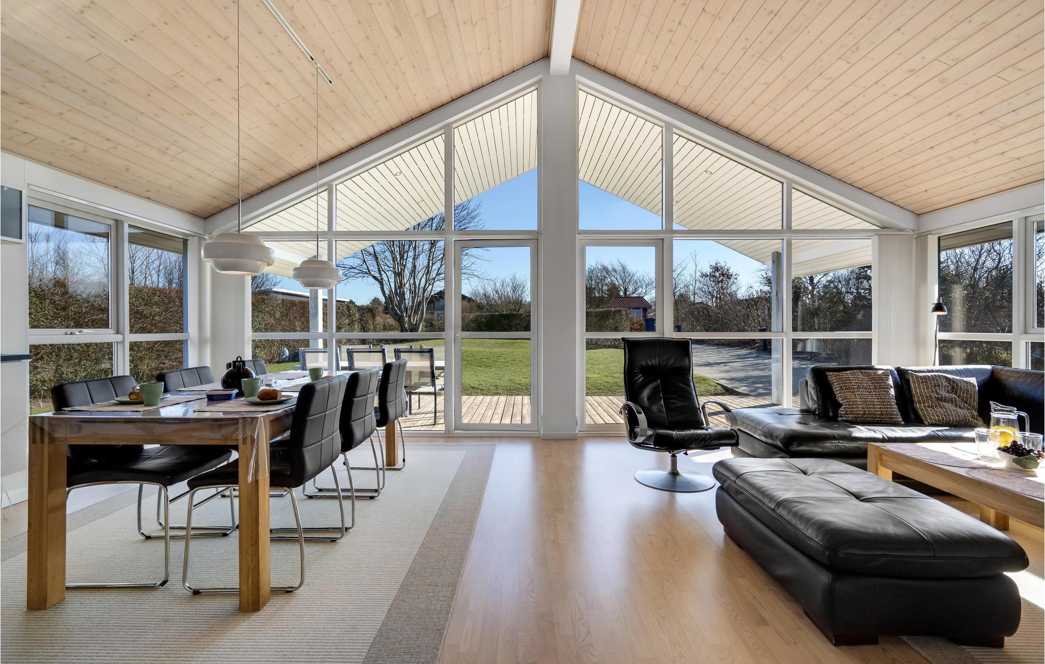Seine moderne Einrichtung, die stilvolle Möblierung und ein herrlicher Tageslichteinfall machen das Ferienhaus zu einer wahren Wohlfühloase. Genießen Sie gemeinsame Mahlzeiten am langen Esstisch mit Blick in den Garten durch große Panoramafenster und machen Sie es sich nach einem herrlichen Tag auf den Sofas bequem, sehen Sie einen Film an, spielen Sie Spiele und plaudern Sie noch lange.