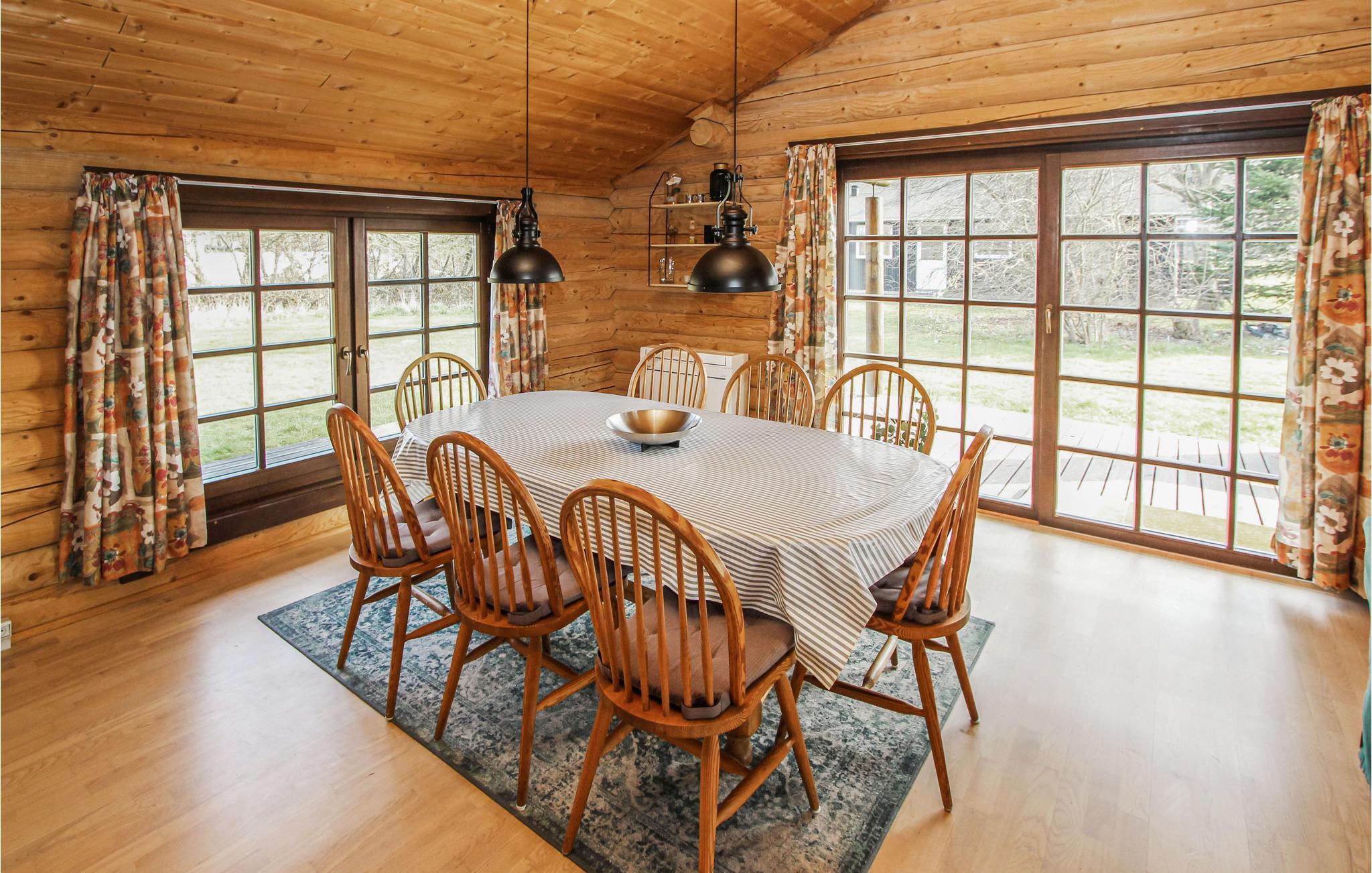 Hier verbringen Sie Ihren Urlaub unweit der Sælvig Bucht. Das urgemütliche Blockhaus bietet Platz auch für die größere Familie und auch der Vierbeiner darf hier mit in den Urlaub kommen! Freuen Sie sich auf schöne Abende in der Sofa-Landschaft, feuern Sie im Kaminofen an, der den Spieleabend mit seinem Prasseln perfekt untermalt. Nach einem aktiven Tag in der Natur der Insel können Sie in der Sauna herrlich entspannen oder ein sprudelndes Bad im Whirlpool genießen. Ein kurzer Spaziergang bringt Sie von hier aus zum Strand.