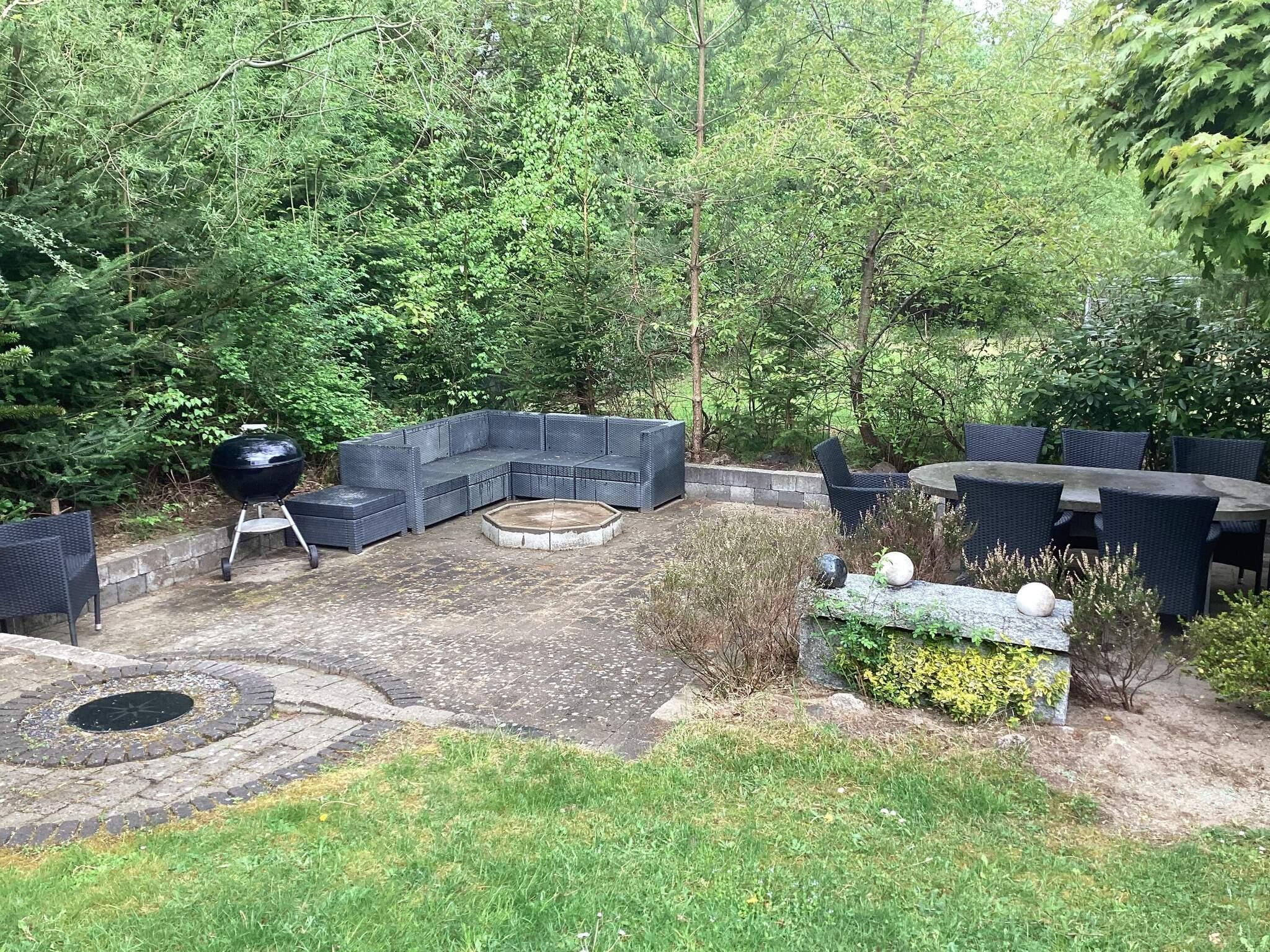 1 Außenbereich: Gartenmöbel, Liegestühle, Holzkohlegrill, Indhegnet grund, Terrasse, Fußballtor