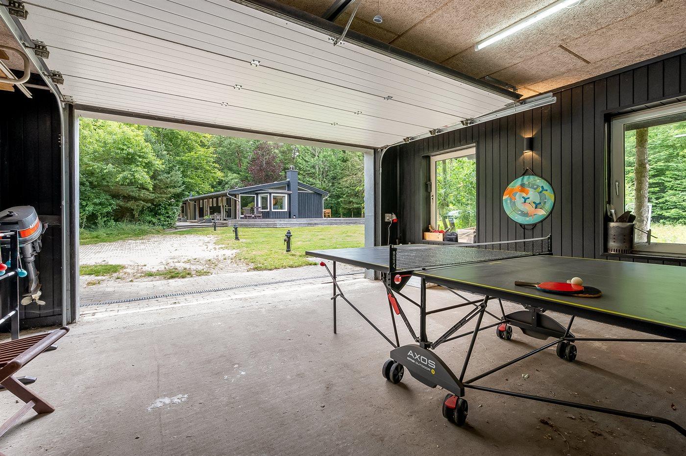 The holiday home is situated on a 2830 m² natural site. Situated 2900 m from the sea. Situated 400 m from lake. A bathing jetty is available nearby. Nearest shop is 2500 m away. A terrace belong to the holiday home. Furthermore the house has a covered terrace. You find a tool shed. Swing. Trampoline. Football goal.Fire place. It is possible to prepare the food in the outdoor kitchen. Barbecue at your disposal. Carport is at your disposal. Parking place by the holiday home.