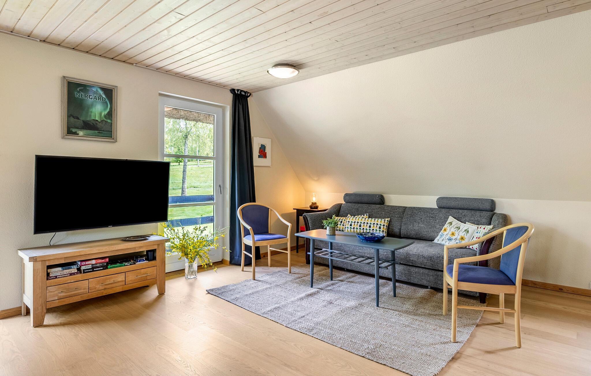 Willkommen in dem einladenden und Haus, das Sie in idealer Lage für eine erholsame Auszeit mit tollen Unternehmungen in der Natur und mit Blick auf den Fluss empfängt. Mit wohnlichen Räumen und der funktionalen Einrichtung ist es die ideale Basis für eine schöne Auszeit. Entspannen Sie nach Ihren Ausflügen im Wohnzimmer und streamen Sie Ihre Lieblingsserie auf dem Sofa.