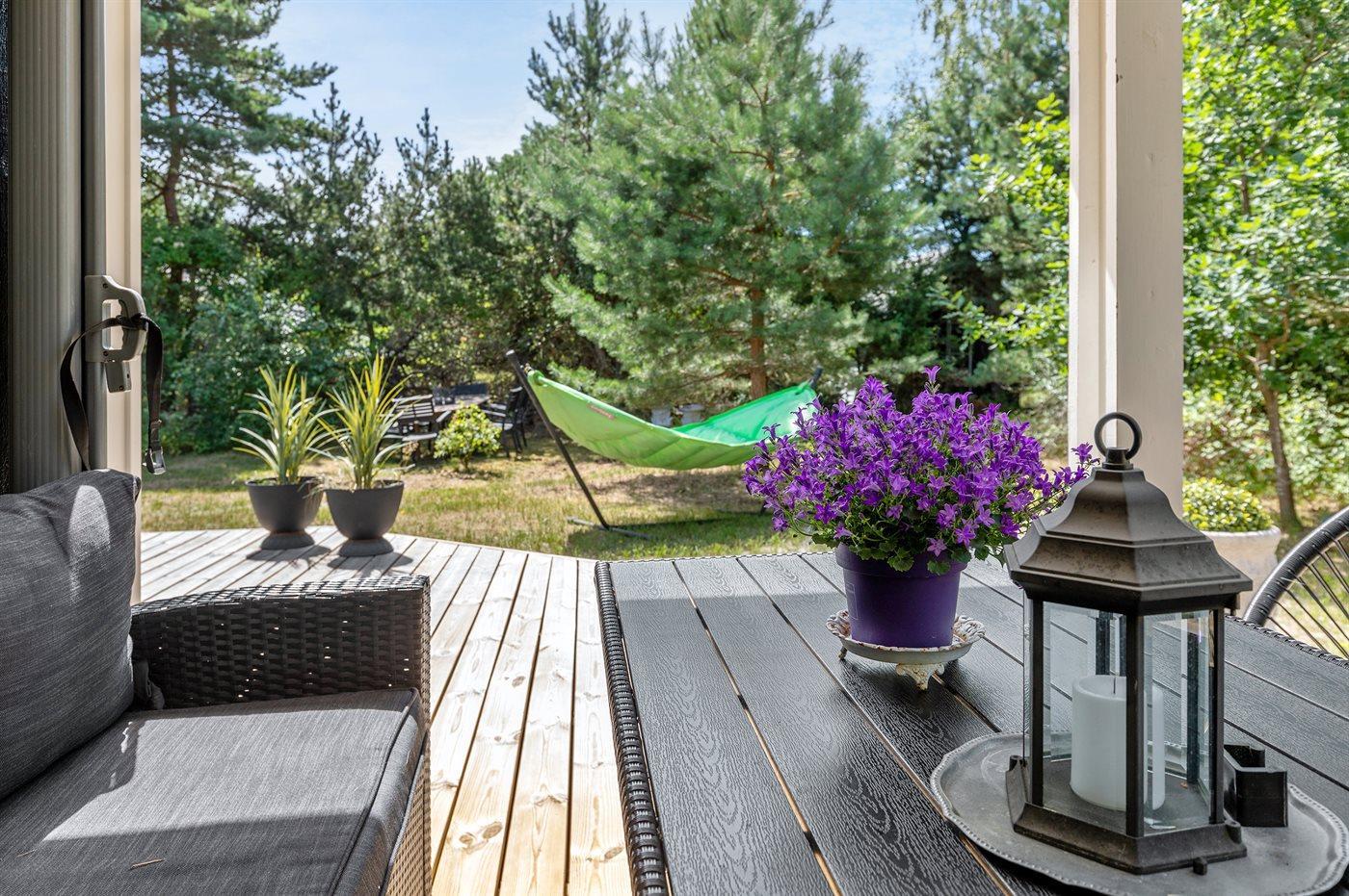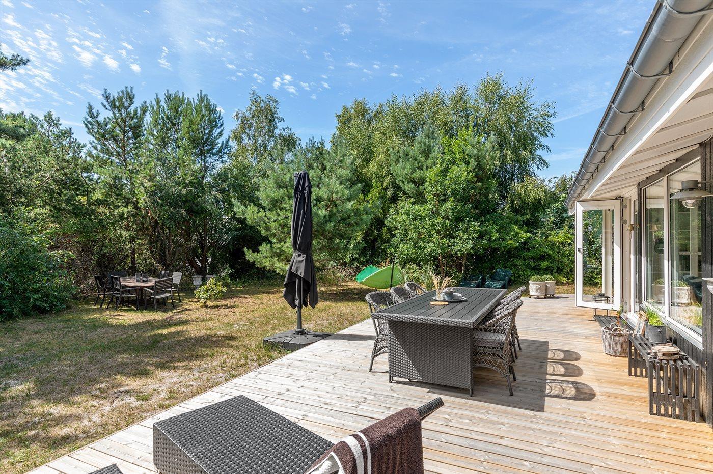 The holiday home is situated on a 800 m² natural site. Situated 300 m from the sea. Nearest shop is 3000 m away. You will find a golf course in a distance of 5000 m. A 30 m² terrace belong to the holiday home. Furthermore the house has a 12 m² covered terrace. Barbecue at your disposal. Plug for charging electric car is available. Parking place by the holiday home.