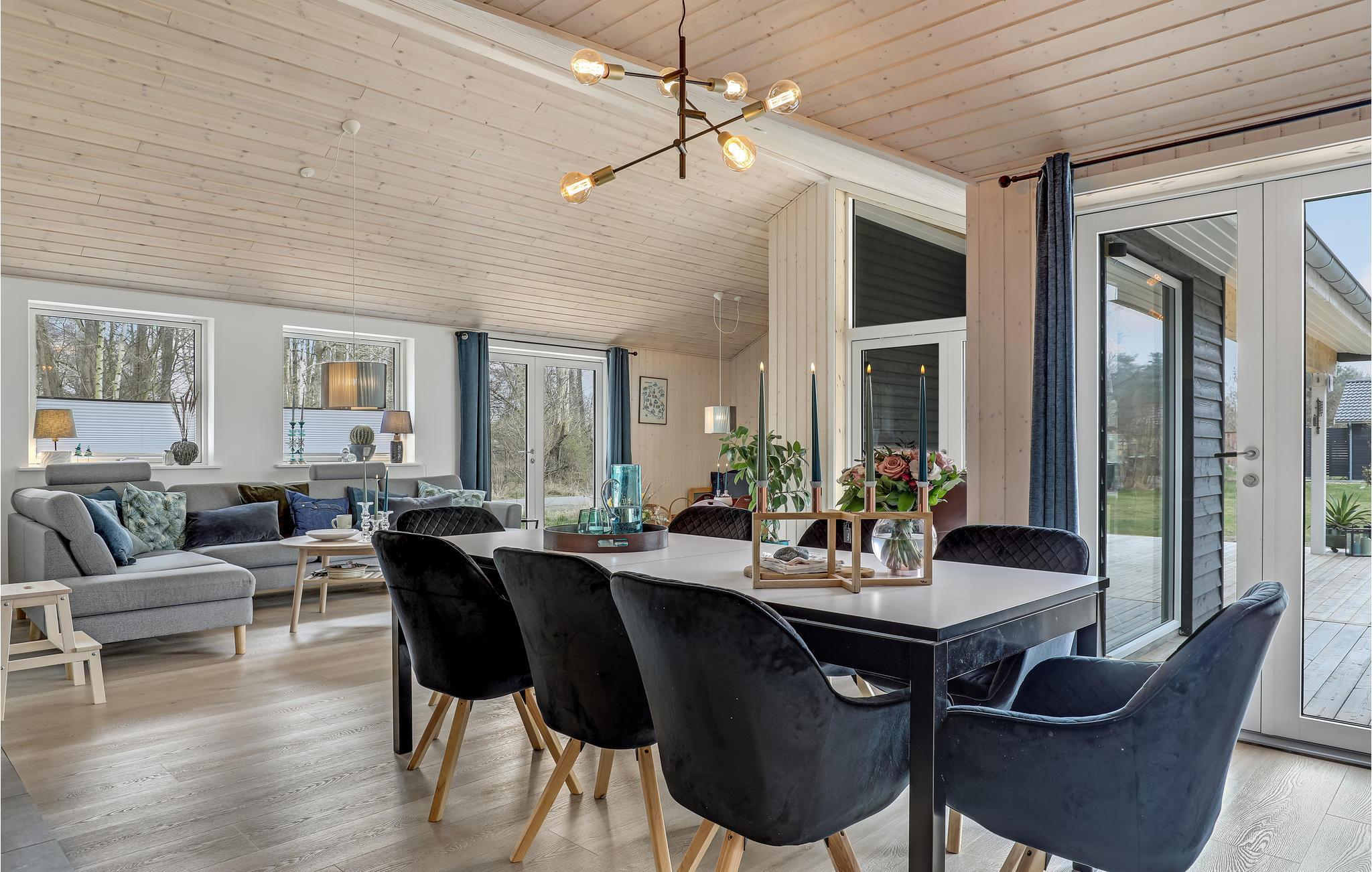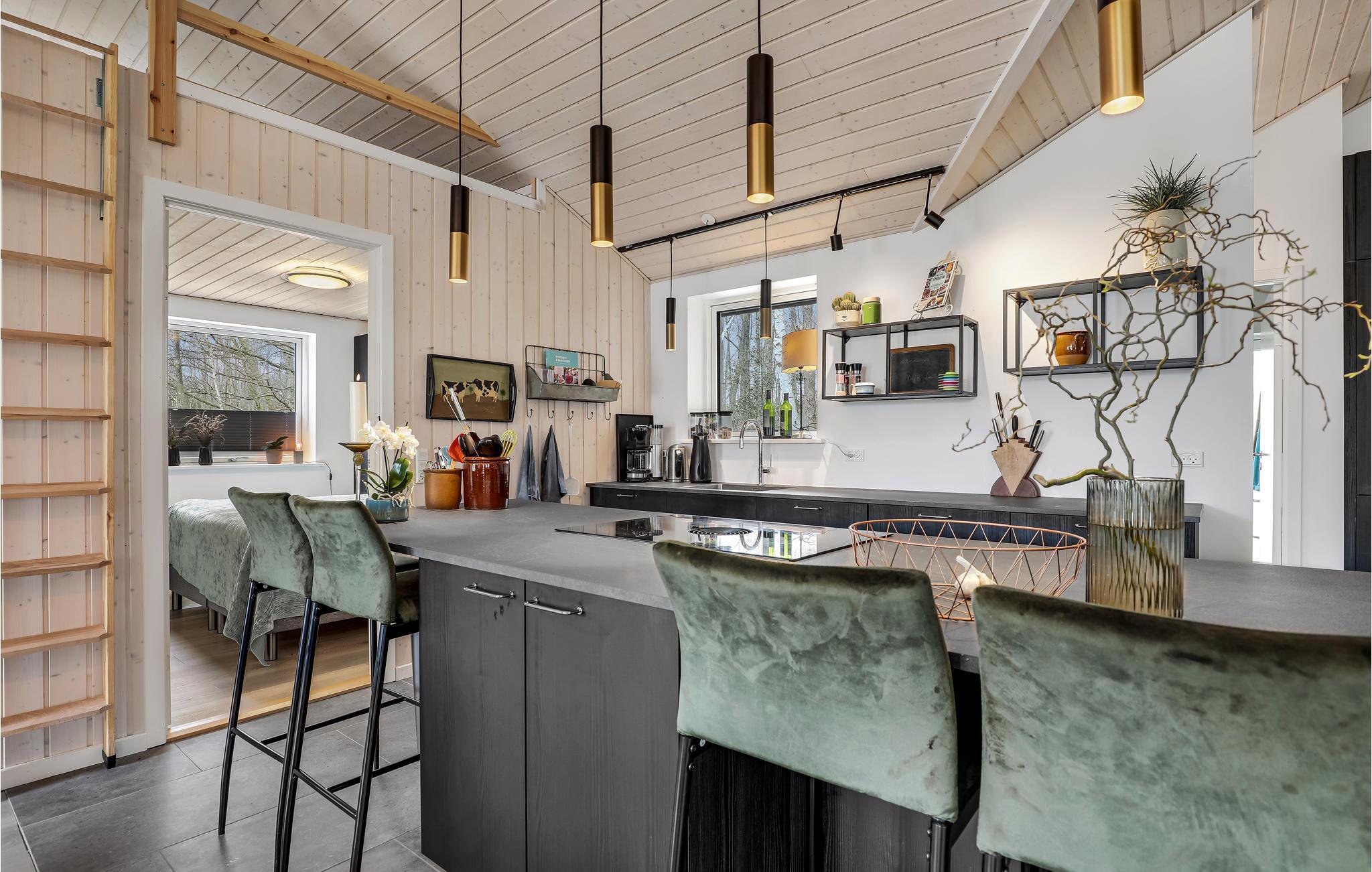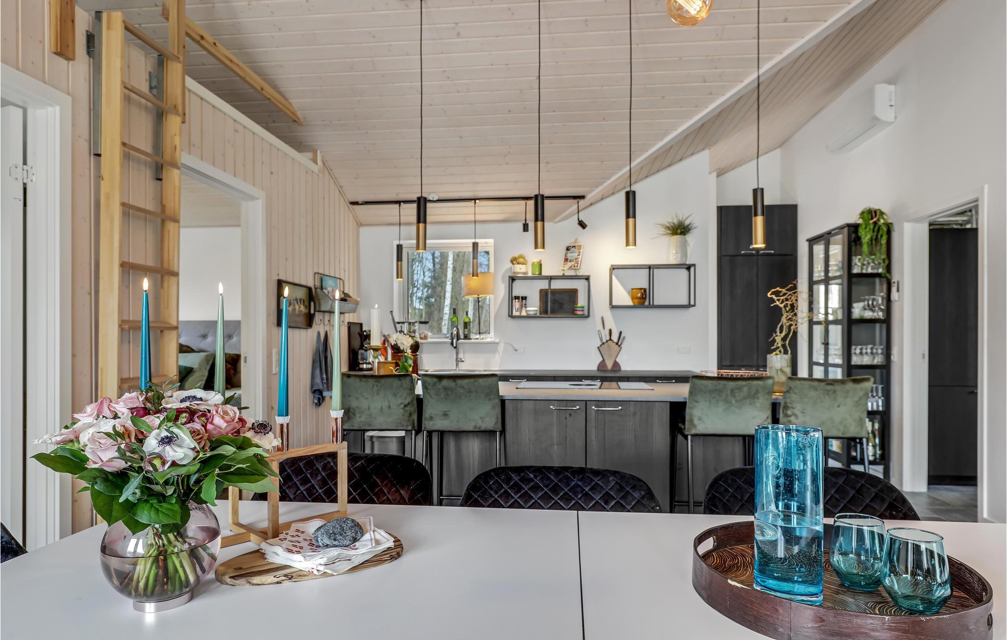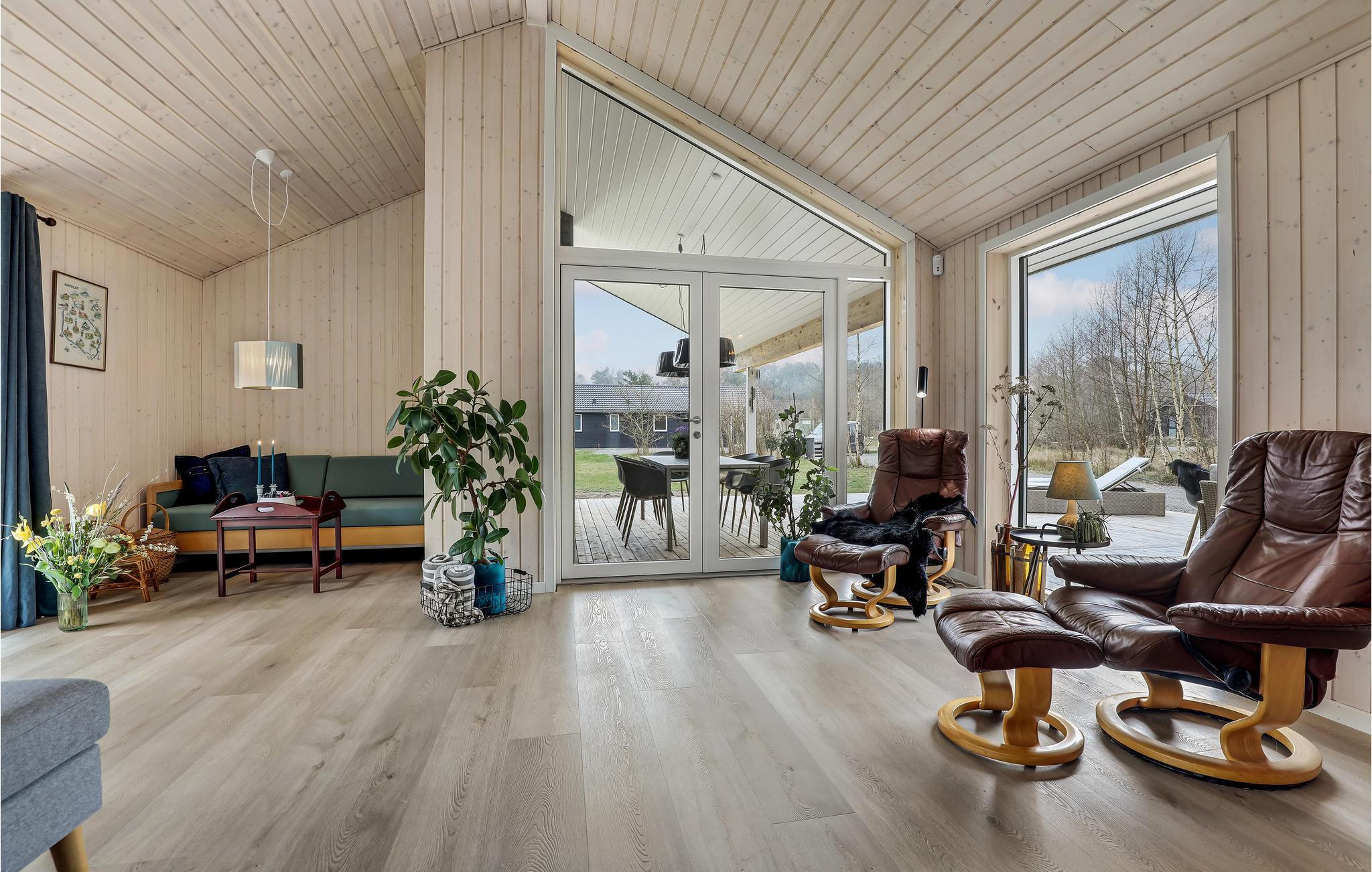 Das Haus empfängt Sie in idealer Lage, um einen schönen Badeurlaub mit viel Zeit am nahegelegenen Strand und Erkundungen der Insel zu verbringen, und auch, wenn Sie Golf lieben, haben Sie hier gute Möglichkeiten. Seine Räume erhalten ihren behaglichen Charme durch viele Holzelemente, eine komfortable Ausstattung und eine wohnlich-moderne Einrichtung, die das Entspannen leicht macht. Der helle Wohnbereich wird schnell zum Zentrum der gemeinsamen Aktivitäten, spielen, kochen und entspannen Sie hier zusammen, großflächige Fenster bieten einen herrlichen Blick auf den Wald.