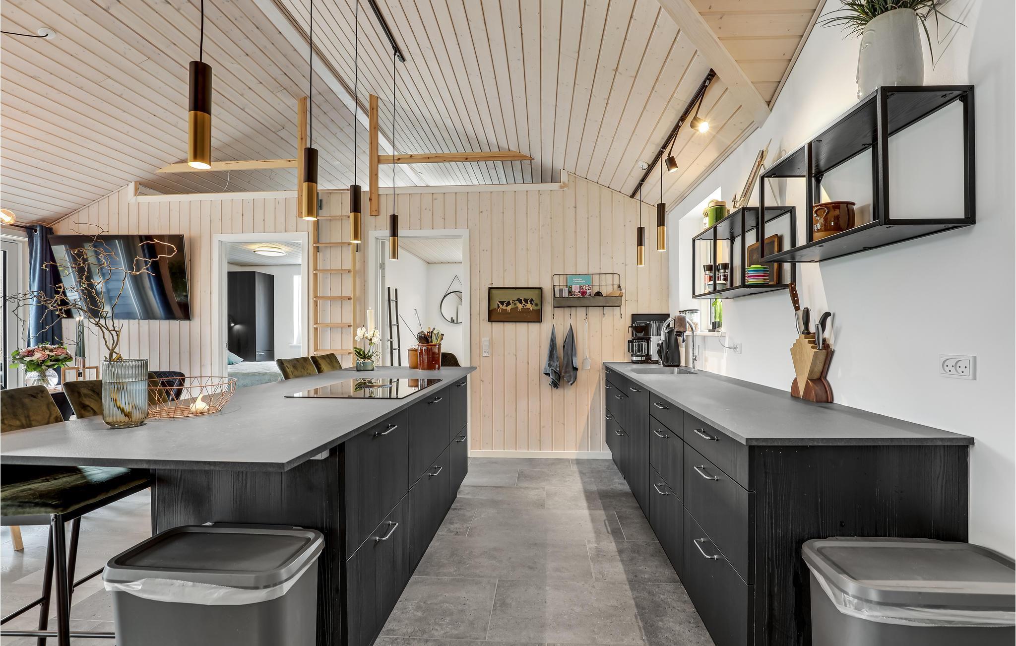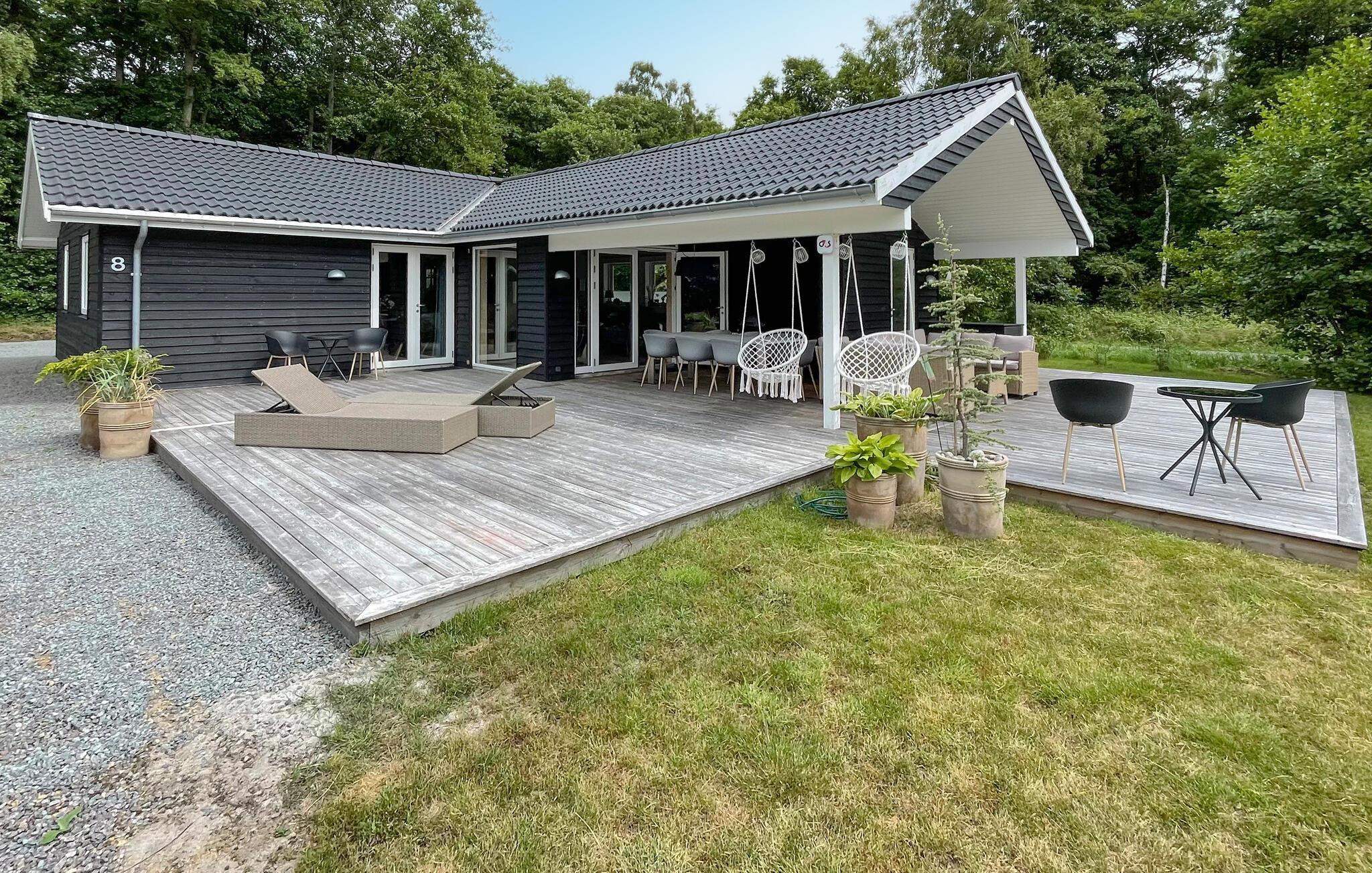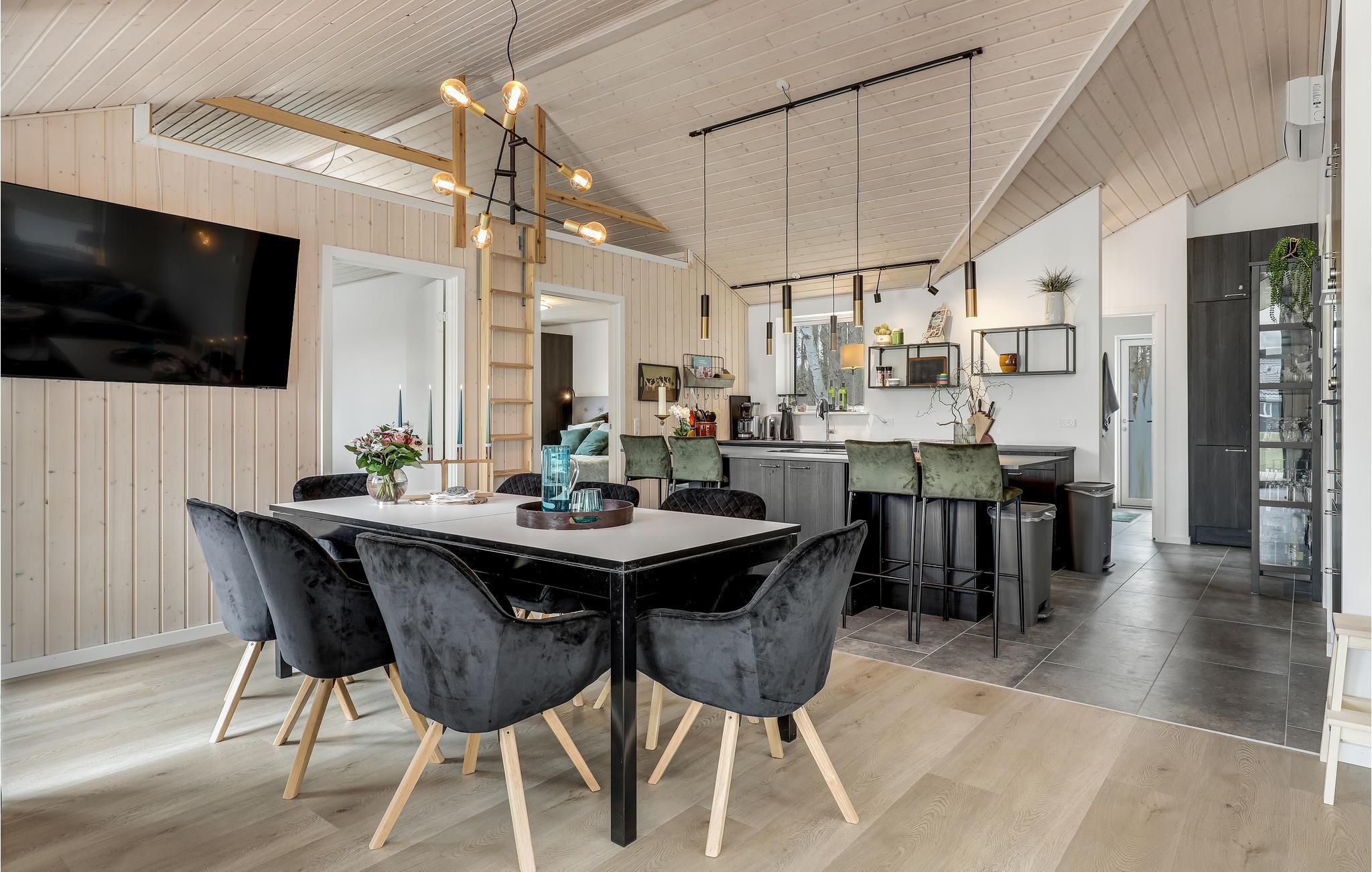 Das Haus empfängt Sie in idealer Lage, um einen schönen Badeurlaub mit viel Zeit am nahegelegenen Strand und Erkundungen der Insel zu verbringen, und auch, wenn Sie Golf lieben, haben Sie hier gute Möglichkeiten. Seine Räume erhalten ihren behaglichen Charme durch viele Holzelemente, eine komfortable Ausstattung und eine wohnlich-moderne Einrichtung, die das Entspannen leicht macht. Der helle Wohnbereich wird schnell zum Zentrum der gemeinsamen Aktivitäten, spielen, kochen und entspannen Sie hier zusammen, großflächige Fenster bieten einen herrlichen Blick auf den Wald.