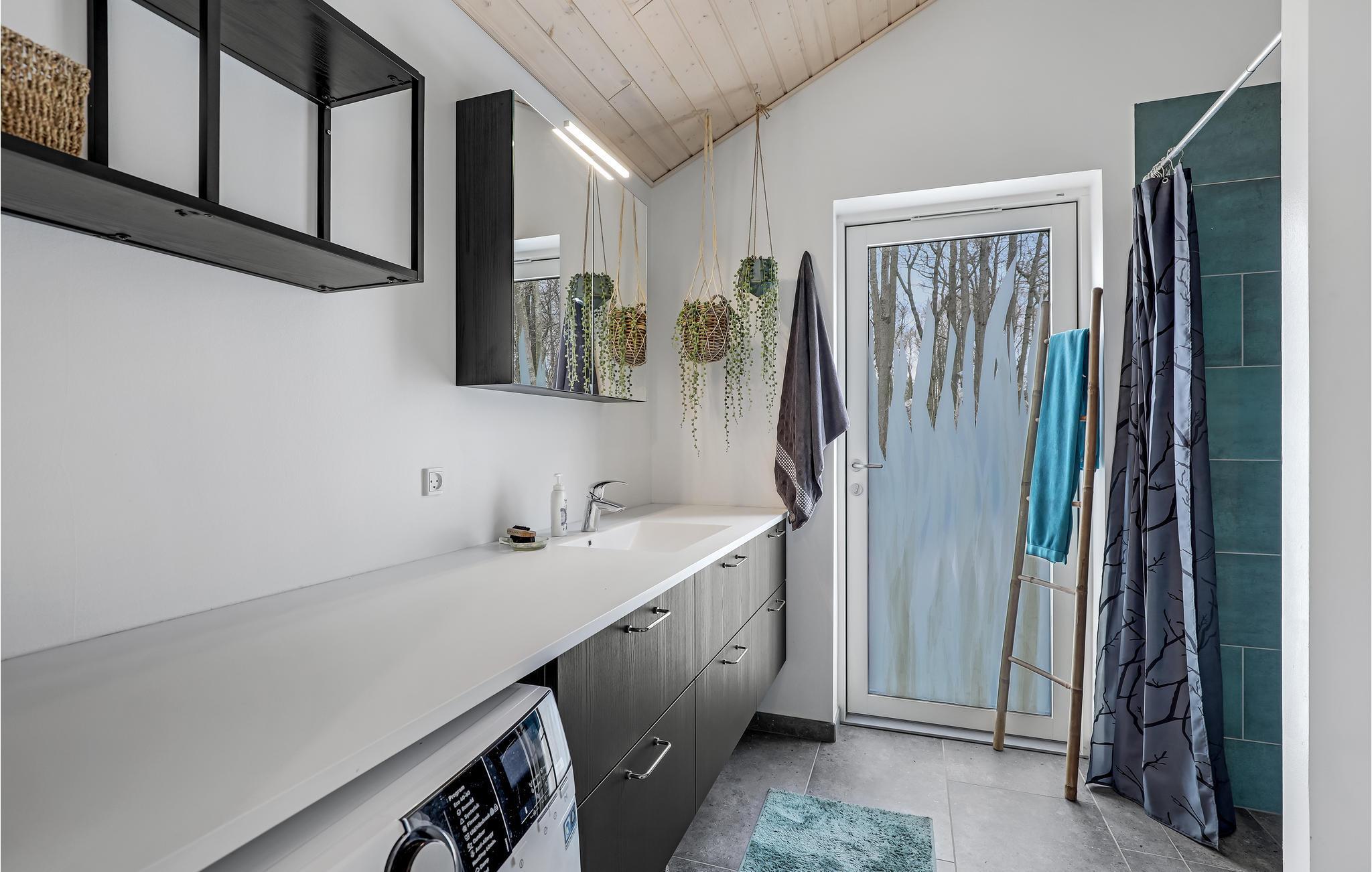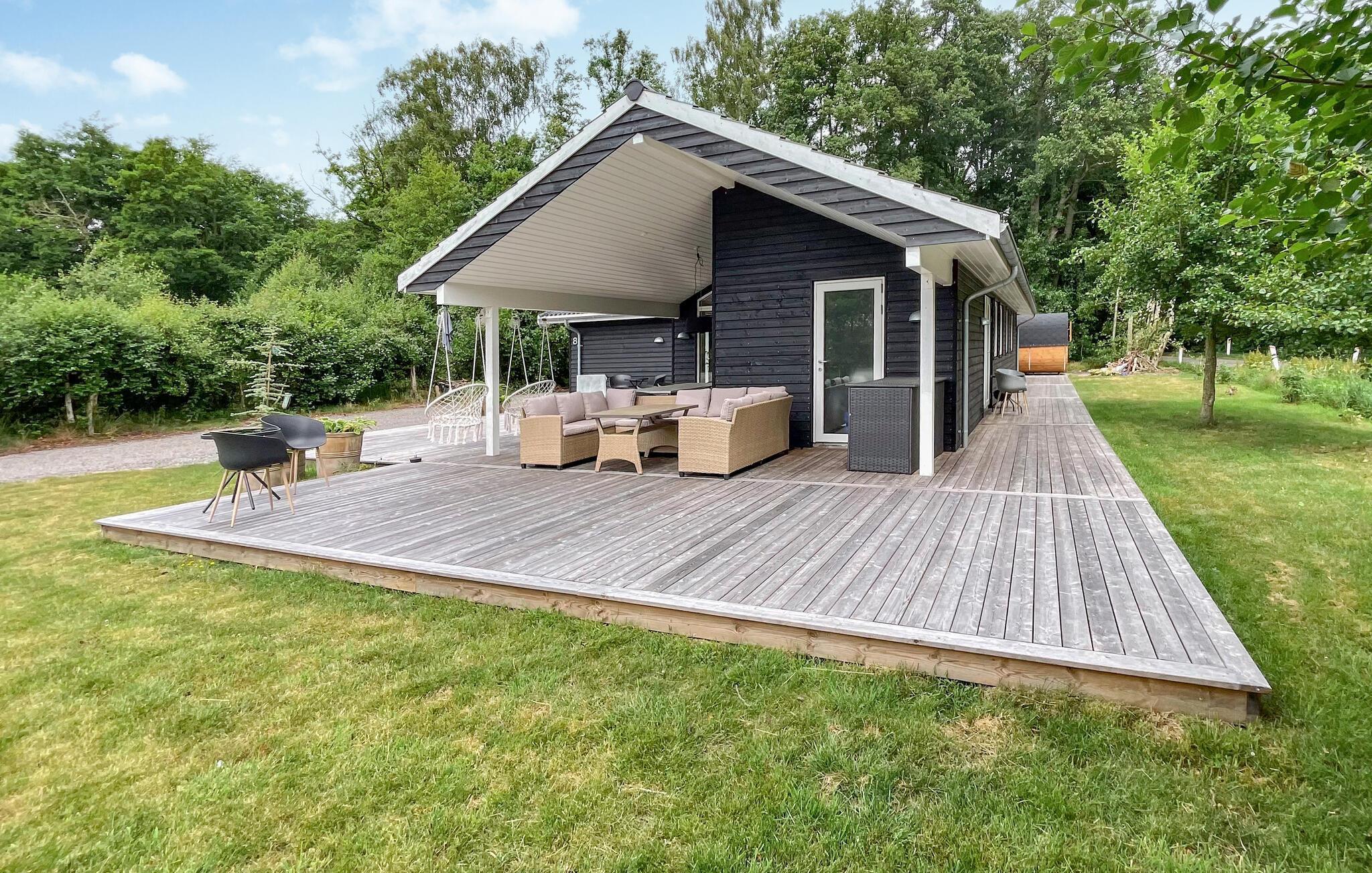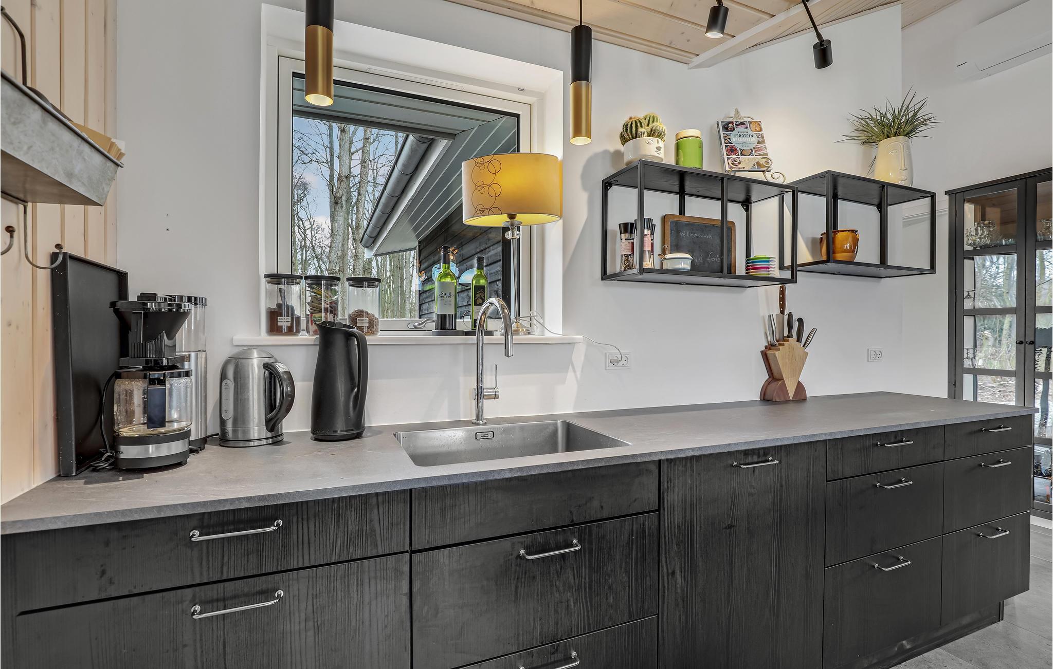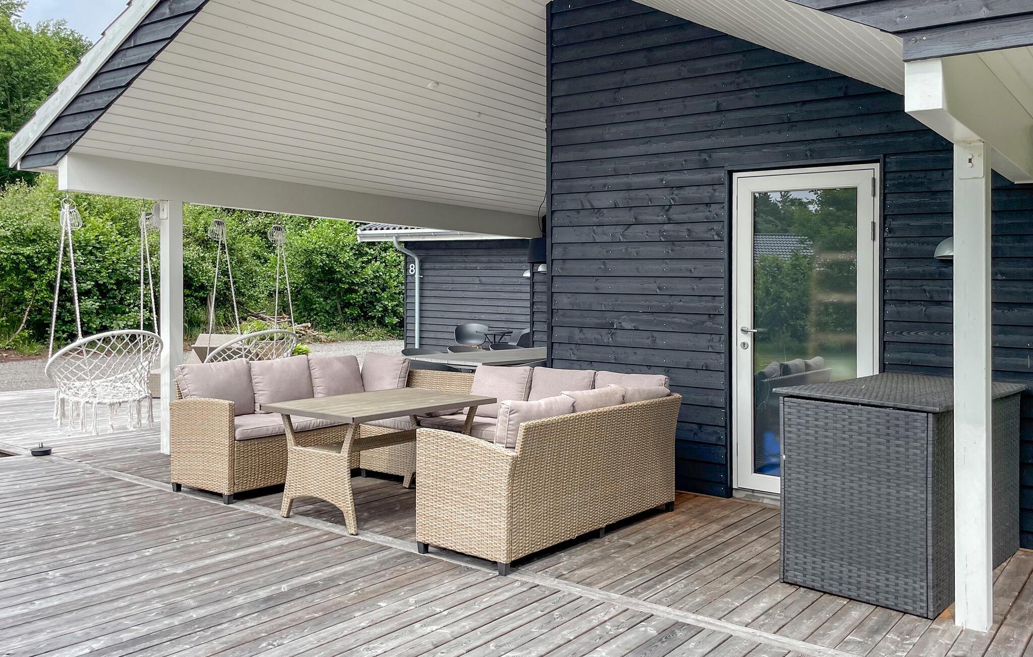 Das Haus empfängt Sie in idealer Lage, um einen schönen Badeurlaub mit viel Zeit am nahegelegenen Strand und Erkundungen der Insel zu verbringen, und auch, wenn Sie Golf lieben, haben Sie hier gute Möglichkeiten. Seine Räume erhalten ihren behaglichen Charme durch viele Holzelemente, eine komfortable Ausstattung und eine wohnlich-moderne Einrichtung, die das Entspannen leicht macht. Der helle Wohnbereich wird schnell zum Zentrum der gemeinsamen Aktivitäten, spielen, kochen und entspannen Sie hier zusammen, großflächige Fenster bieten einen herrlichen Blick auf den Wald.