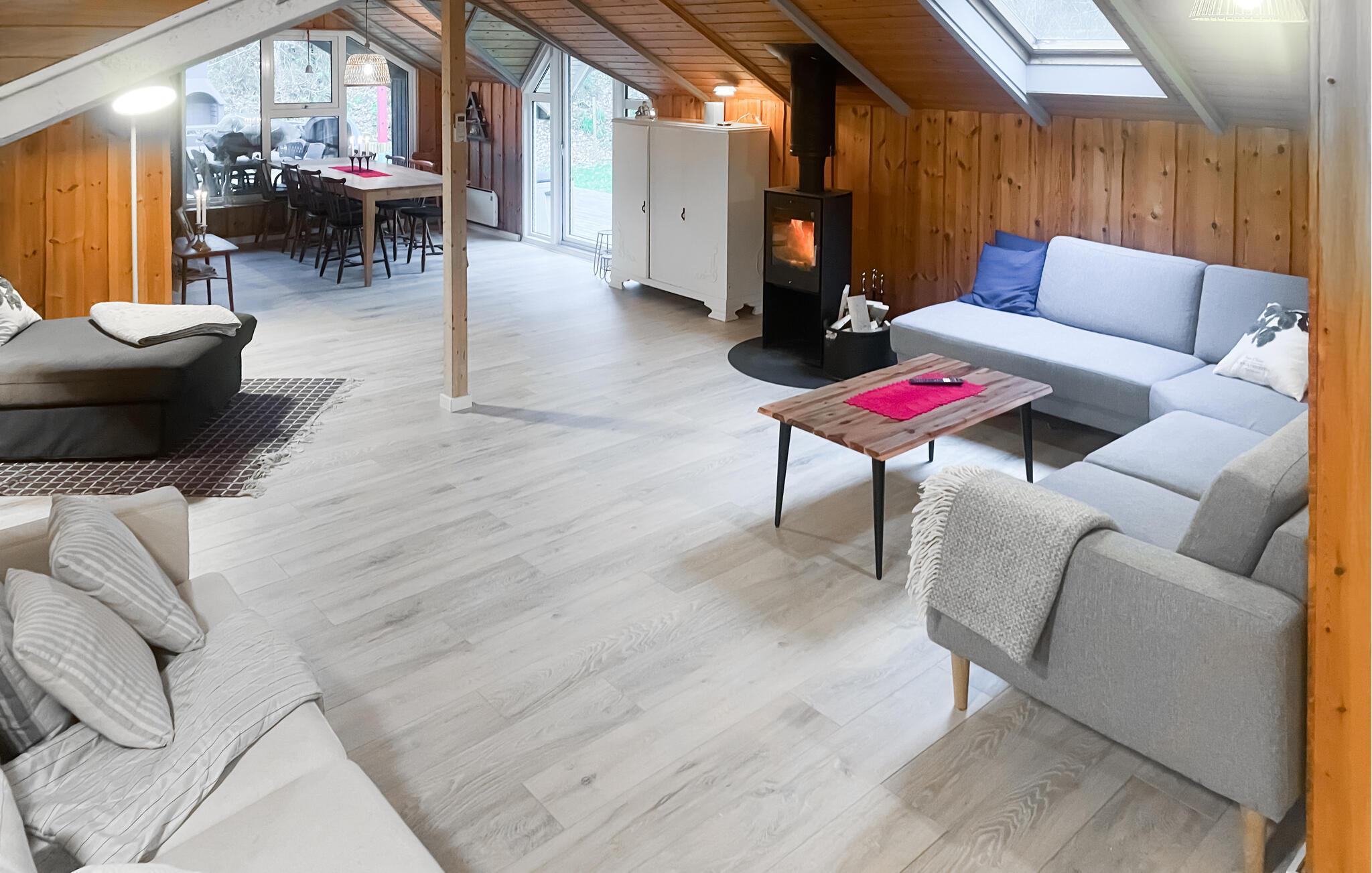 Willkommen in diesem familienfreundlichen Ferienhaus, das Ihnen den perfekten Rahmen für erholsame Tage mit Ihren Liebsten bietet. Am Ende einer ruhigen Straße mit nur fünf Häusern gelegen, strahlt das Haus eine gemütliche Atmosphäre aus. Das Interieur besticht durch seine warme Gestaltung und einladende Räume, die für gesellige Stunden ideal sind. Machen Sie es sich vor dem knisternden Holzofen bequem oder entspannen Sie in der Sauna nach einem aktiven Tag.